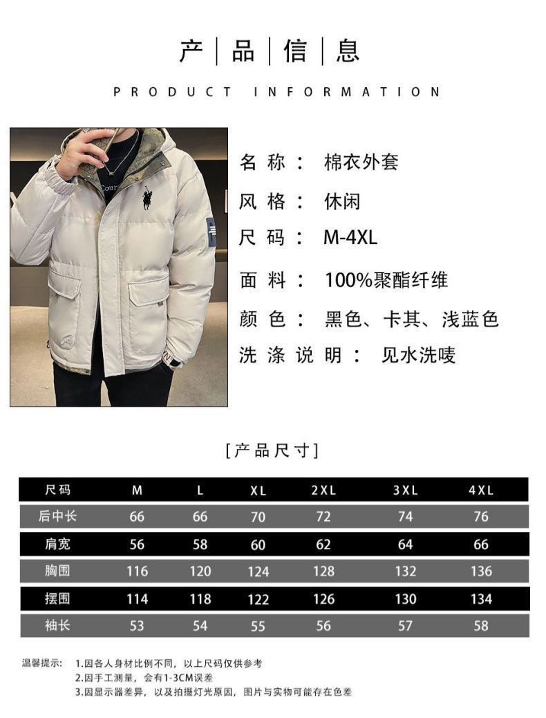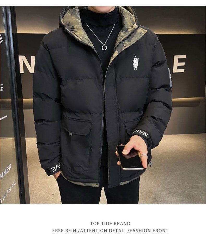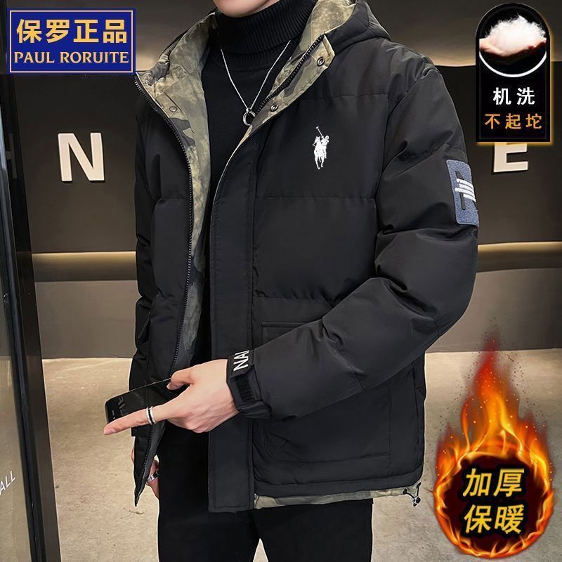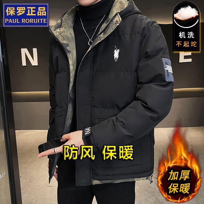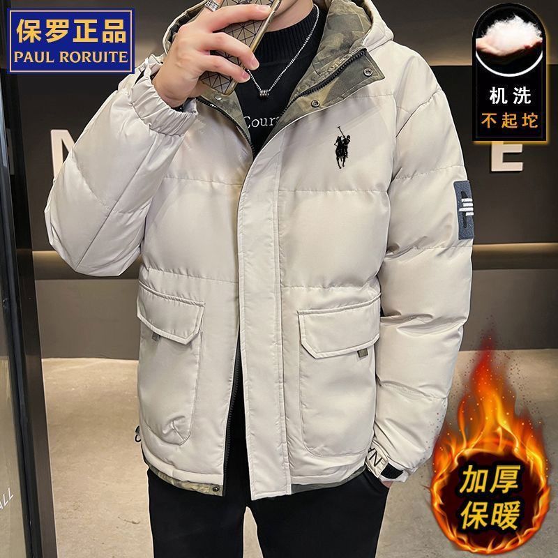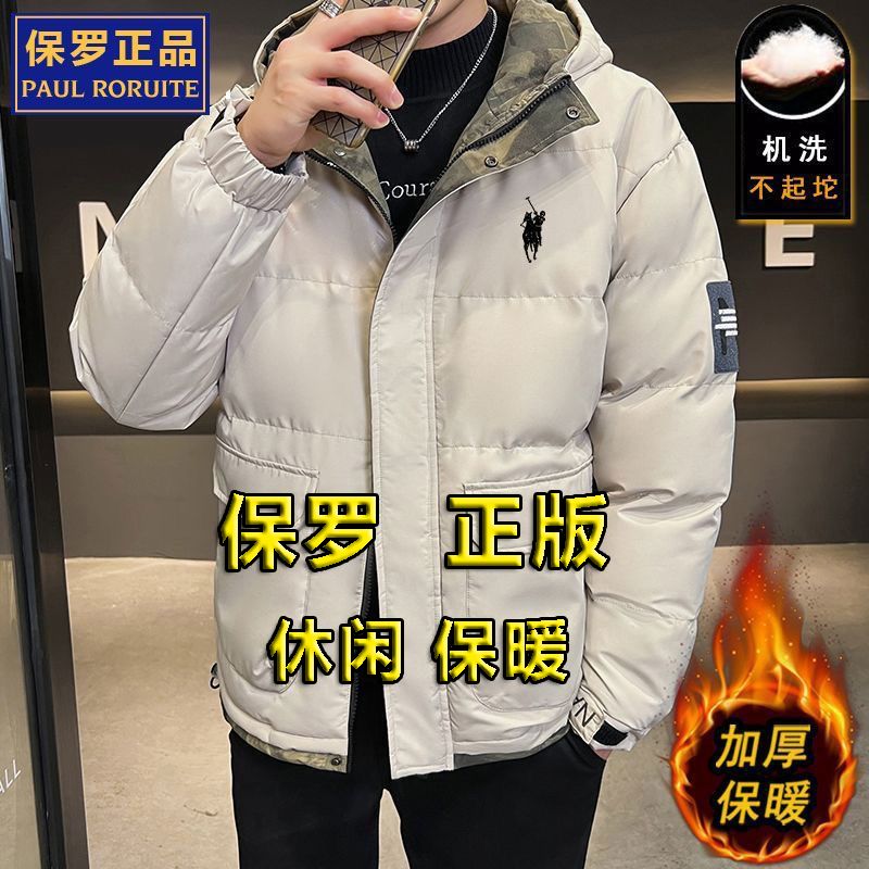 保罗正品羽绒棉服新款男士棉衣冬季休闲加厚保暖棉袄连帽外套潮流