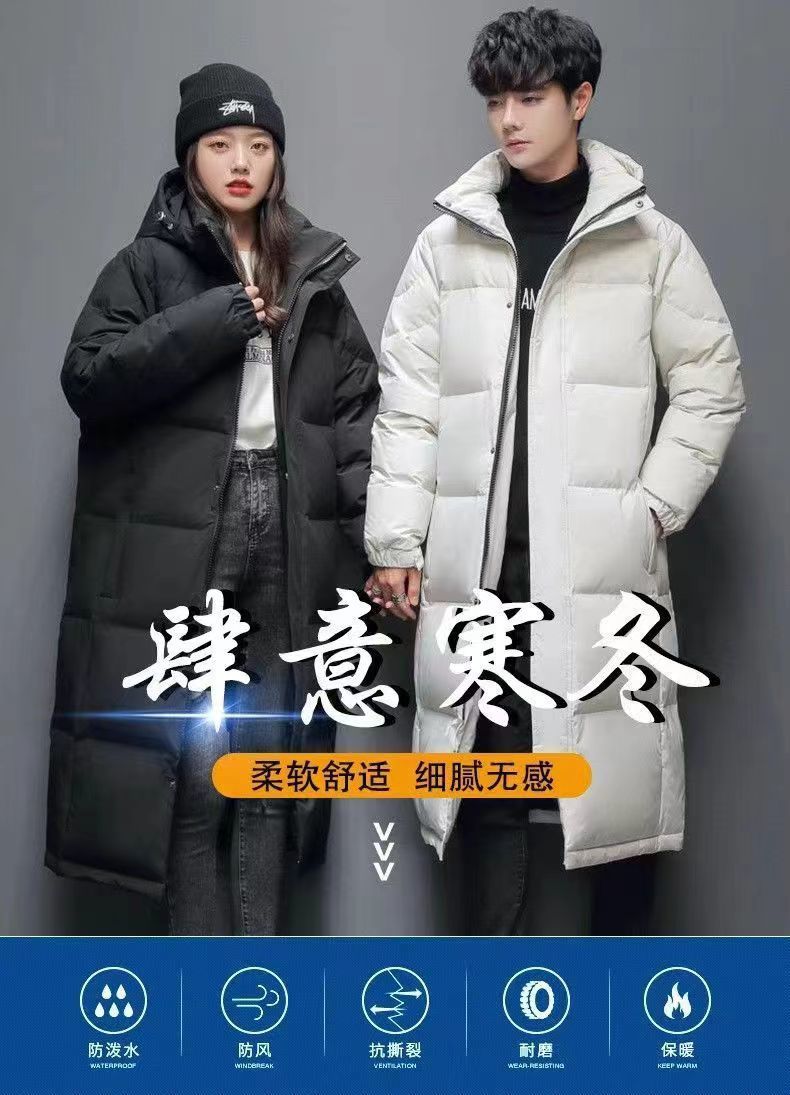 时尚羽绒服男过膝长款情侣装2024冬季爆款白鸭绒中戏潮流加厚外套