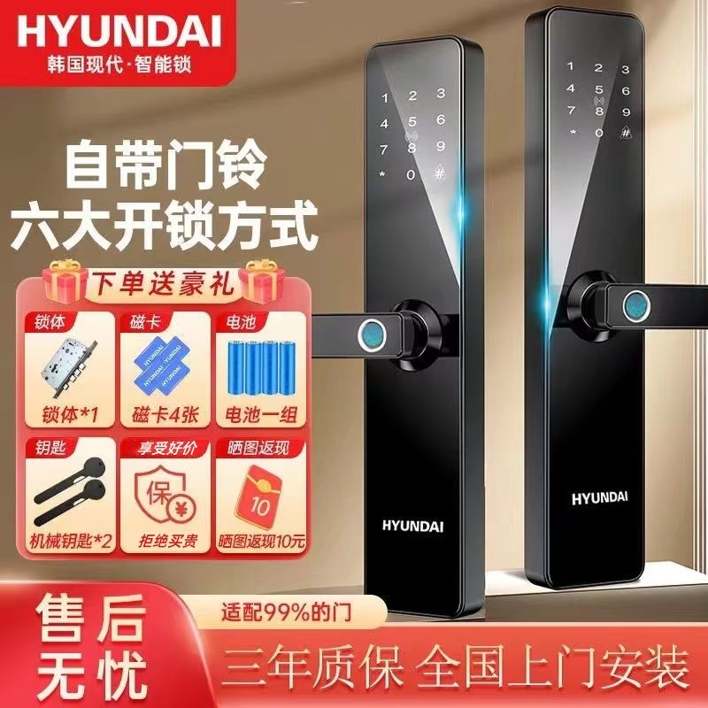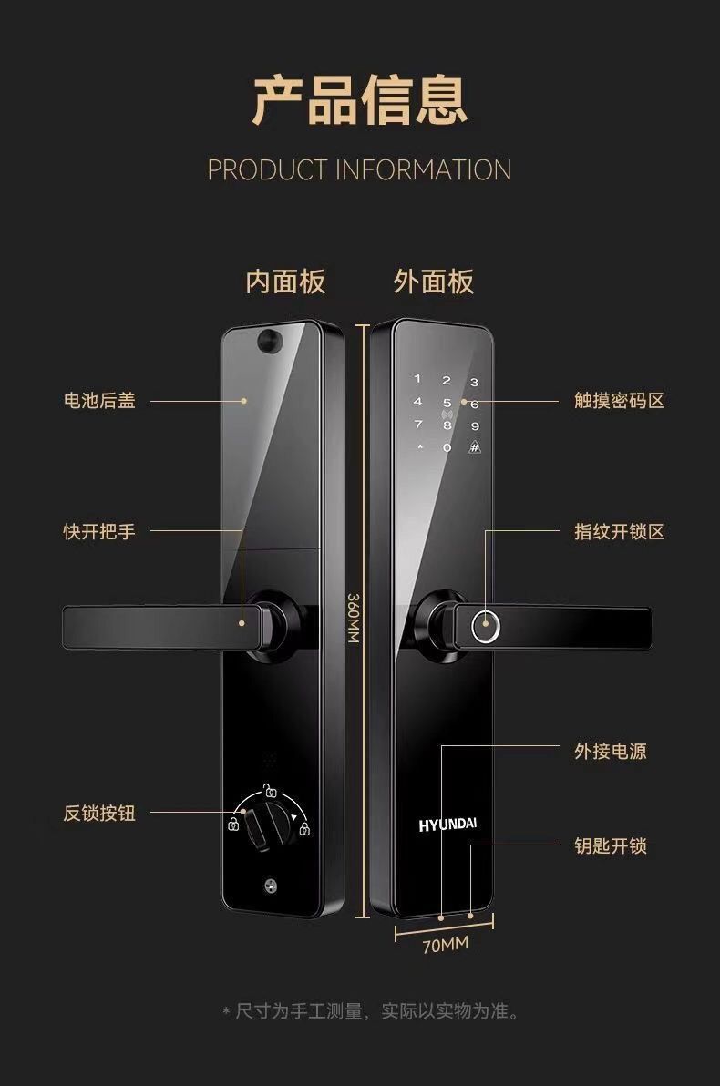 韩国现代智能门锁多功能指纹锁可充电防盗门锁密码锁智能电子锁