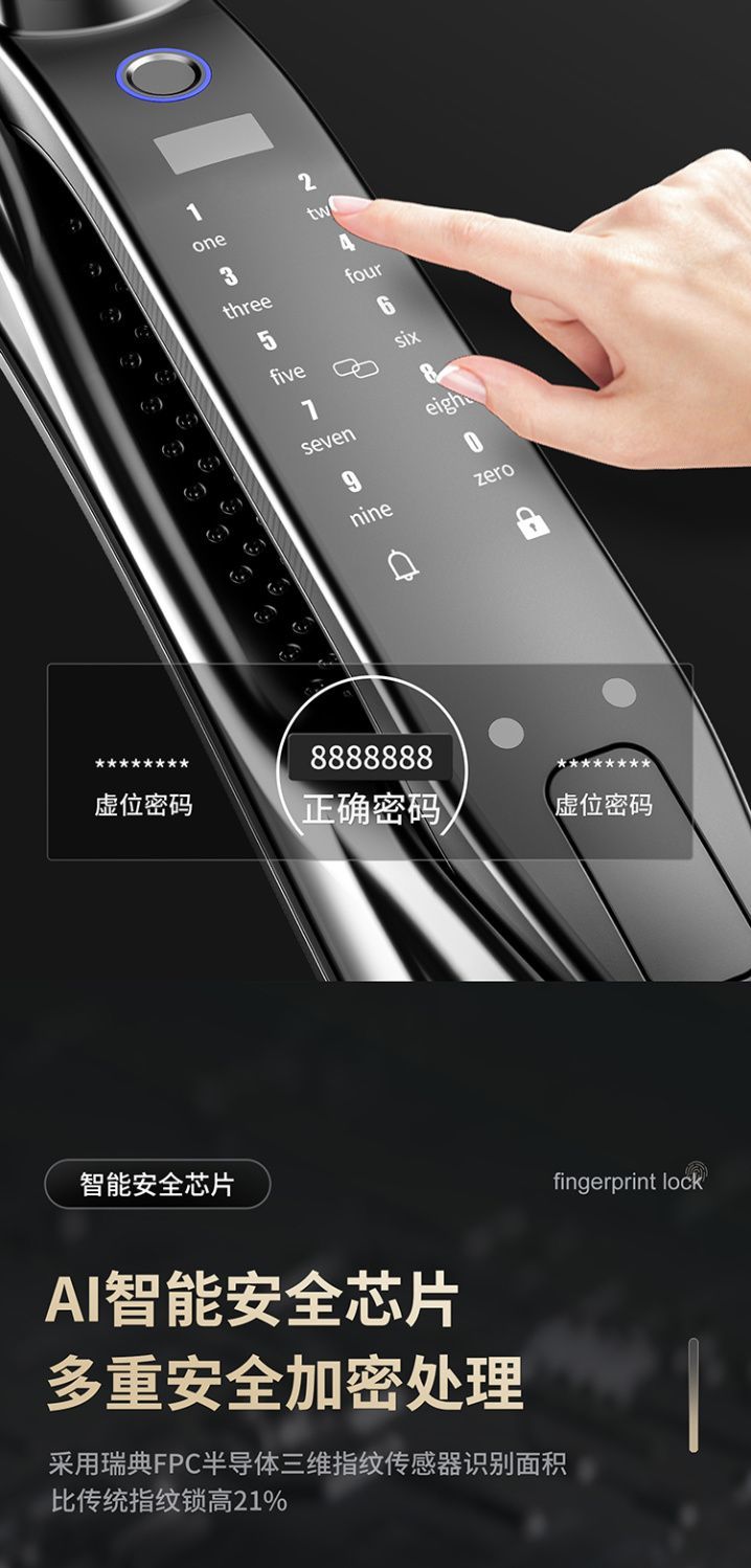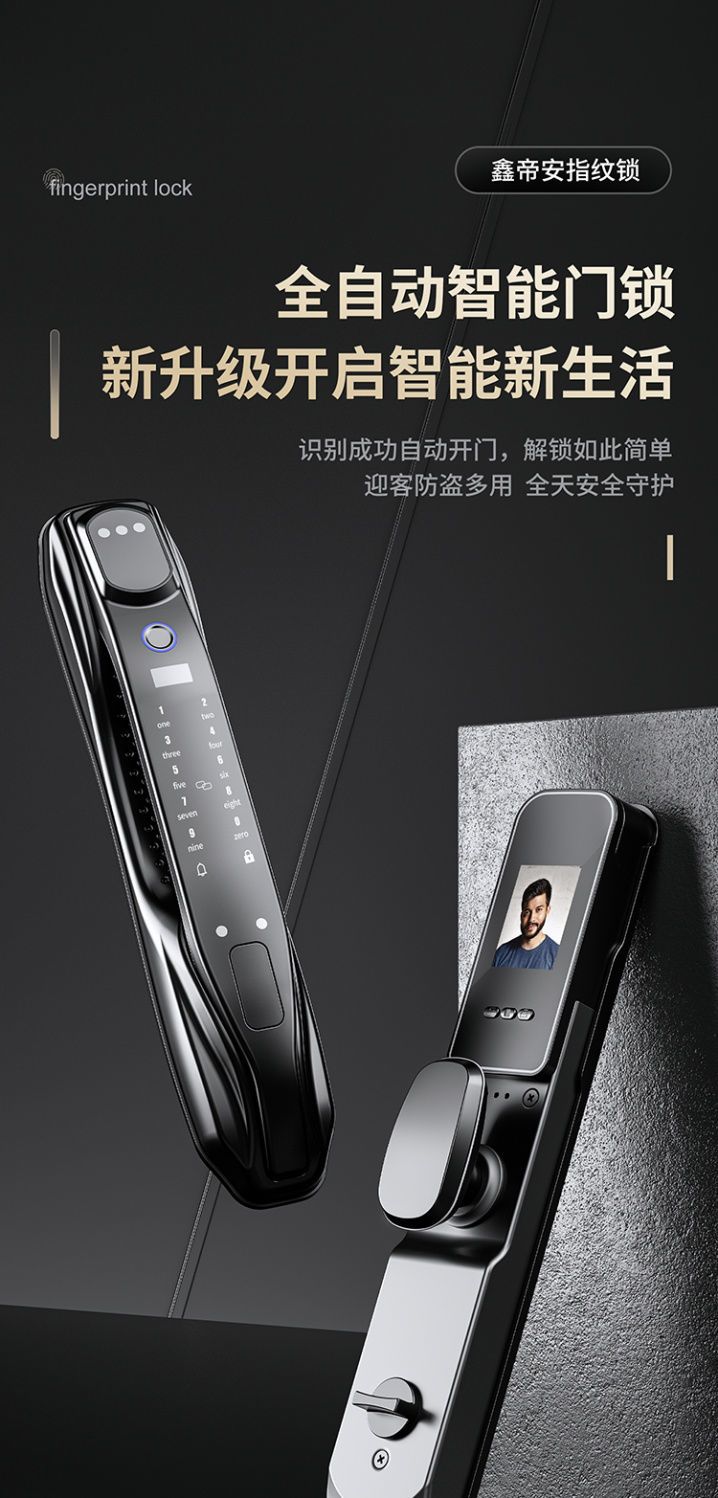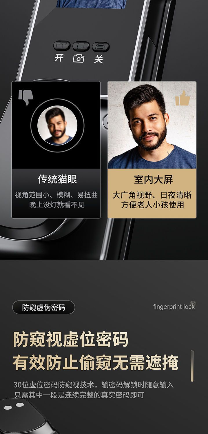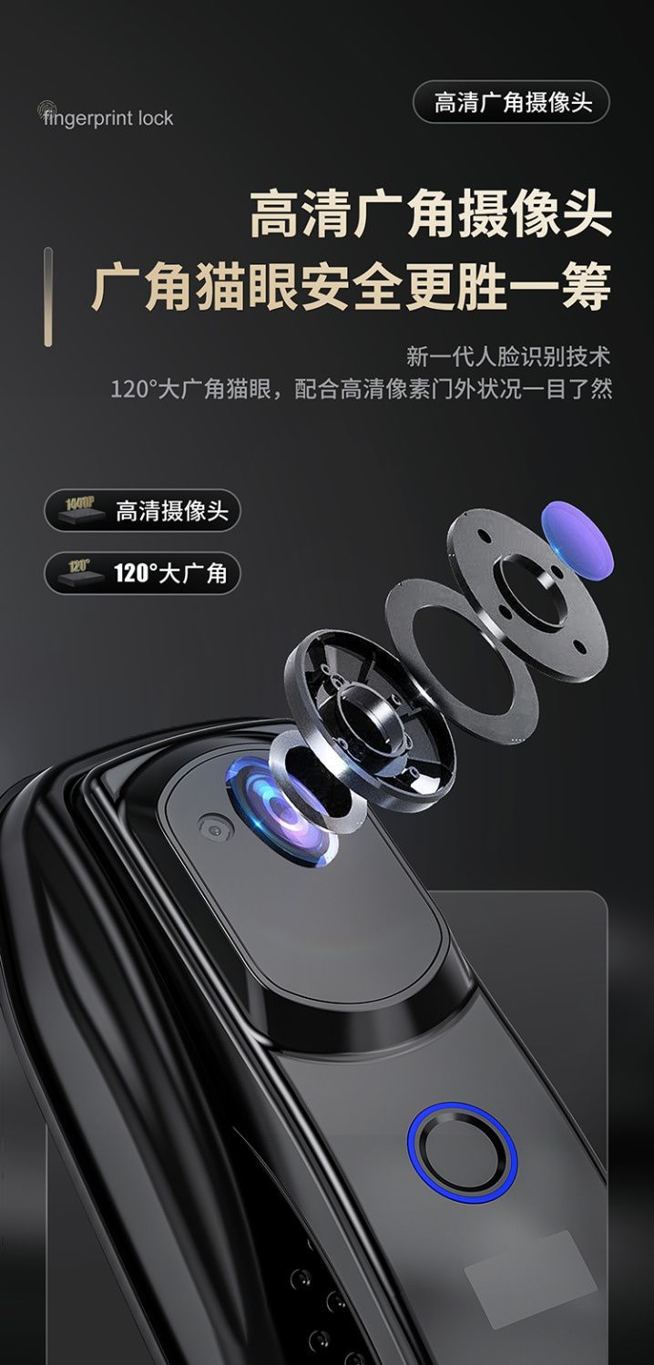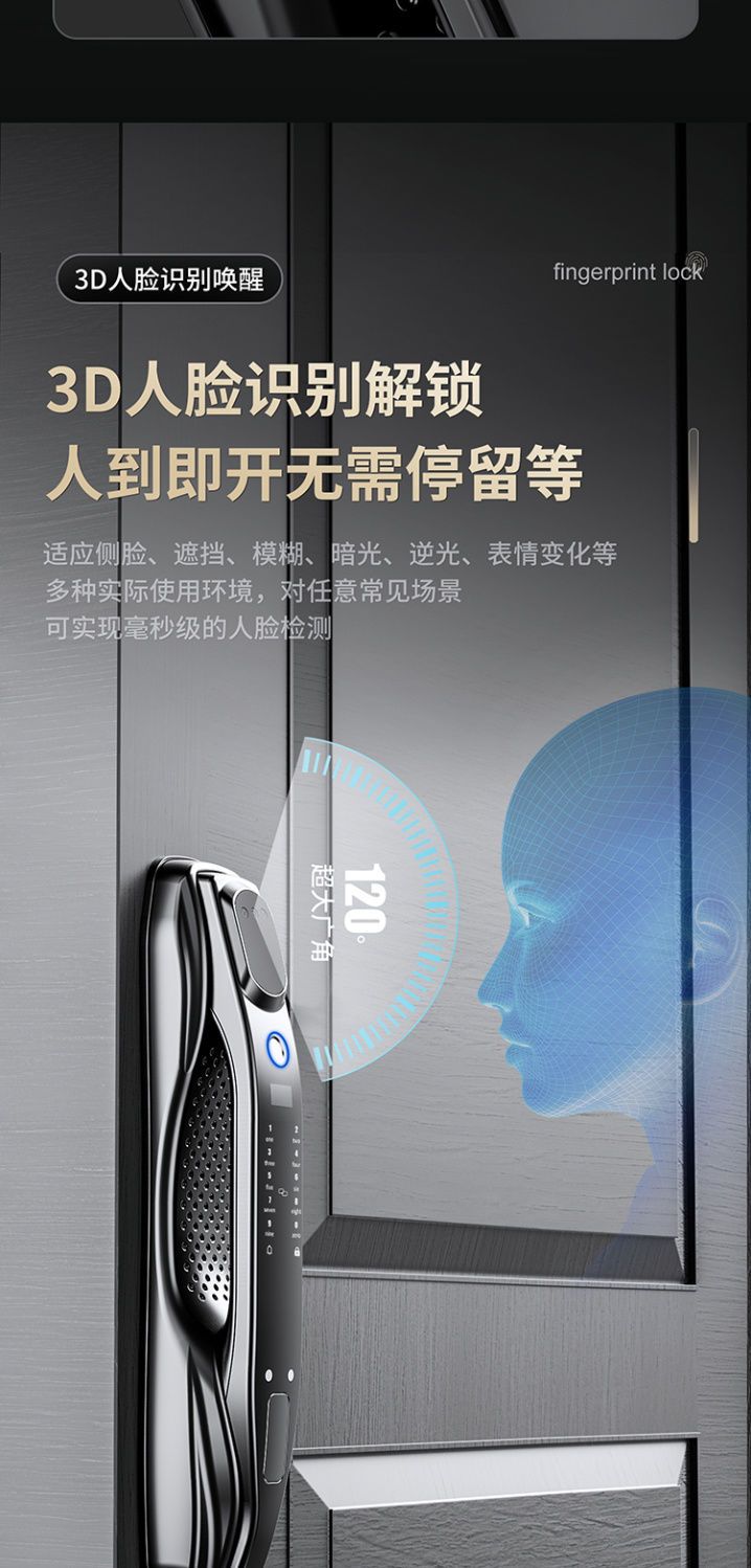 德国指纹锁家用防盗智能门锁密码磁卡锁锁电子锁3D人脸识别猫眼锁