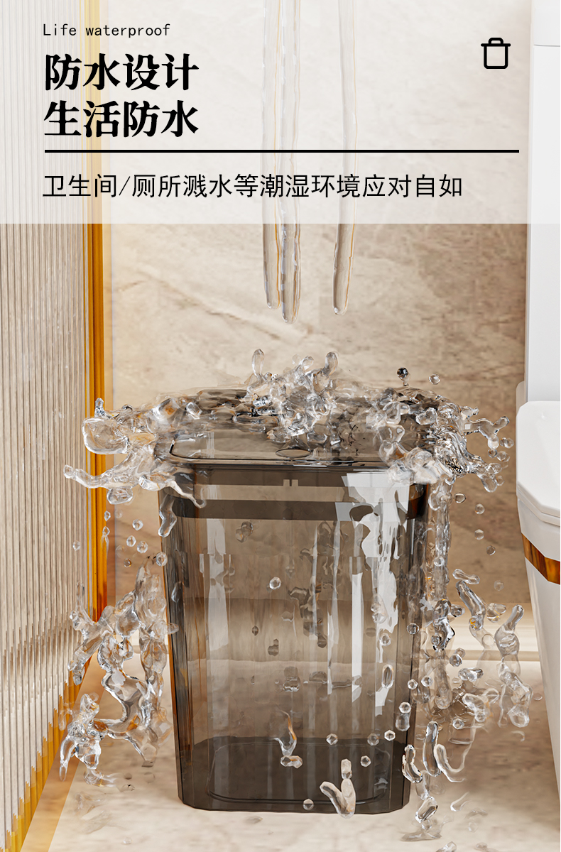 大容量客厅透明轻奢夹缝厨房赢朔 弹盖垃圾桶按压式卫生间厕所家