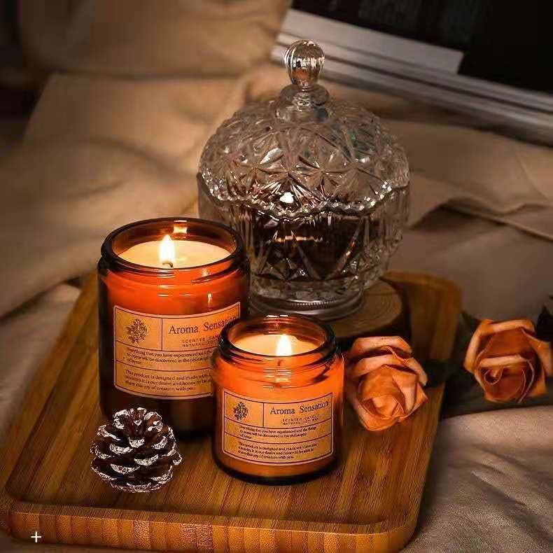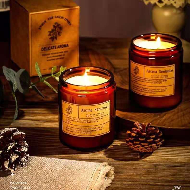 DIY手工自制香薰蜡烛玻璃杯大豆蜡罐蜡烛容器烛杯烛台装饰棕色