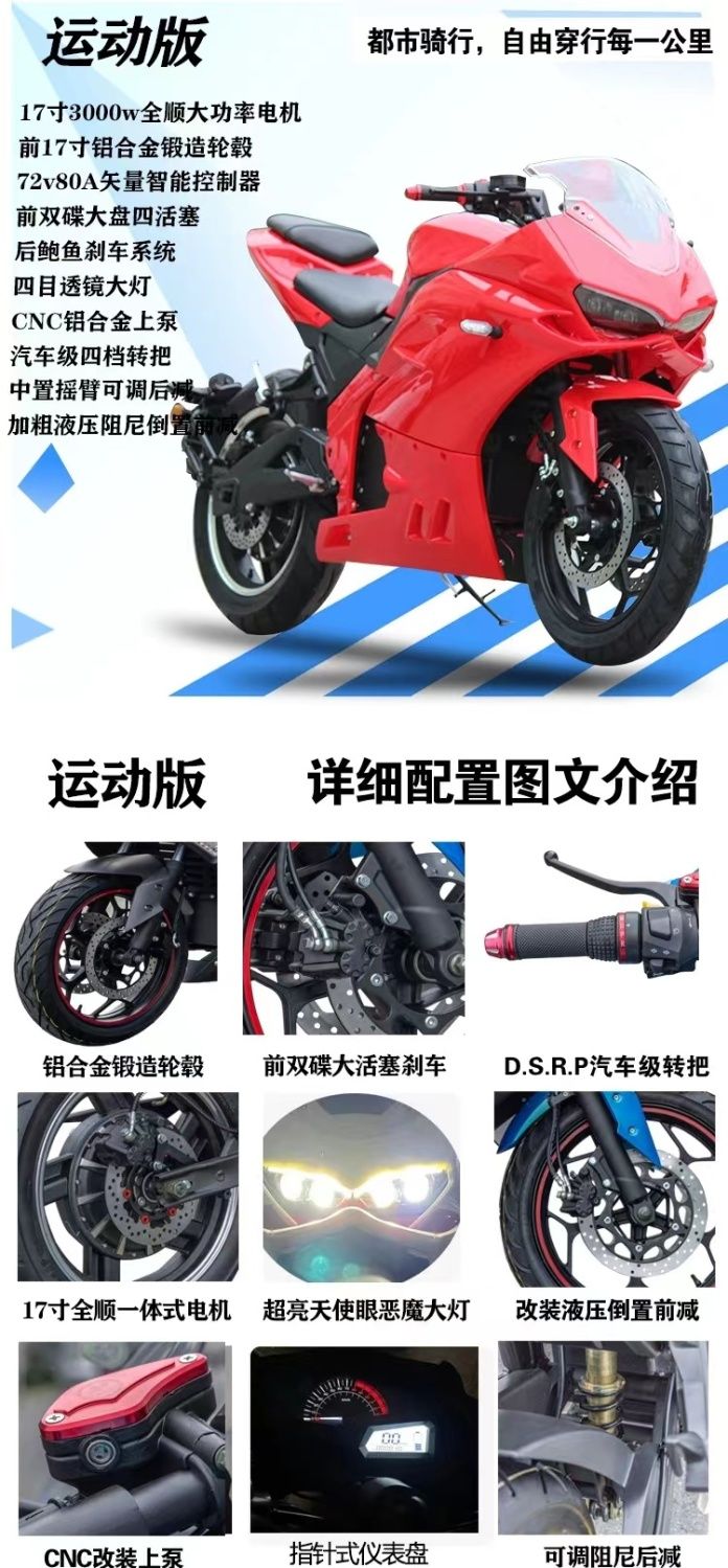 新款蛟龙电动摩托车72v大功率重型机车杜卡迪趴赛大型成人大电摩
