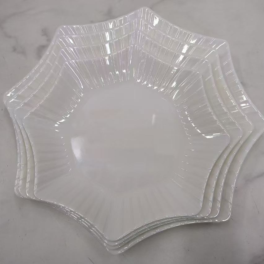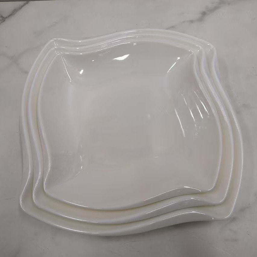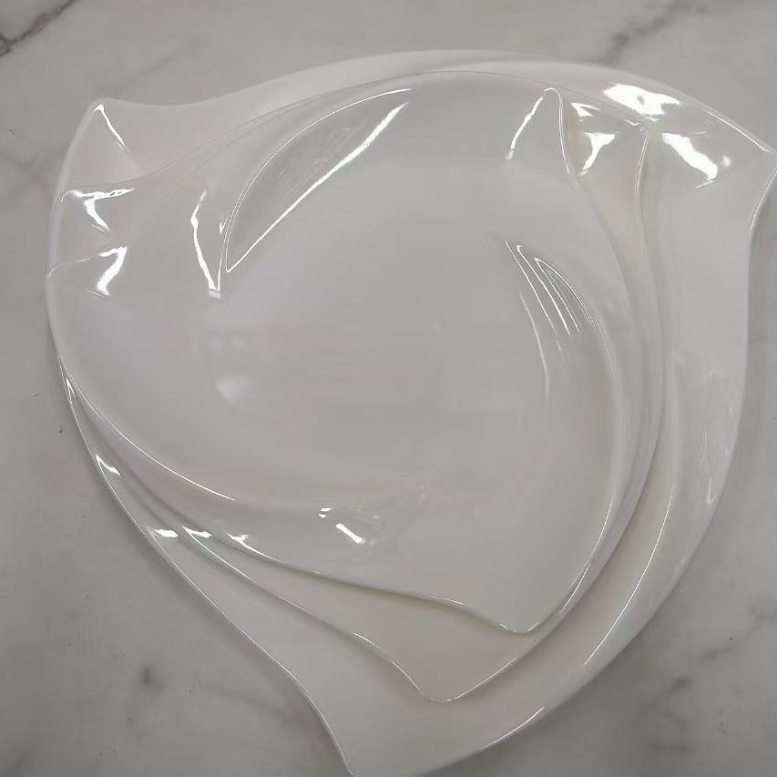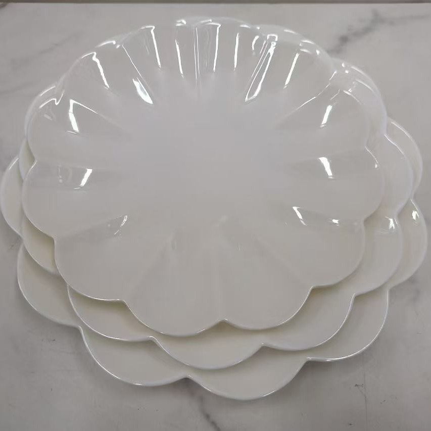 花朵形创意白色密胺圆盘酒店火锅酒席菜盘凉菜小吃盘塑料平盘