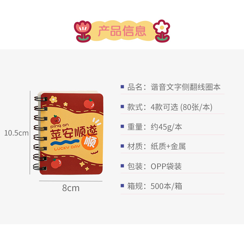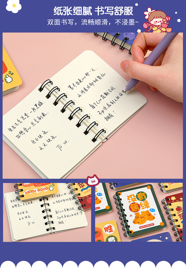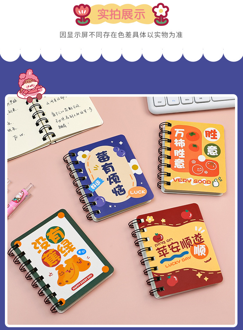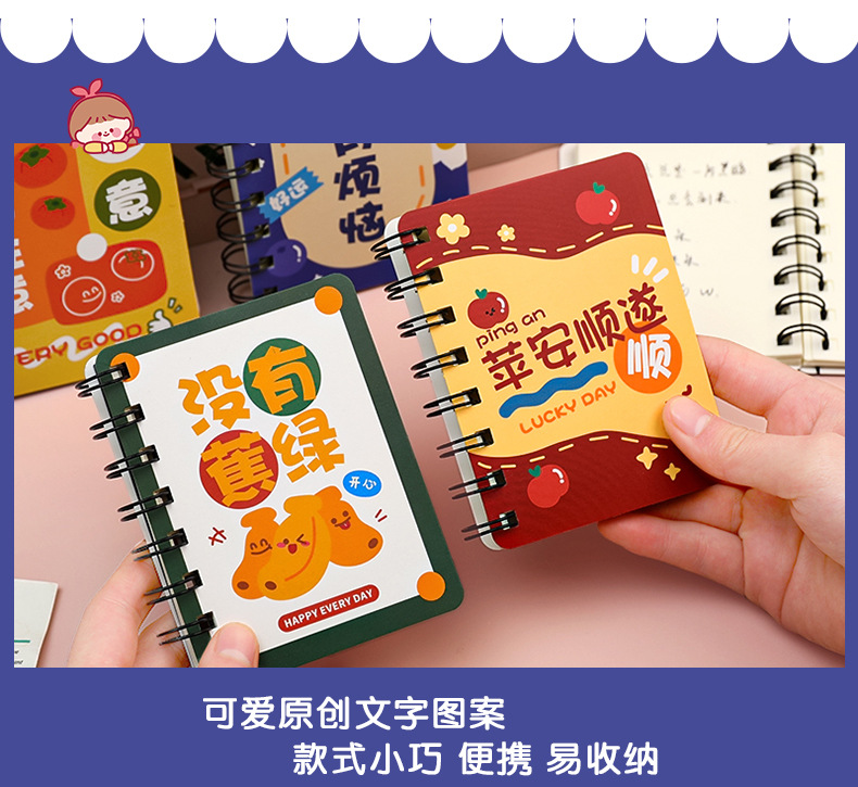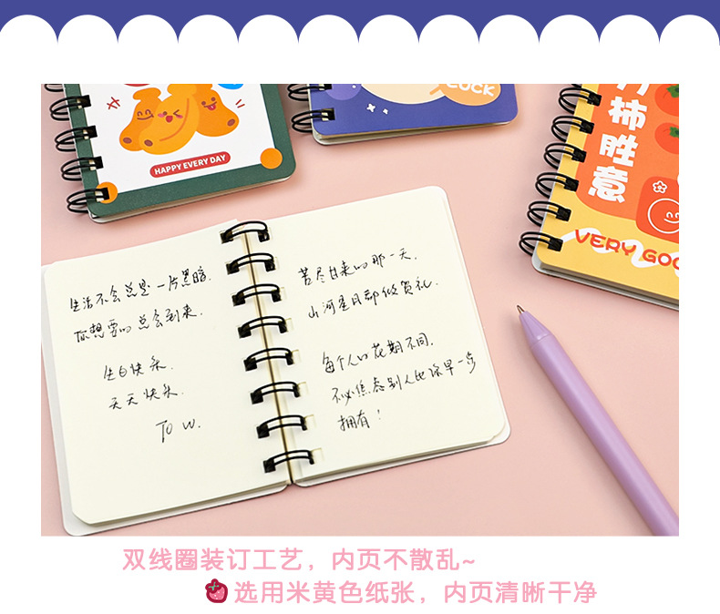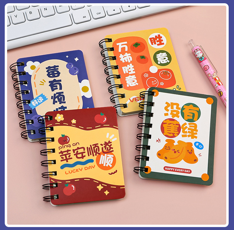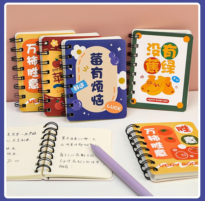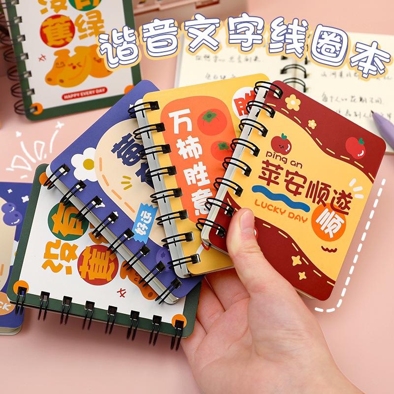 谐音文字可爱卡通线圈手账小本子小学生便携随身记作业记事线圈本