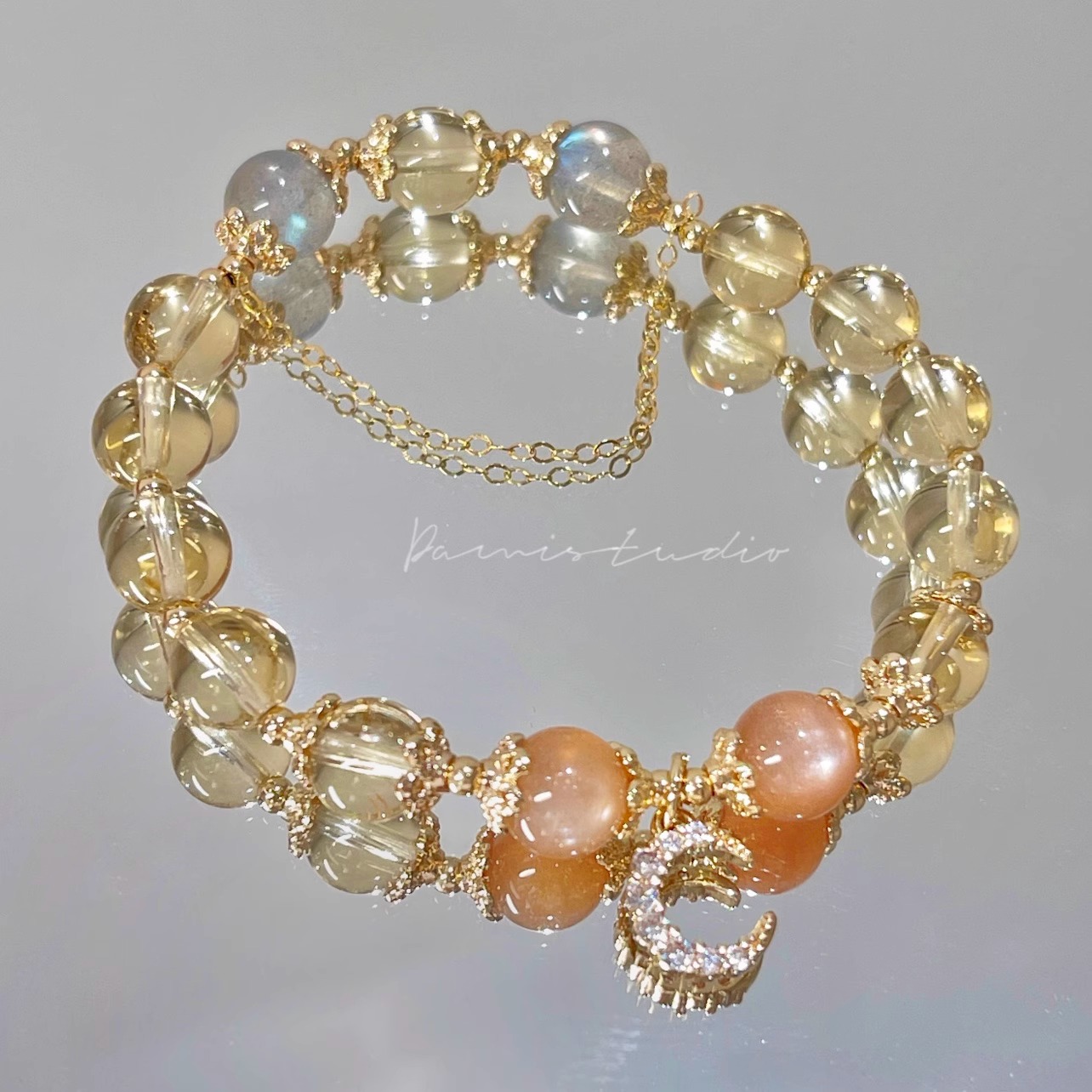 黄水晶手链月光石金太阳石14k包金发财水晶手串女生手饰品