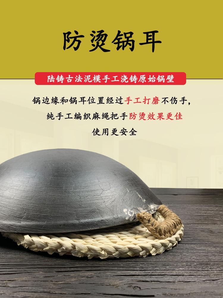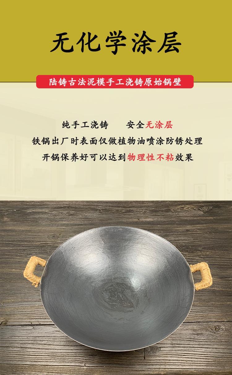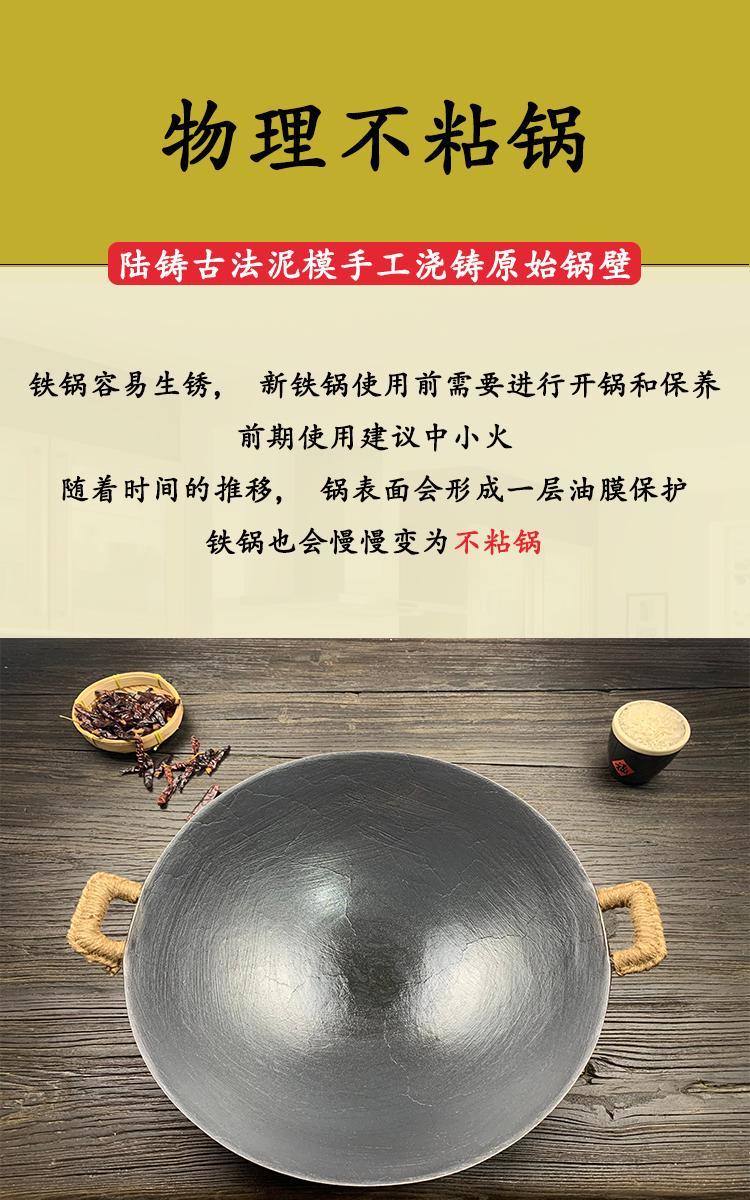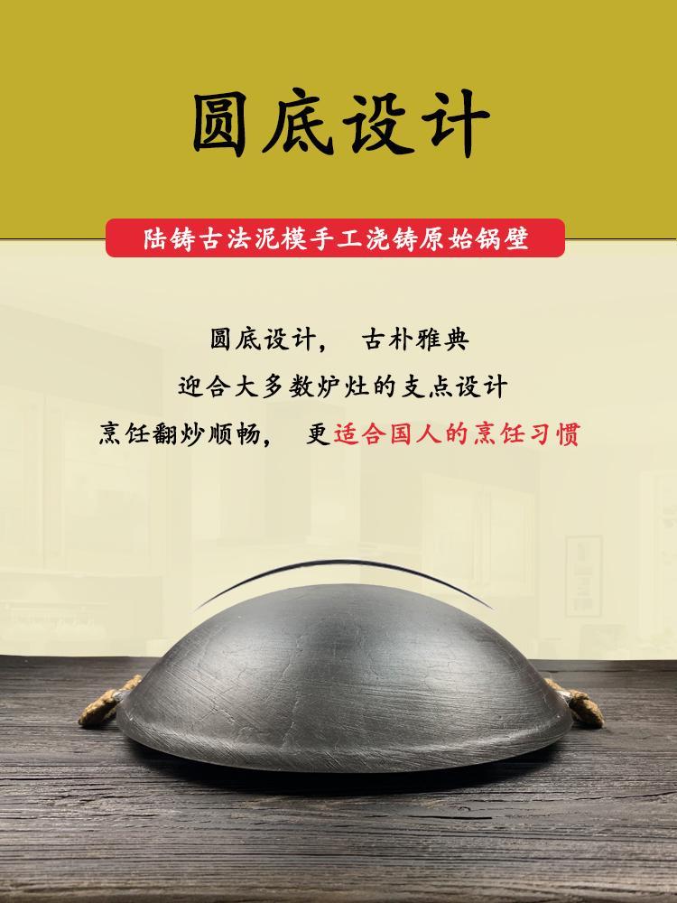 铁锅老式老款双耳生铁锅传统圆底商用加厚铸铁锅无涂层不粘炒菜锅