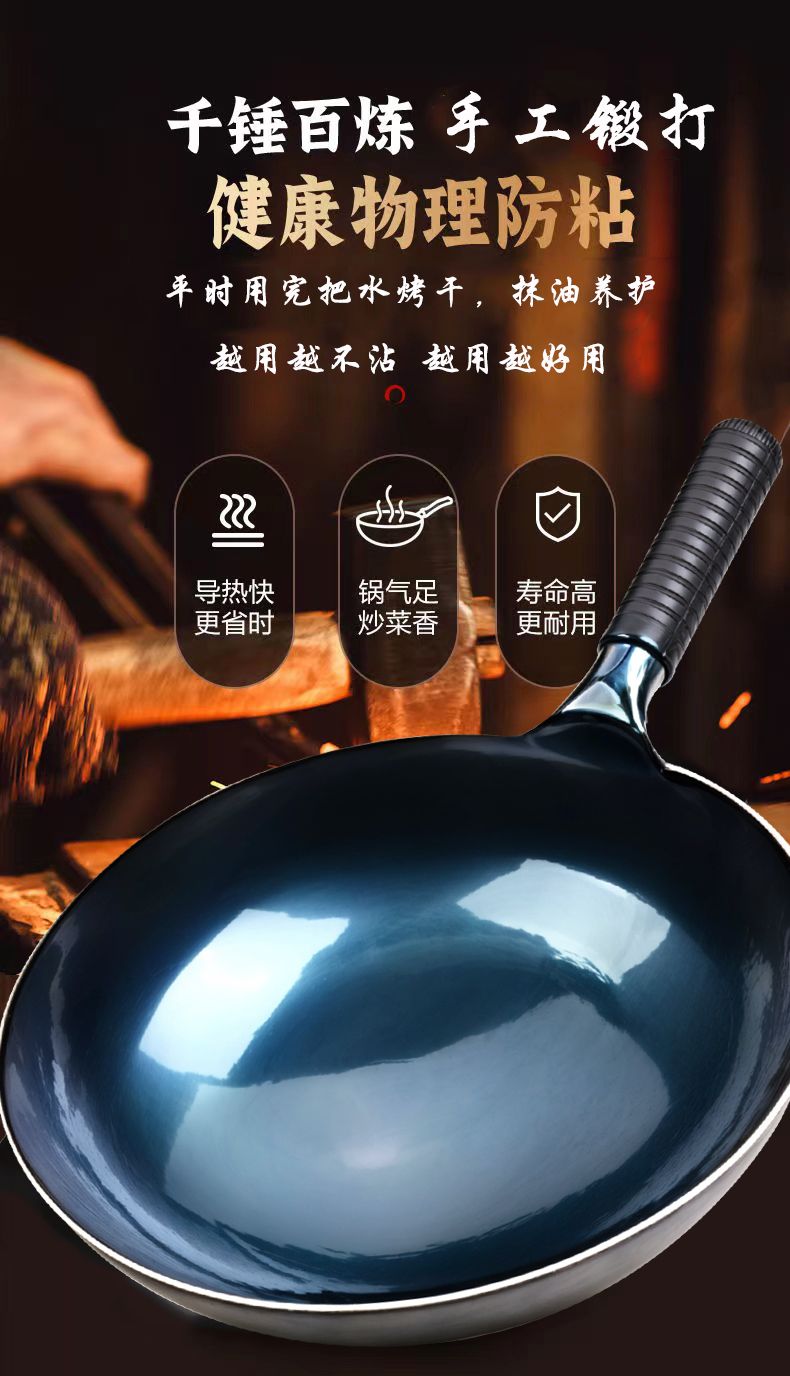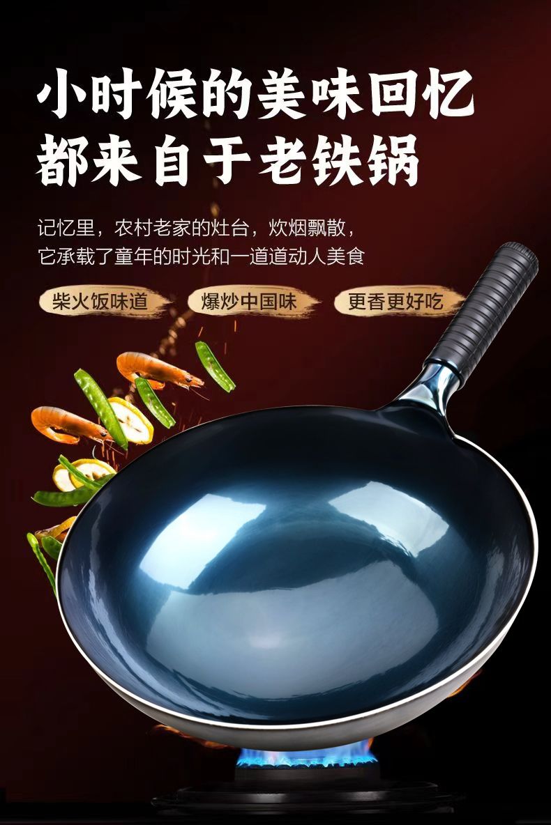 章丘铁锅官方旗舰传统家用手工锻打老式圆底炒锅不粘锅炒菜无涂层
