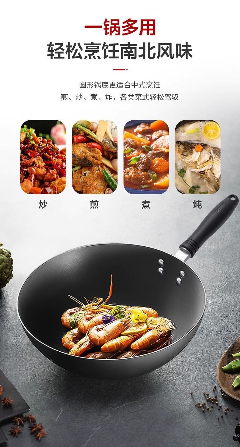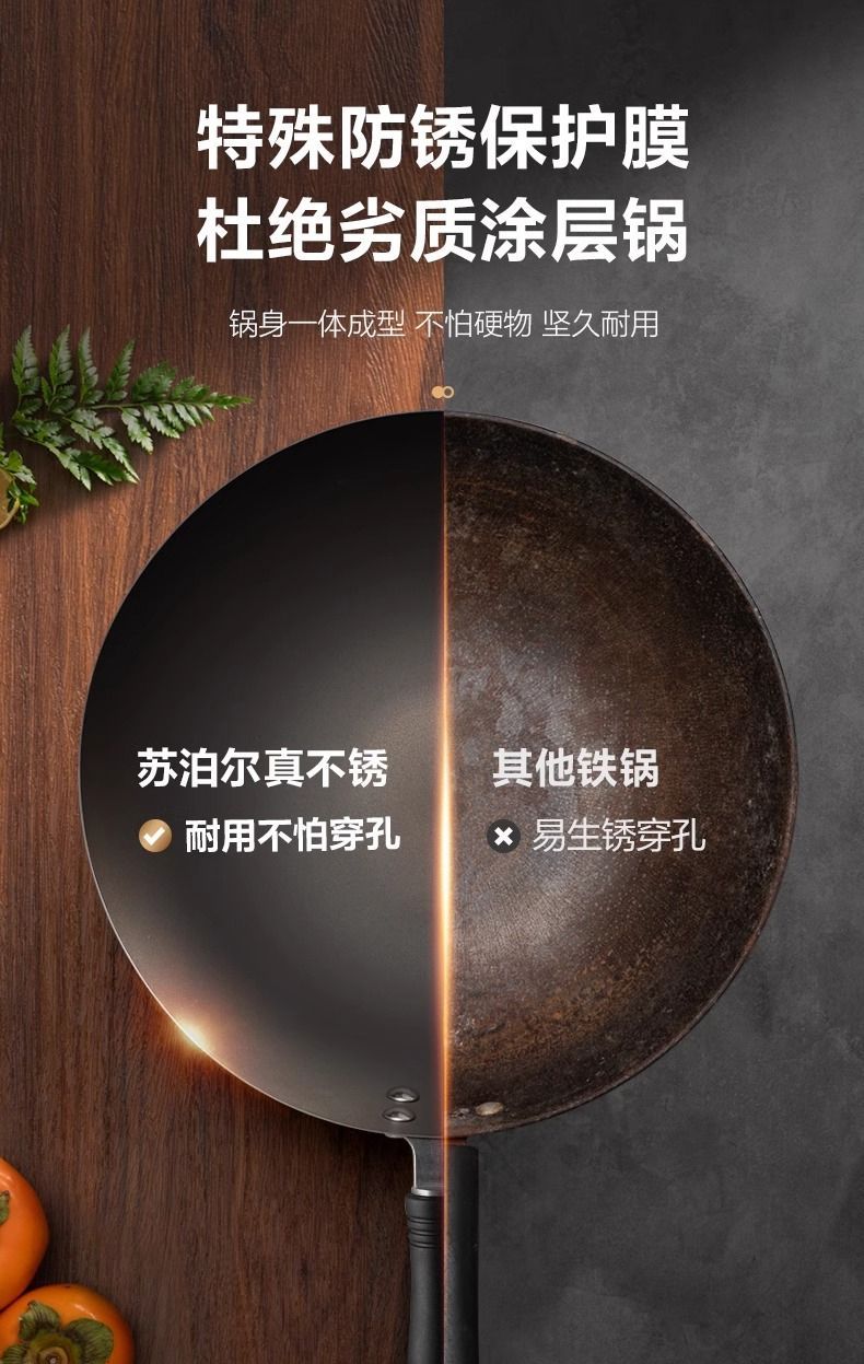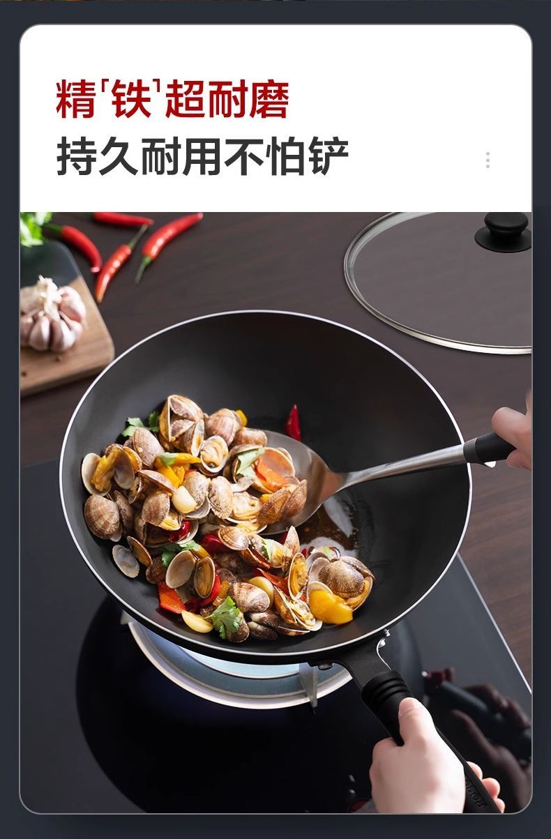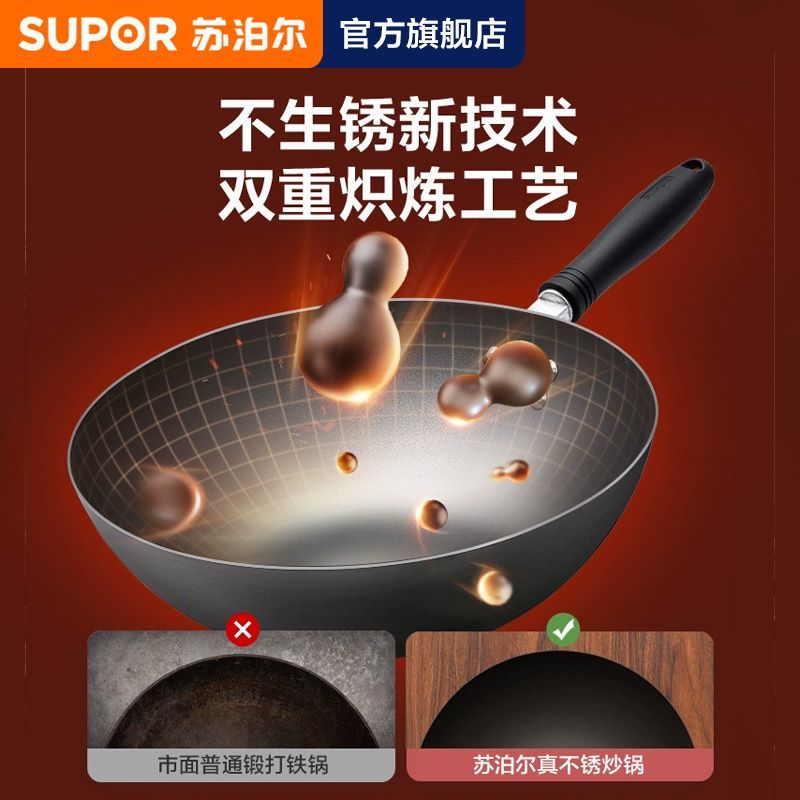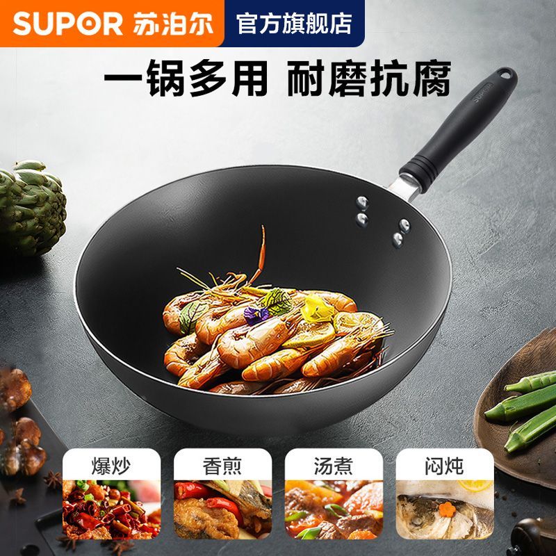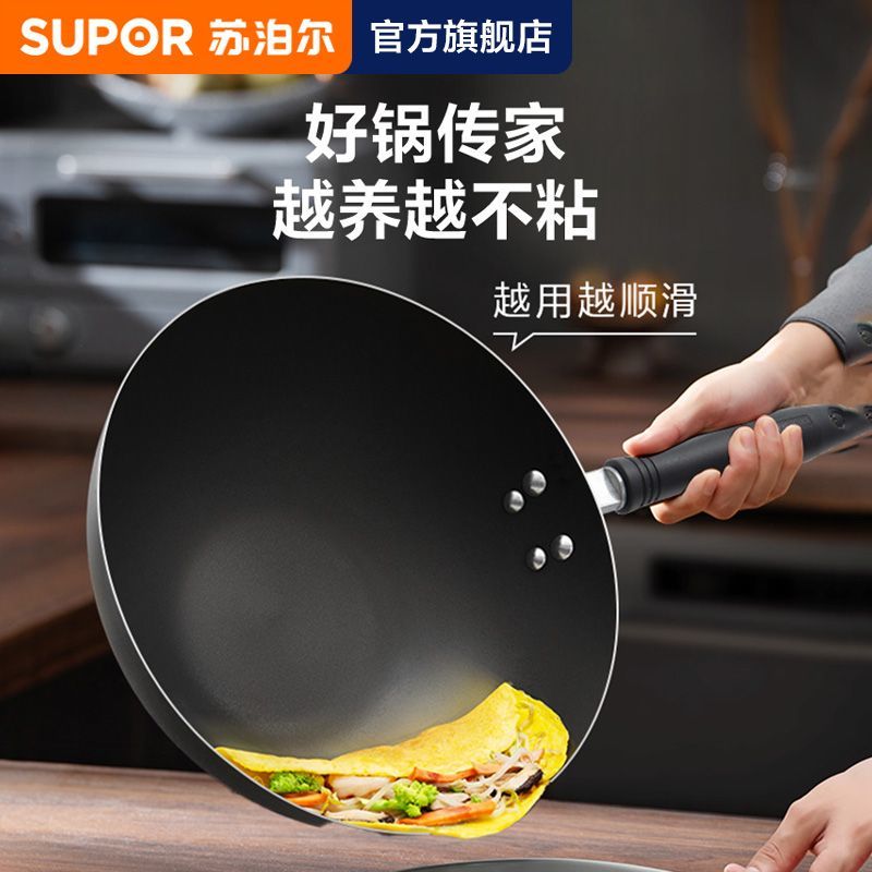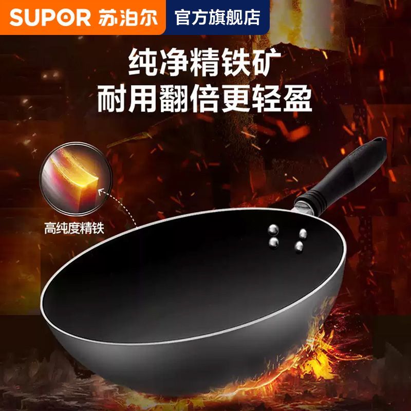 苏泊尔铁锅炒锅家用无涂层炒菜锅老式无涂层圆底炒锅煤气燃气专用