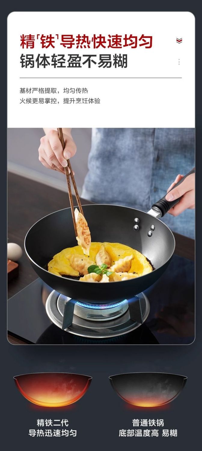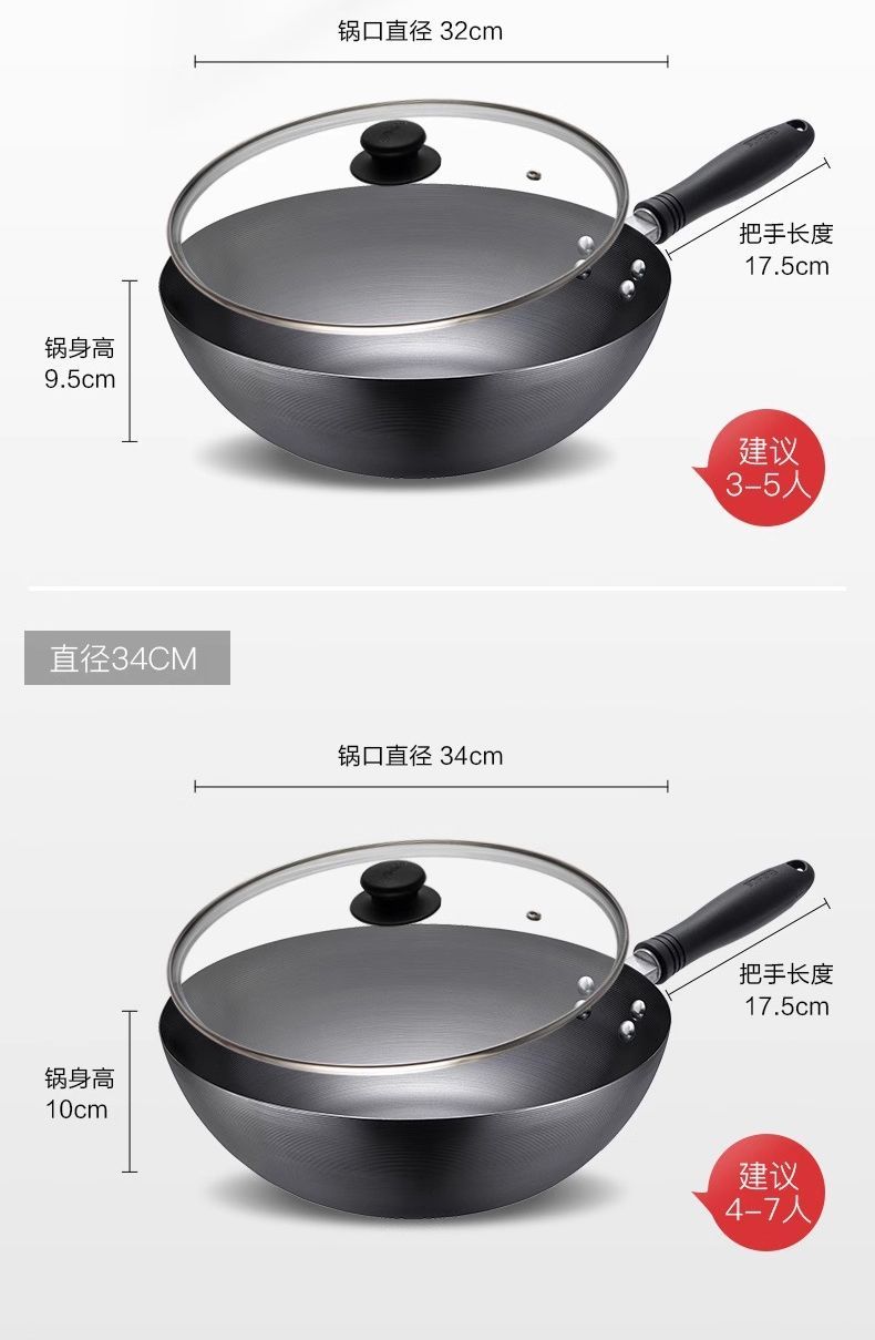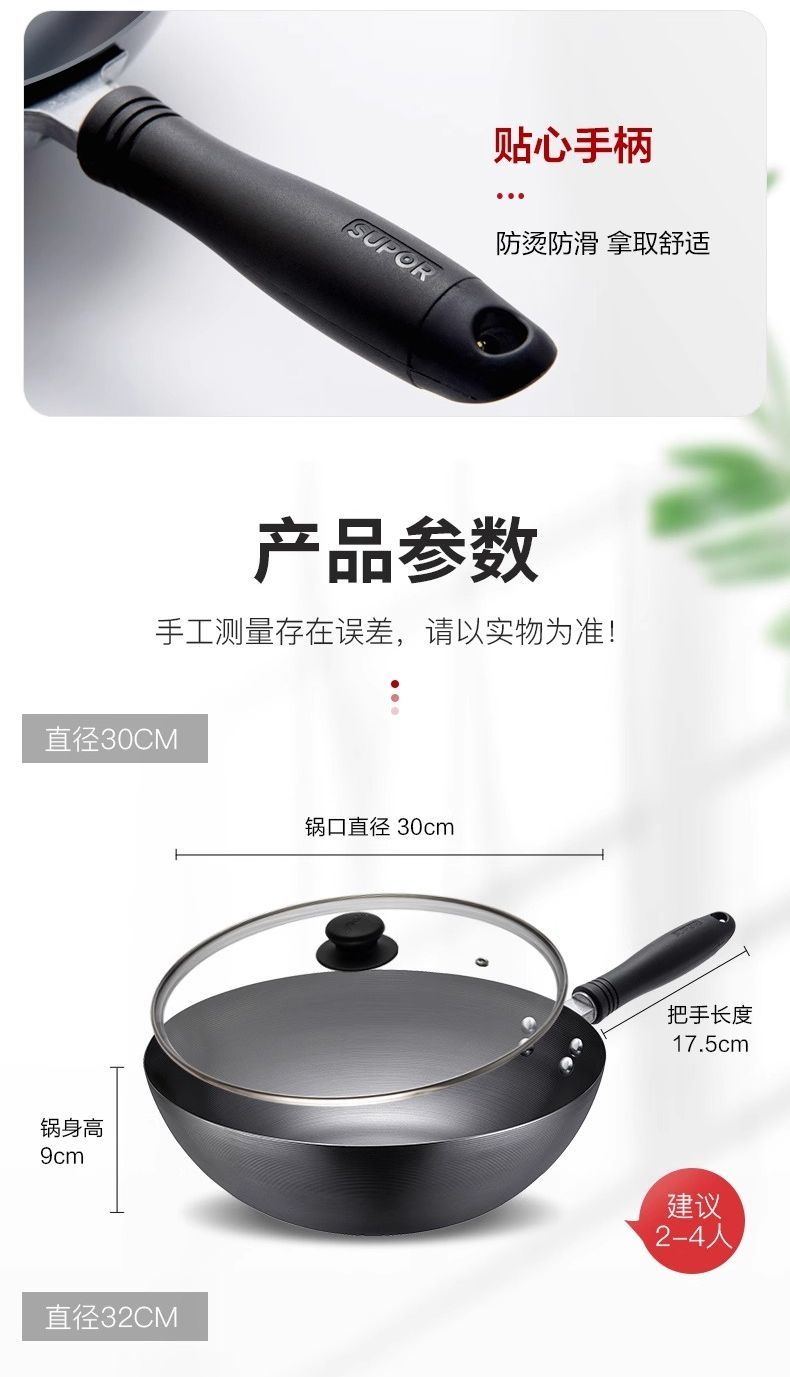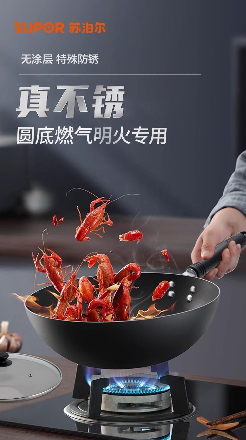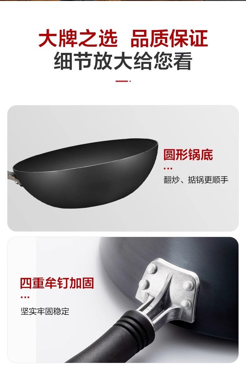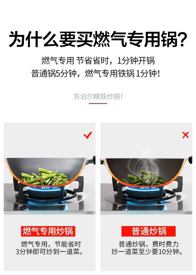 苏泊尔铁锅炒锅家用无涂层炒菜锅老式无涂层圆底炒锅煤气燃气专用