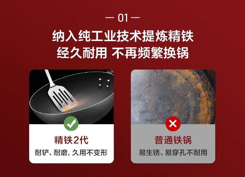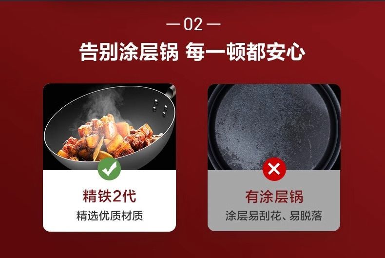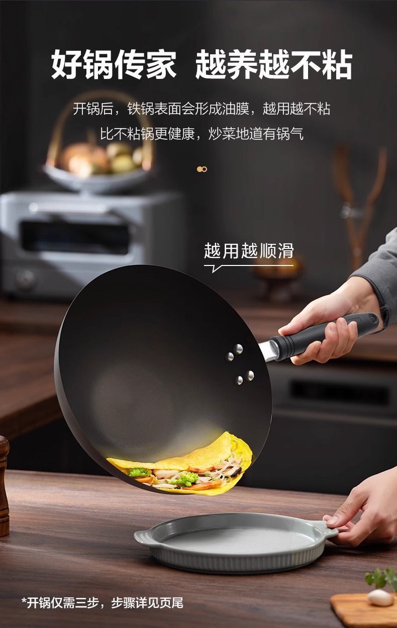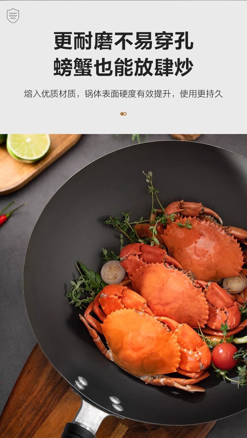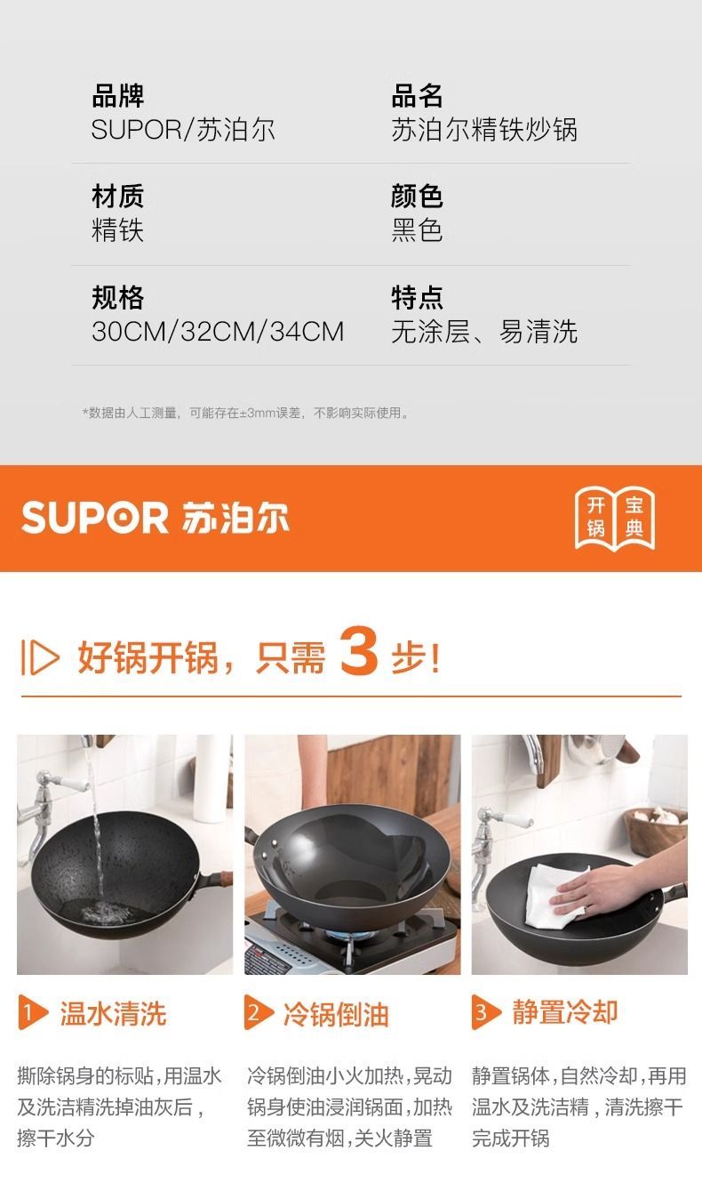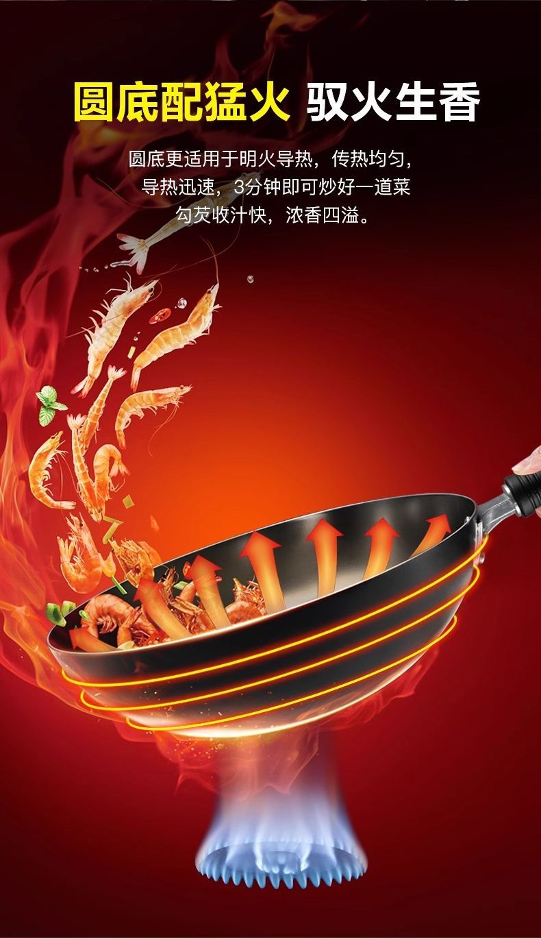 苏泊尔铁锅炒锅家用无涂层炒菜锅老式无涂层圆底炒锅煤气燃气专用