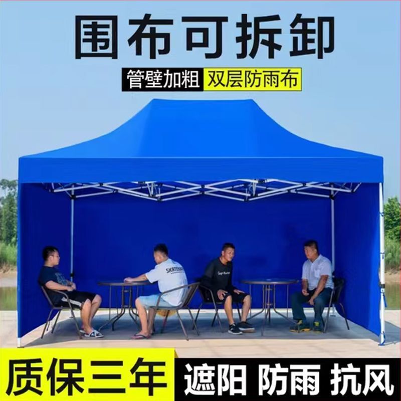 户外摆摊用帐篷四脚伞围布围栏伸缩雨棚四角方形遮阳棚