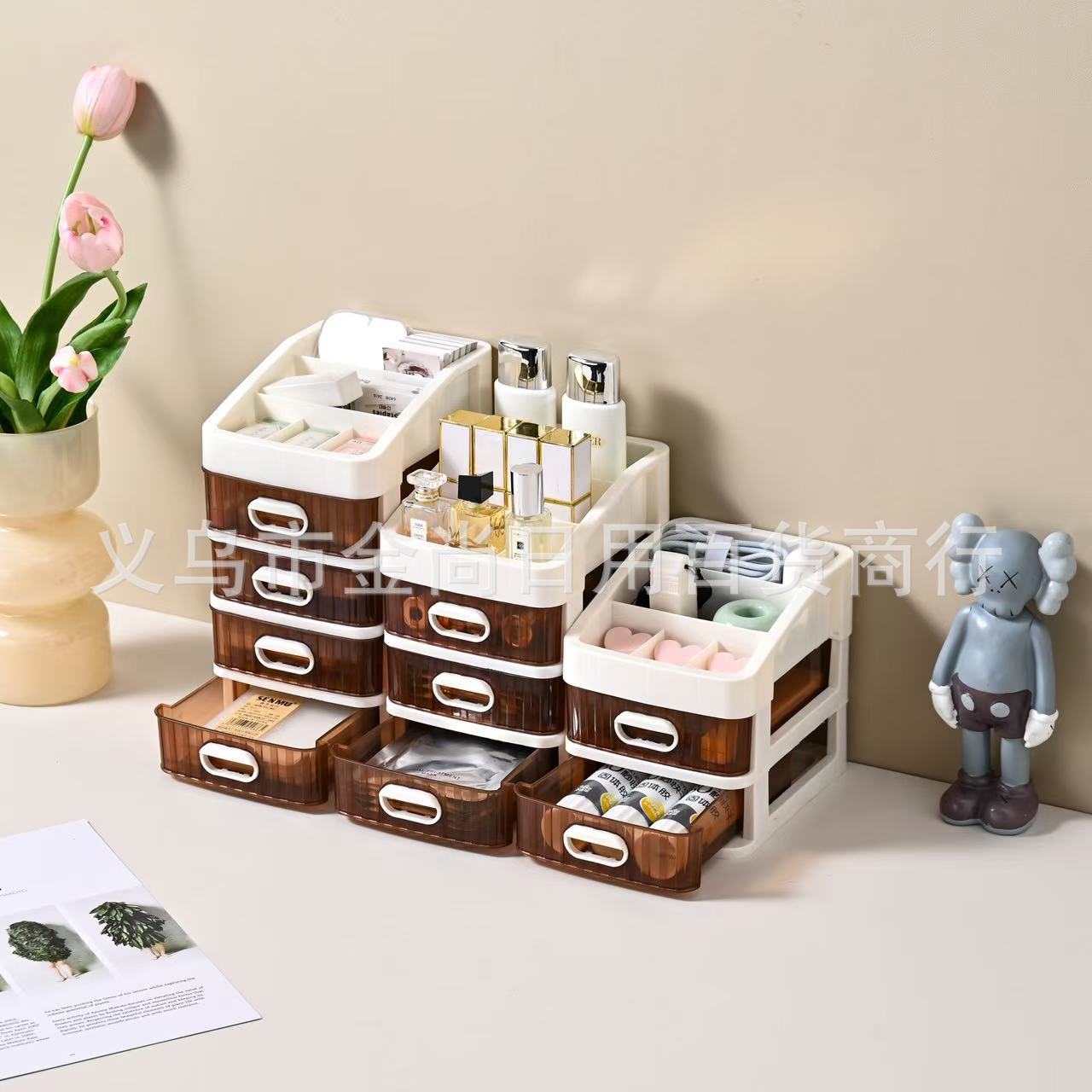 多款式小抽屉式桌面化妆收纳盒办公室书桌整理文具透明置物架储物