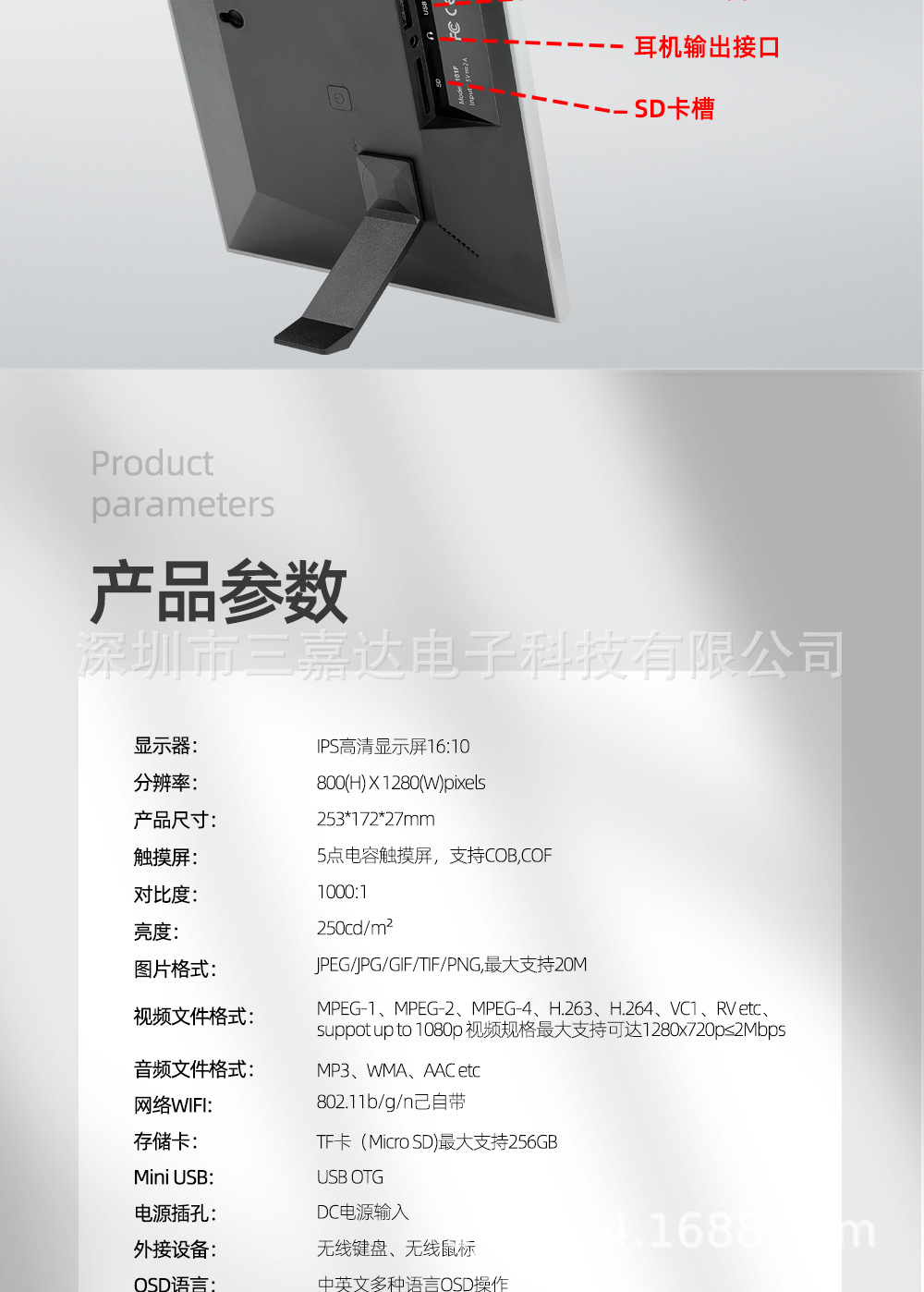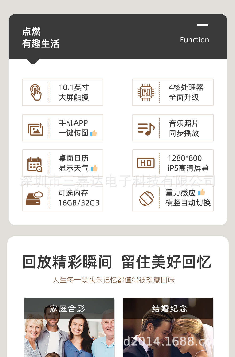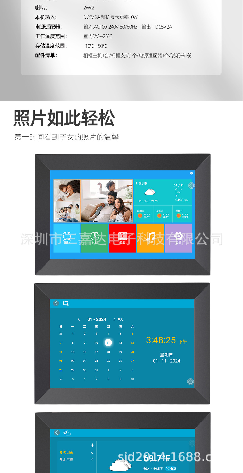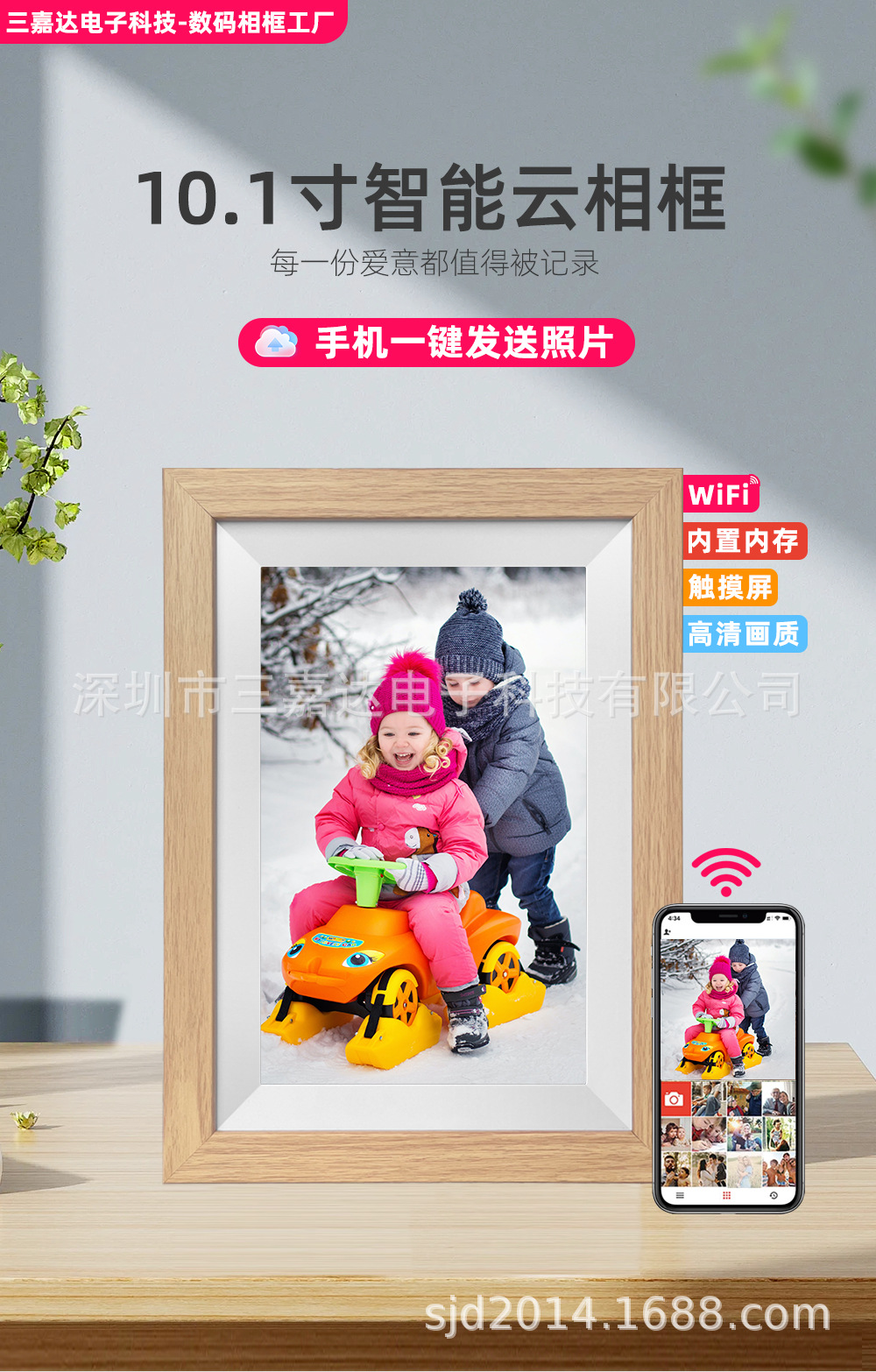 新10.1英寸WiFi电子相框Vphoto手机app发送图片视频电商一件代发