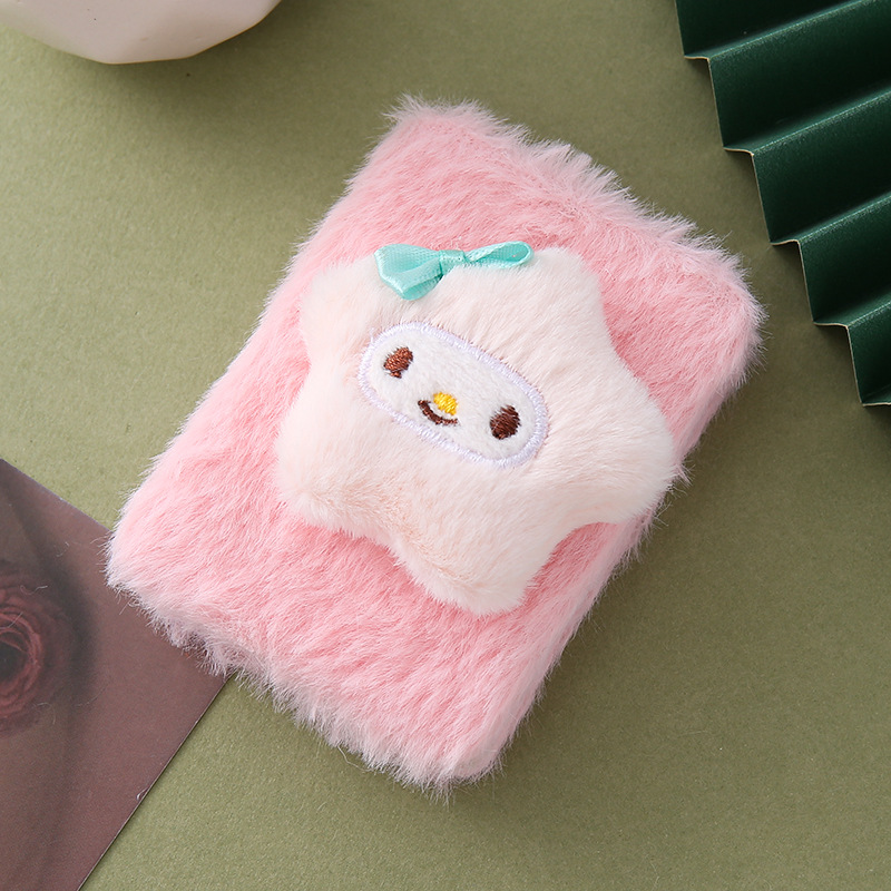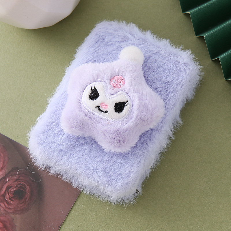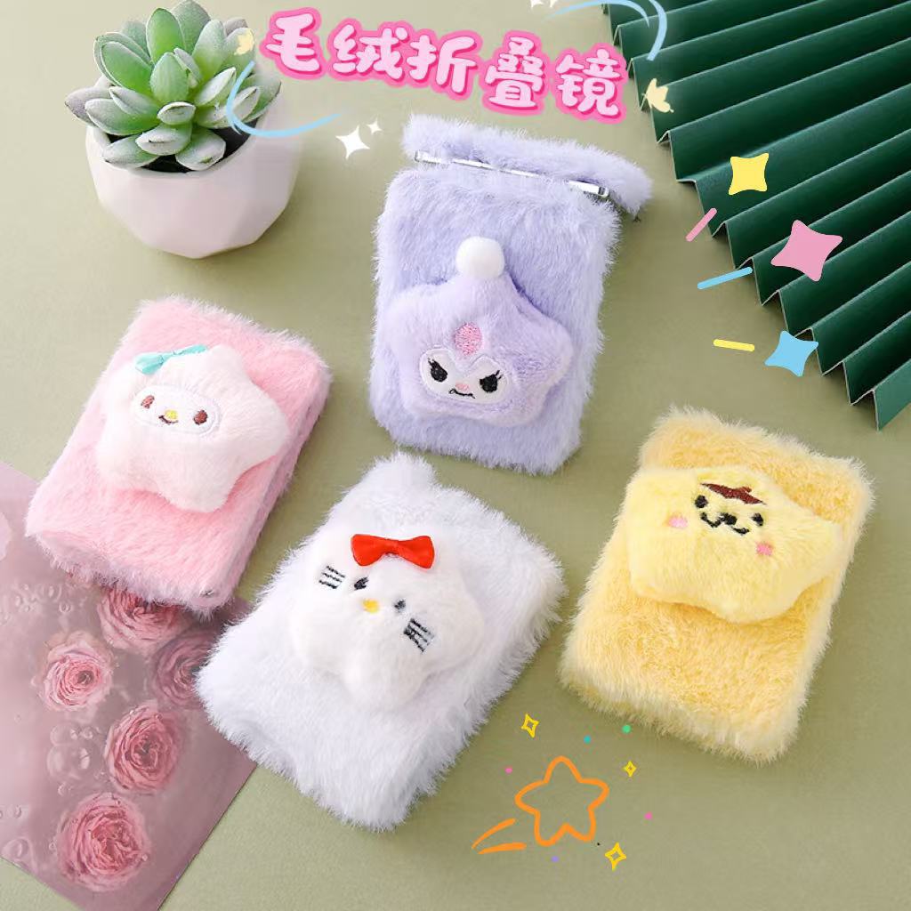 定制小镜子毛绒冬季折叠双面化妆镜可爱三丽鸥毛茸便携长方口袋镜