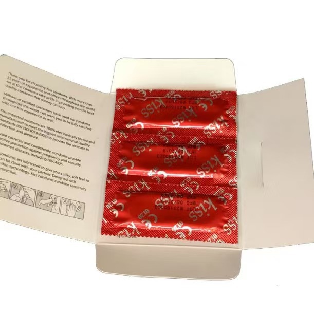 散装外贸现货长包kiss英文3只出口避孕套长条光面大油量condom
