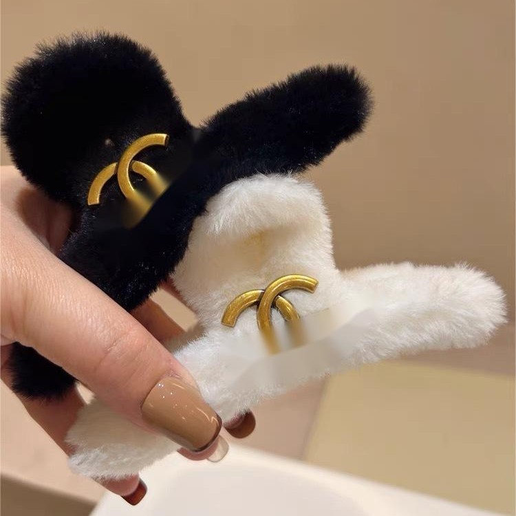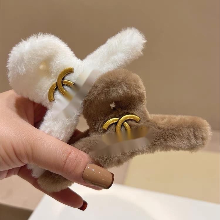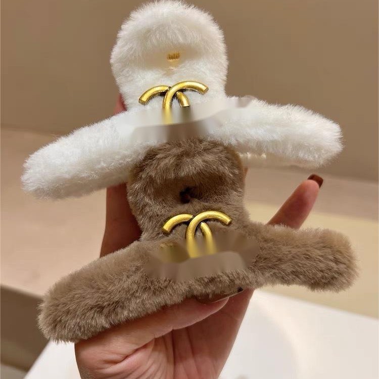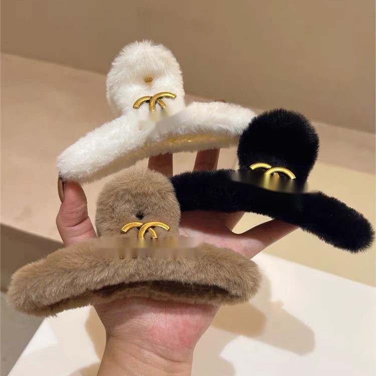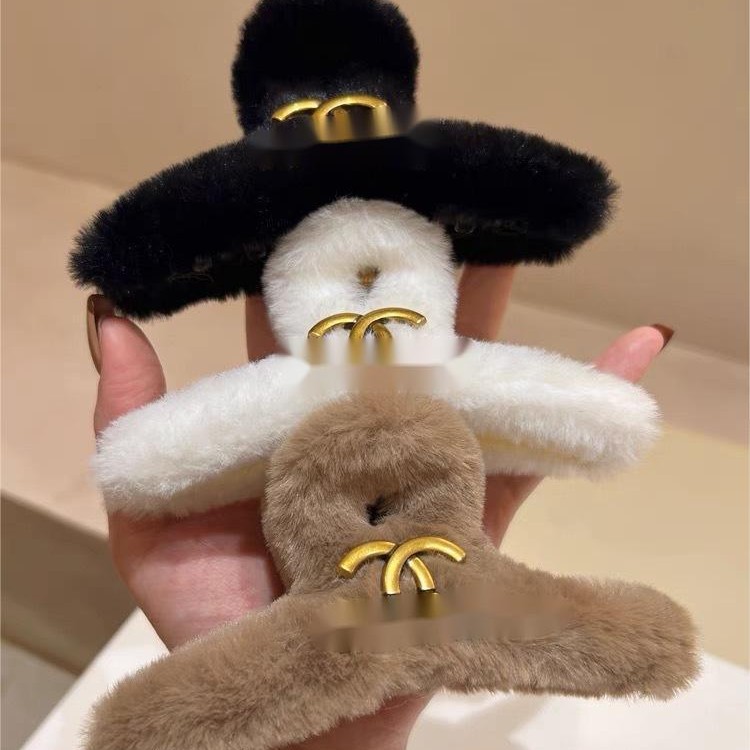 跨境外贸小香风P字母毛绒组合抓夹3个一组秋冬新款毛绒绒金属发饰