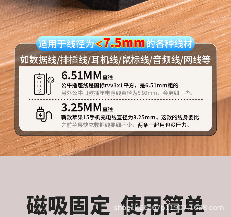 三孔数据线理线器充电桌面集线神器保护器电线收纳整理鼠标固定器