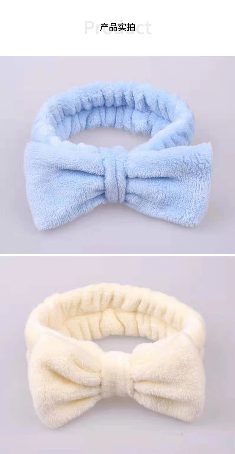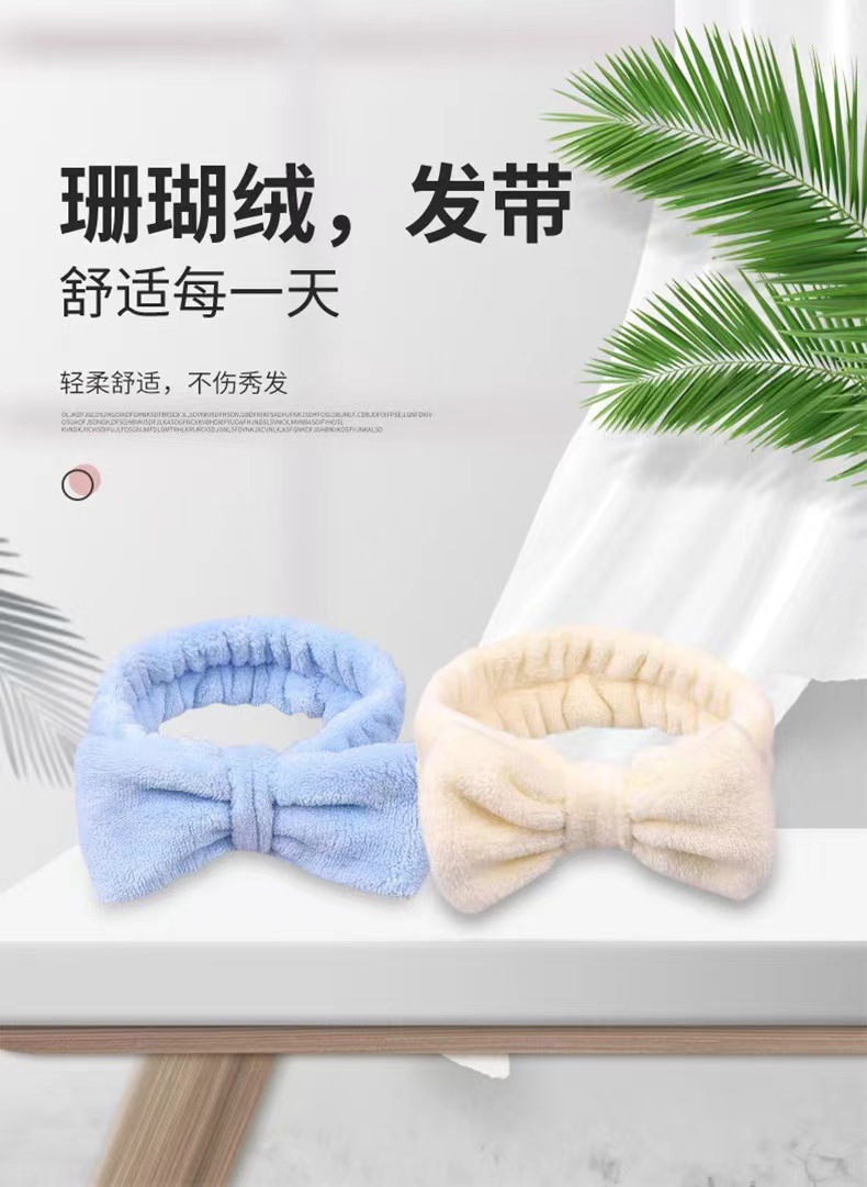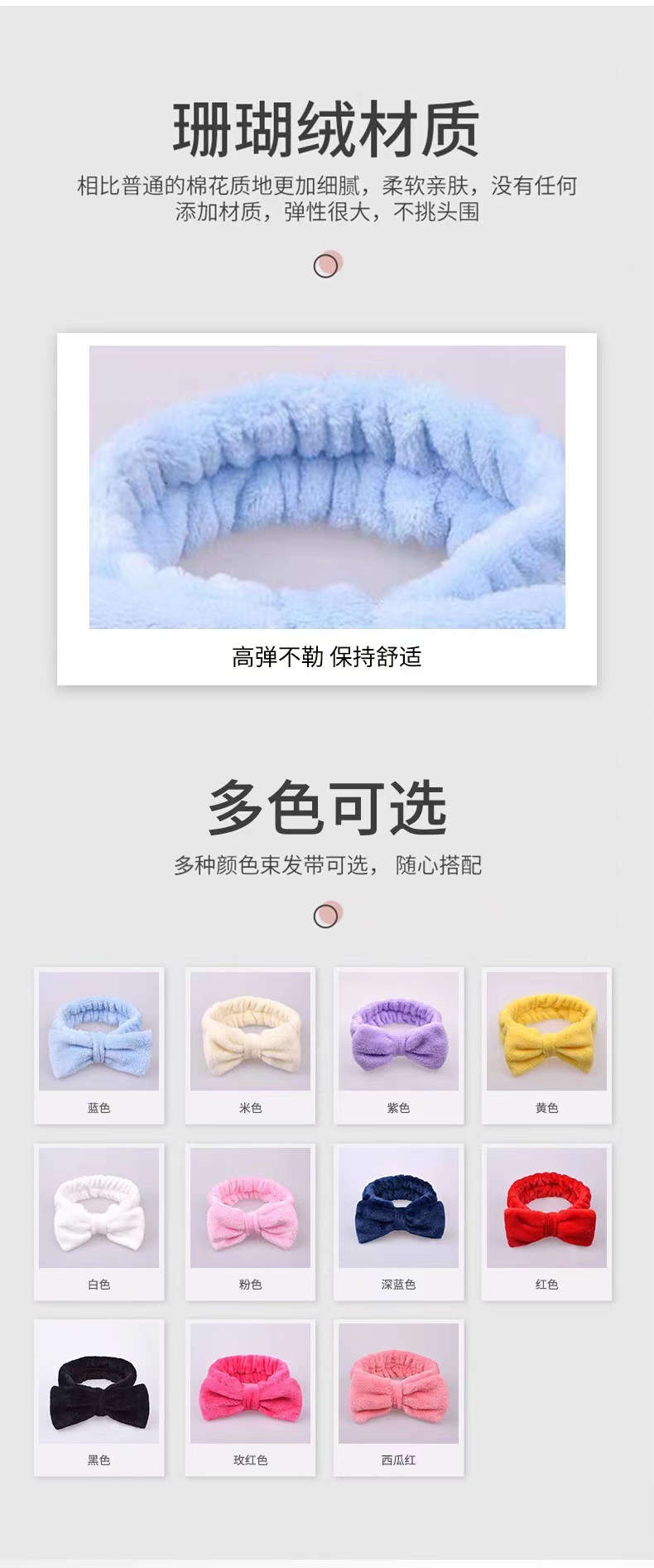跨境珊瑚绒蝴蝶结发带女士宽边洗脸发箍纯色毛绒束发带简约发饰
