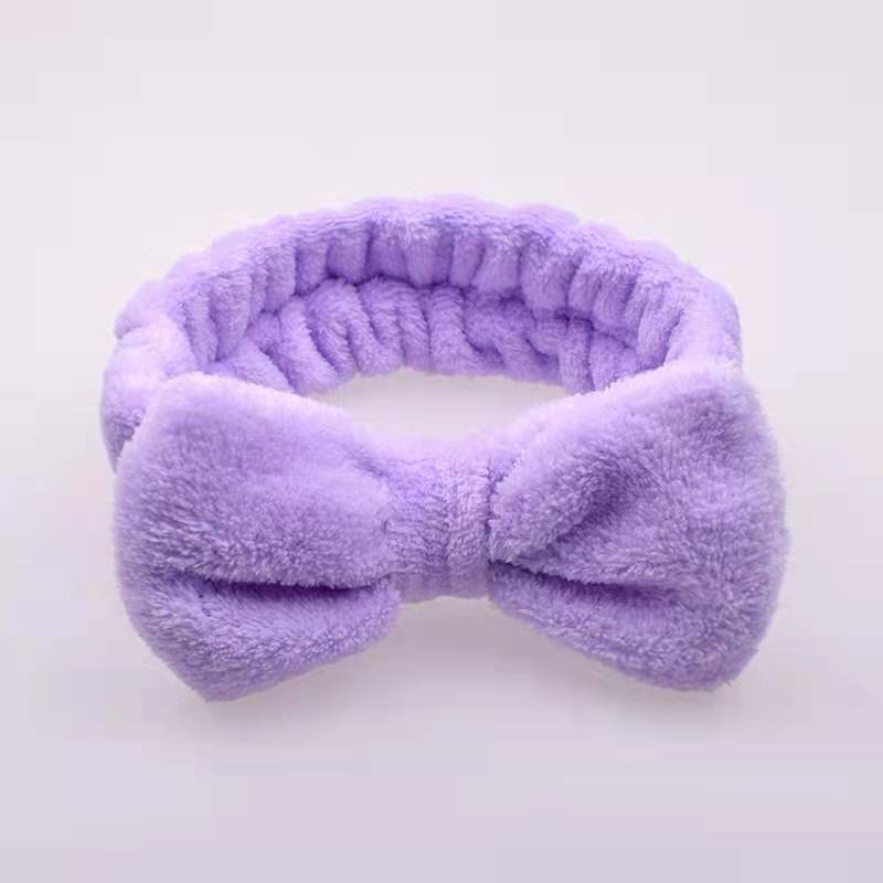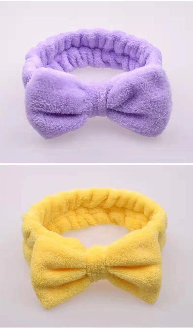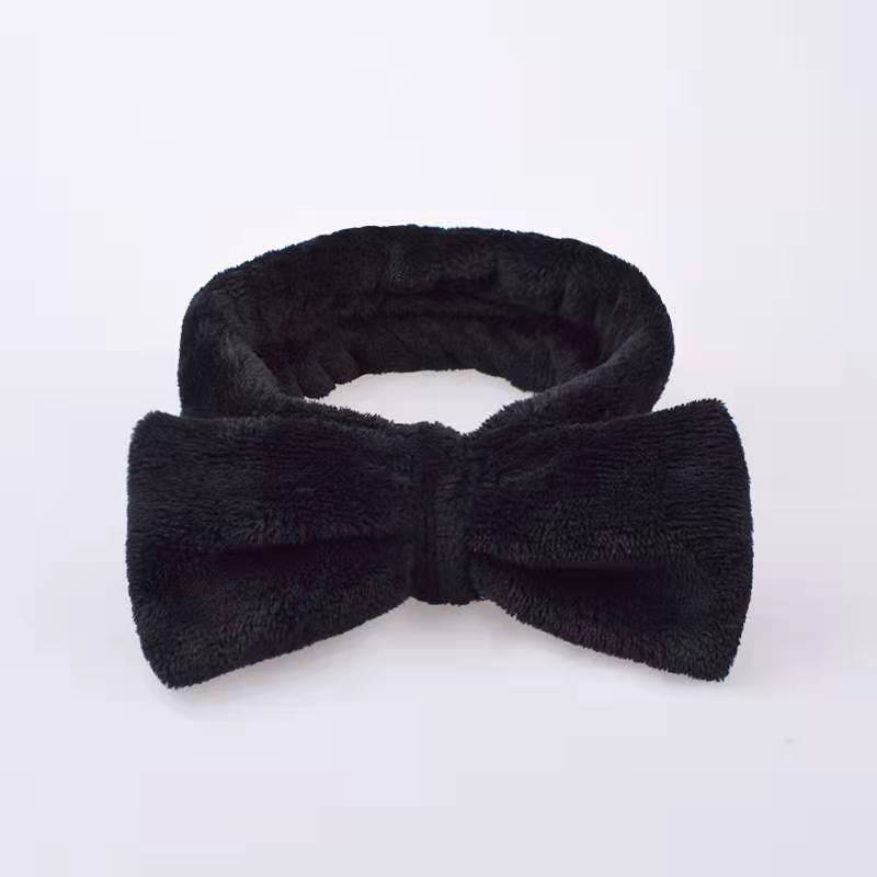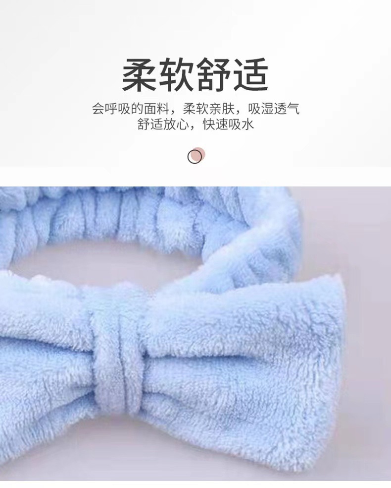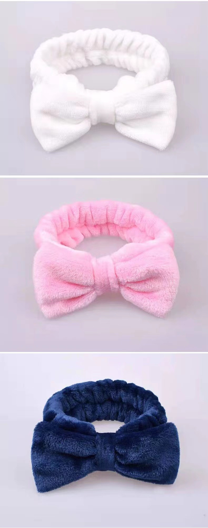 跨境珊瑚绒蝴蝶结发带女士宽边洗脸发箍纯色毛绒束发带简约发饰