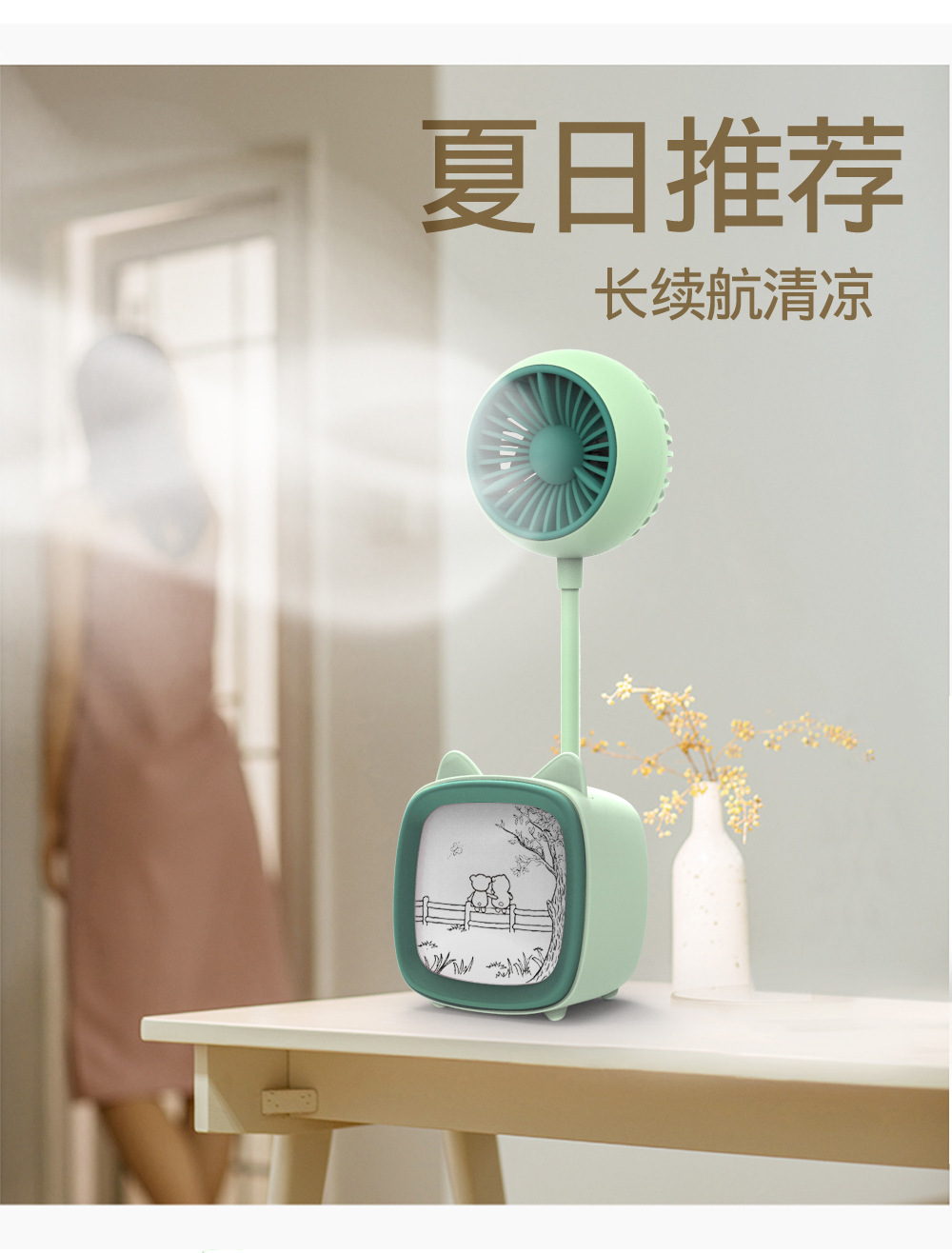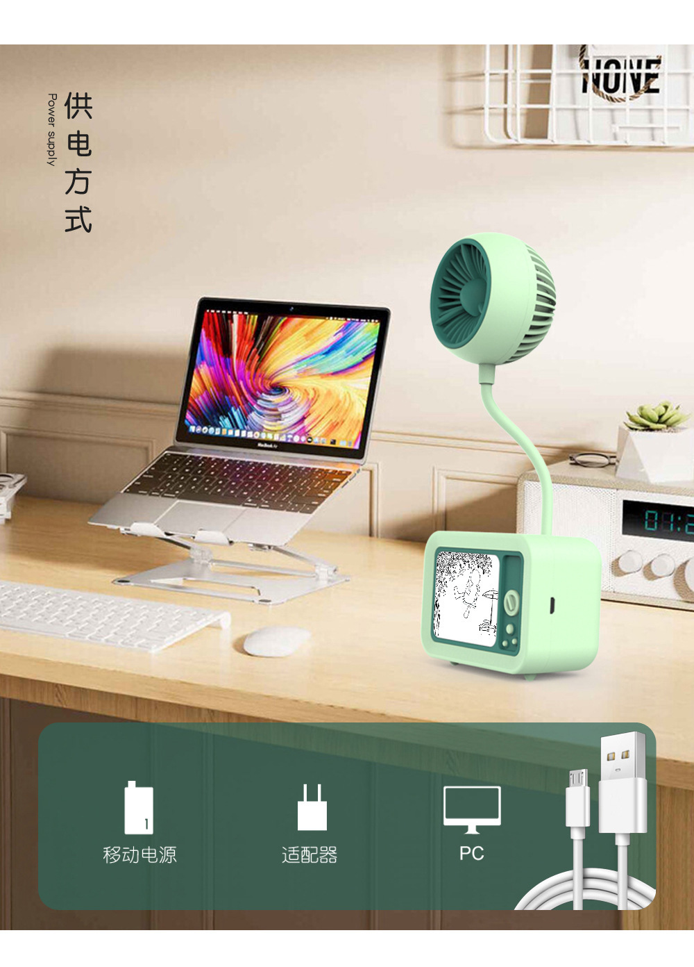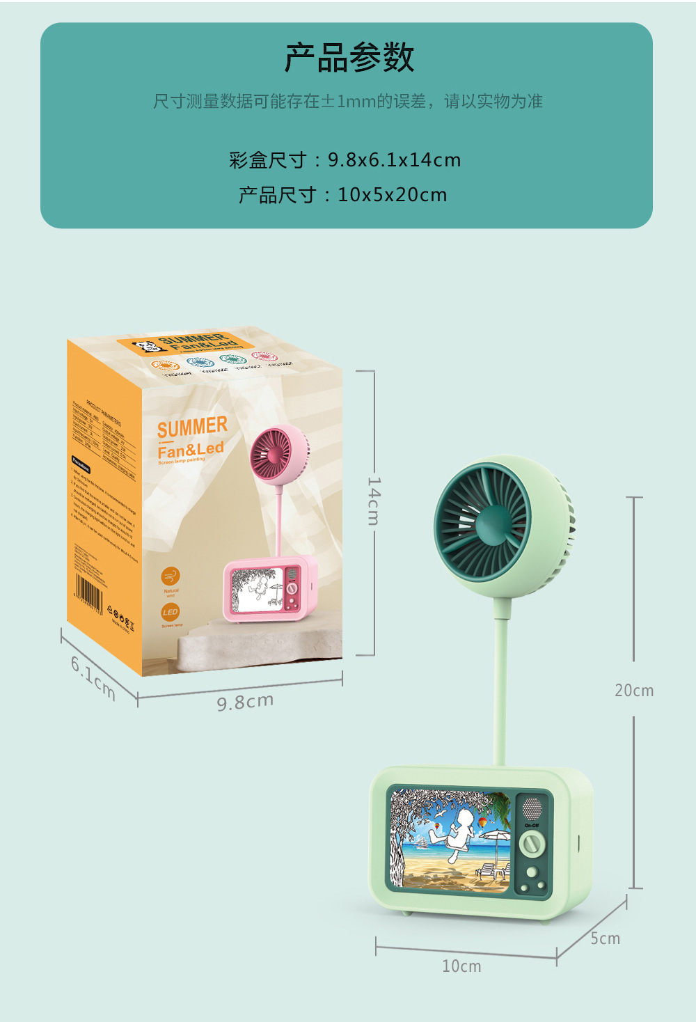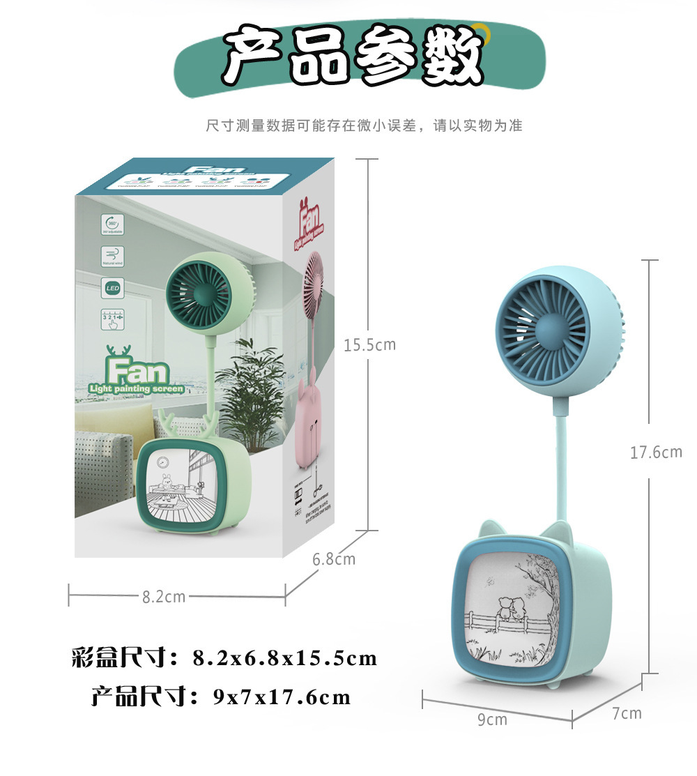 跨境新款氛围灯光画桌面小风扇USB充电宿舍办公台式风扇儿童礼品