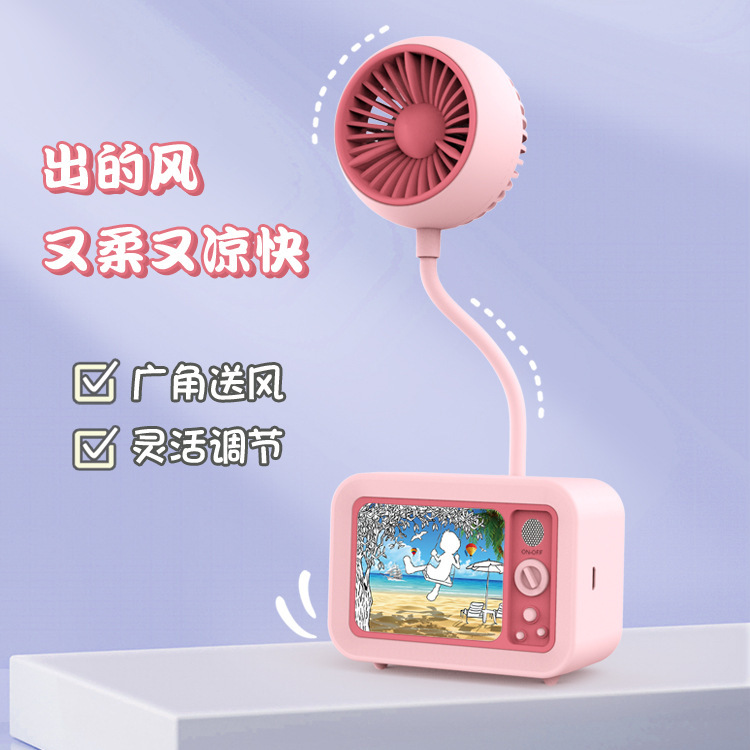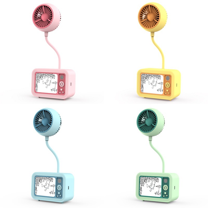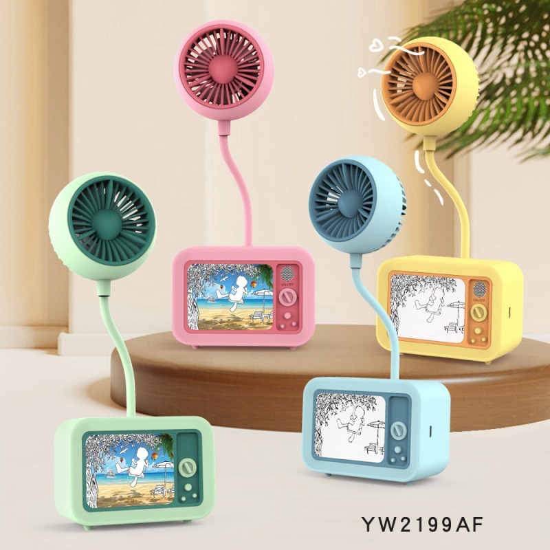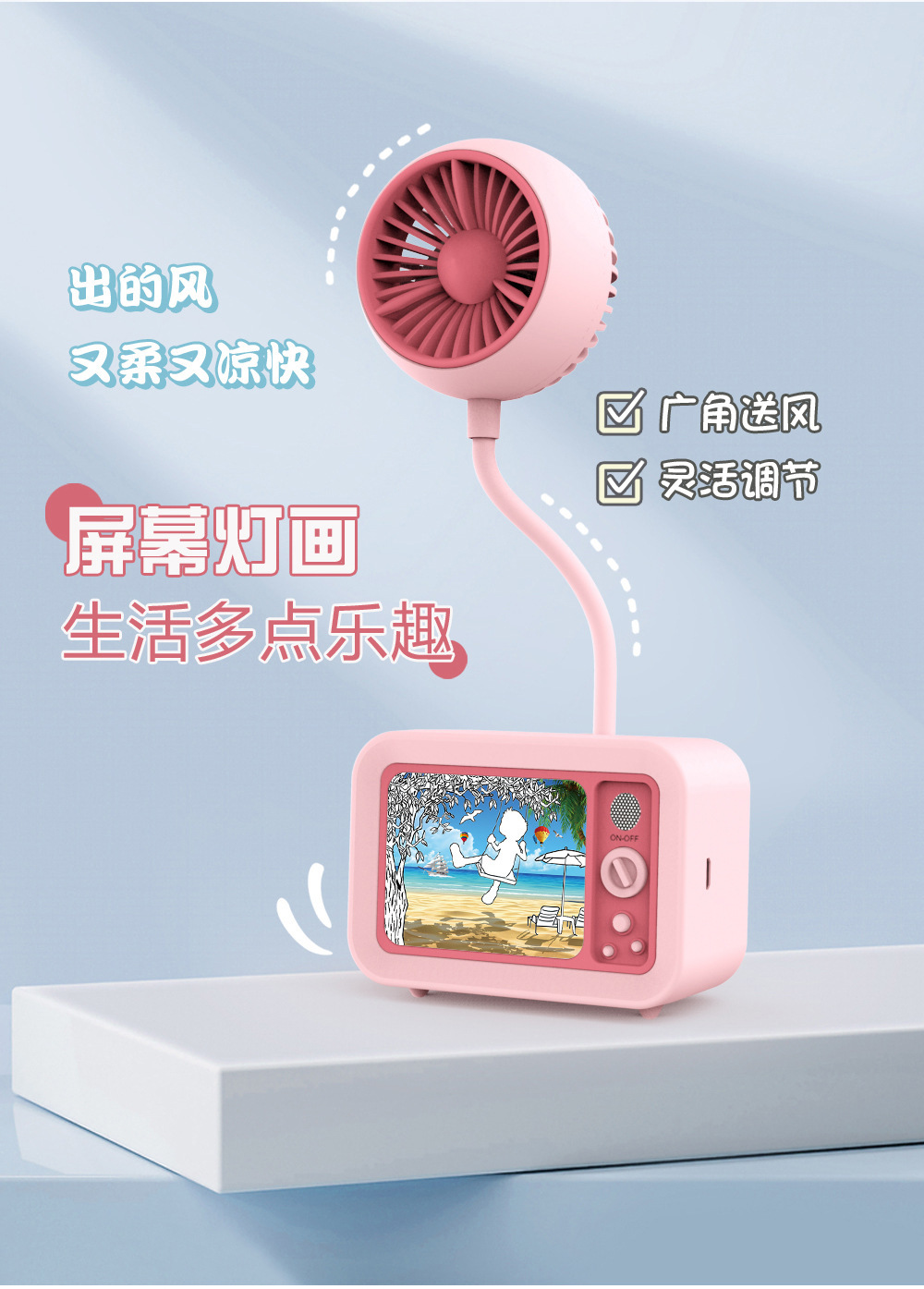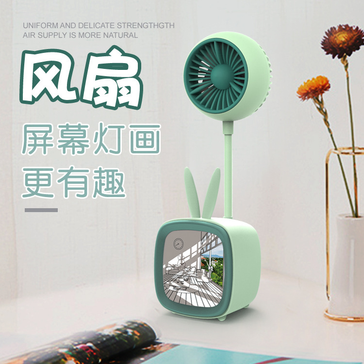跨境新款氛围灯光画桌面小风扇USB充电宿舍办公台式风扇儿童礼品