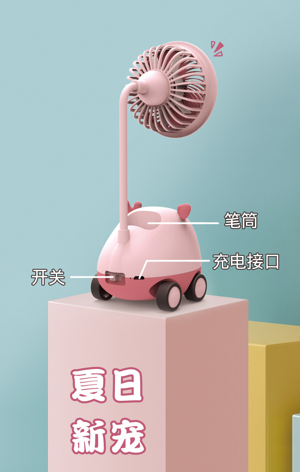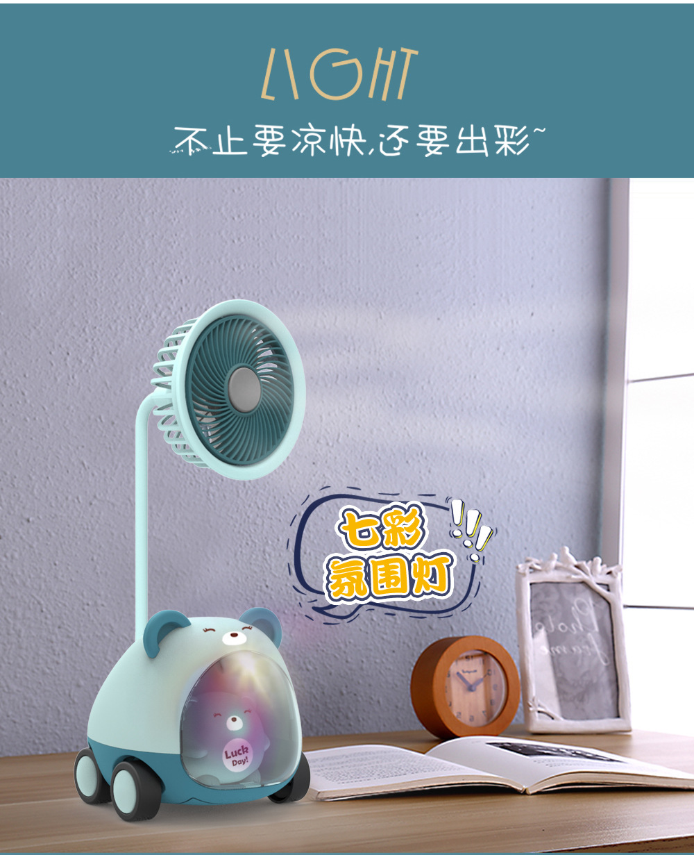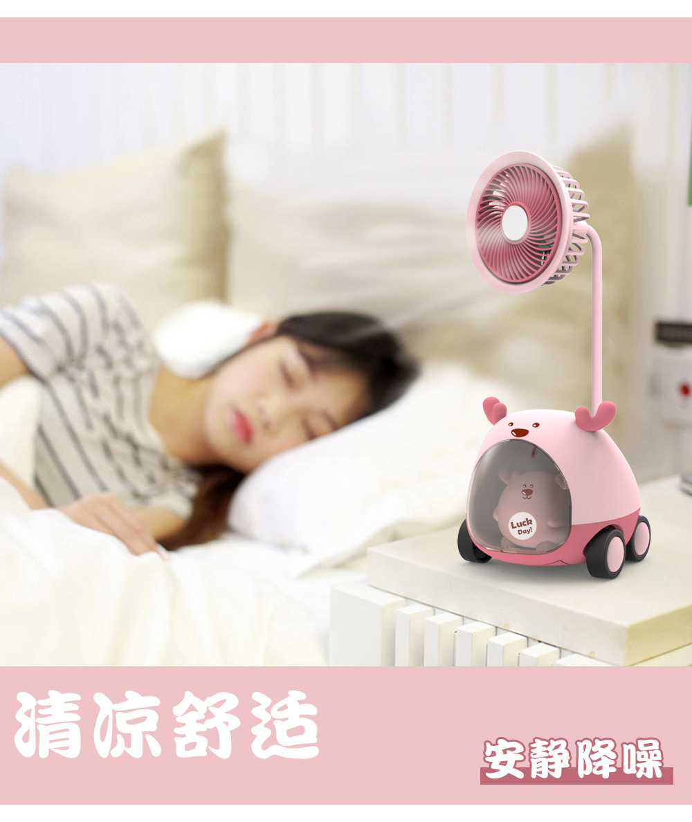 卡通笔筒小风扇便携手持带灯电扇 USB充电桌面学生卷笔刀礼品风扇