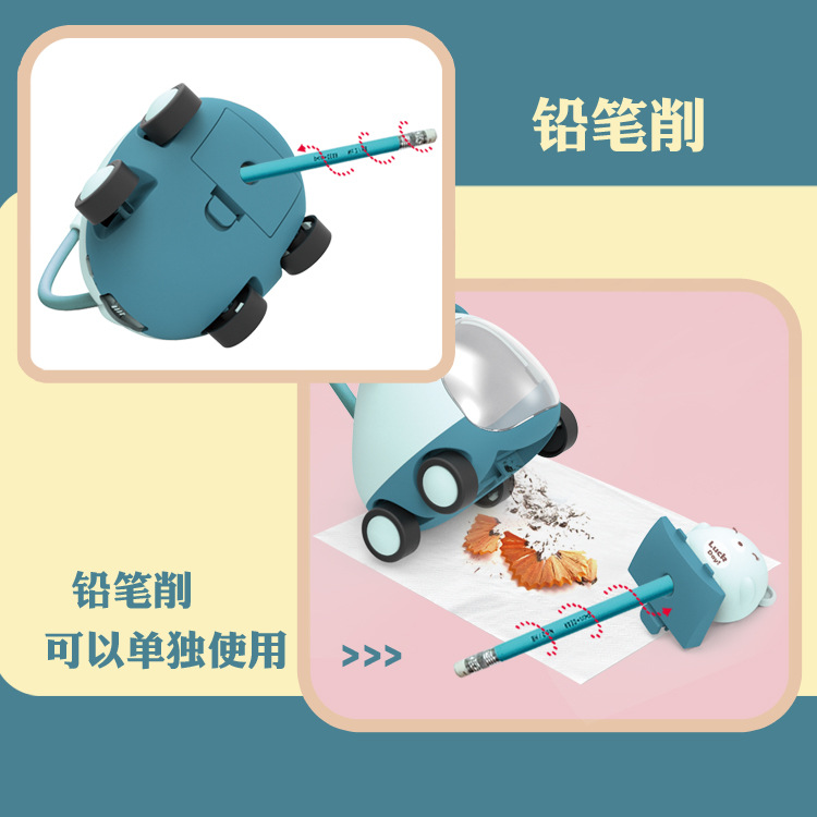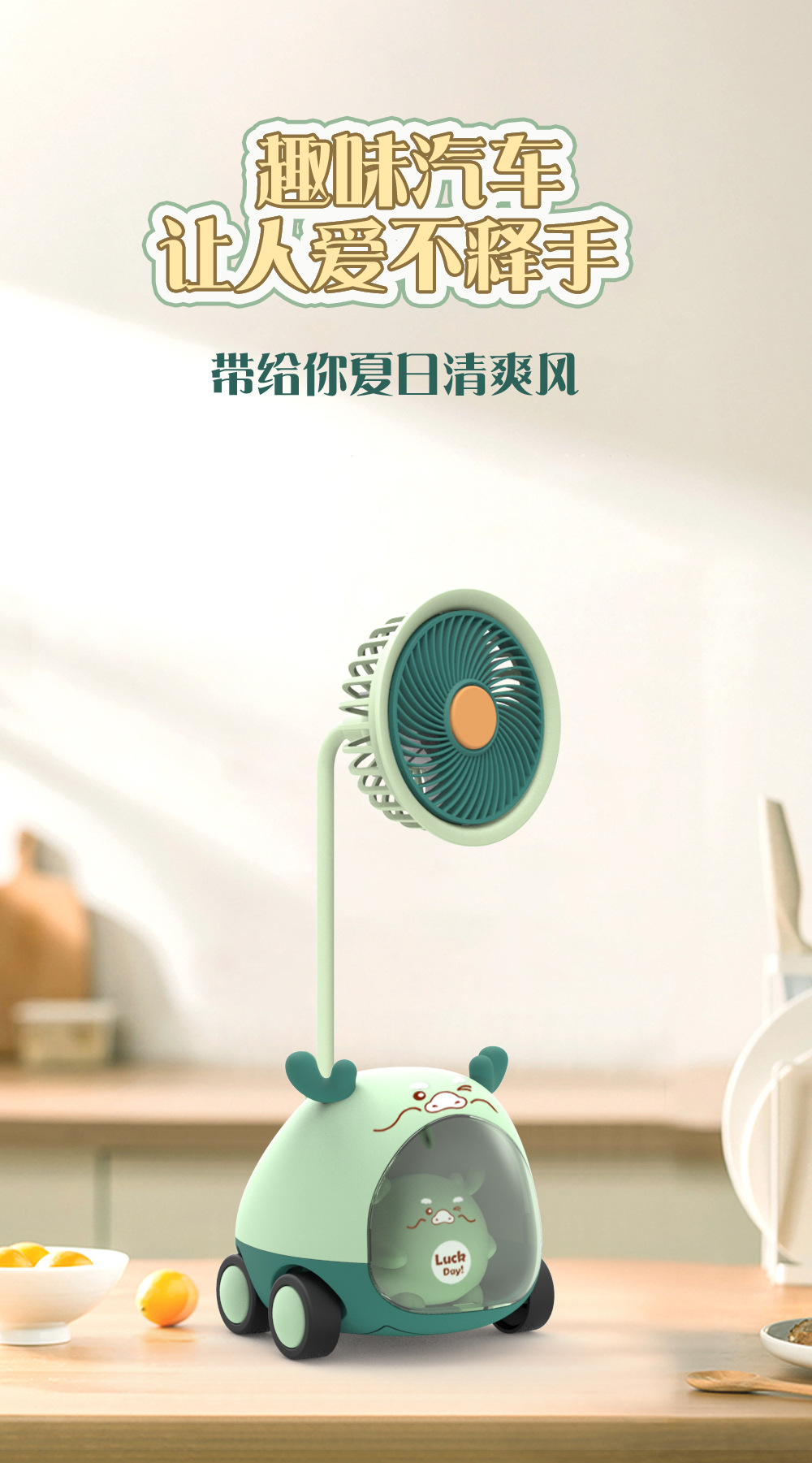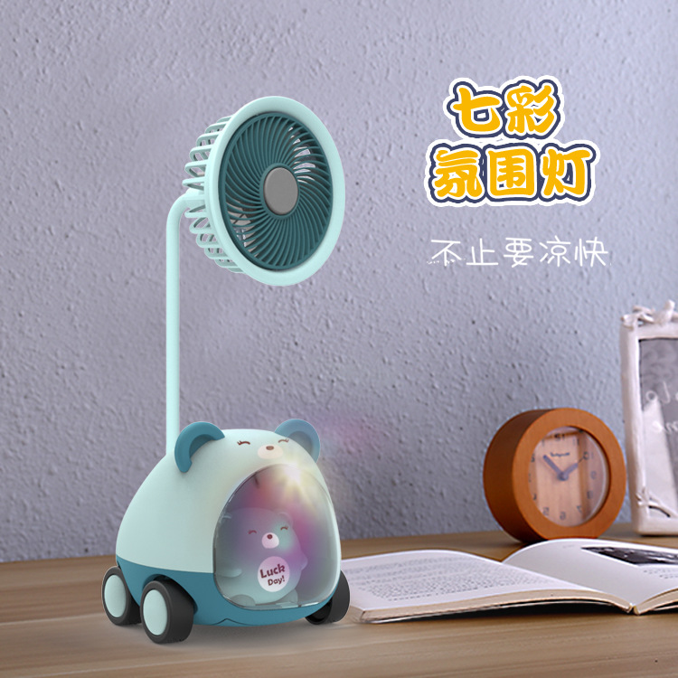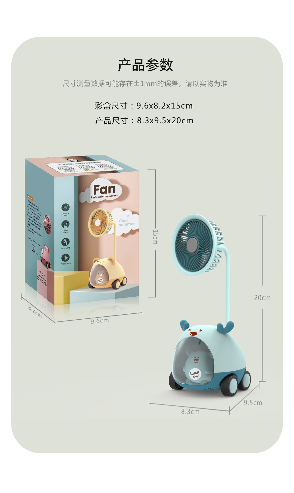 卡通笔筒小风扇便携手持带灯电扇 USB充电桌面学生卷笔刀礼品风扇