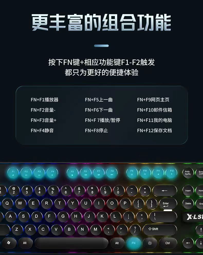 | 黑色彩虹【键盘+升级电竞鼠标】送垫三件套 | USD $8.48 | 99999 piece available |