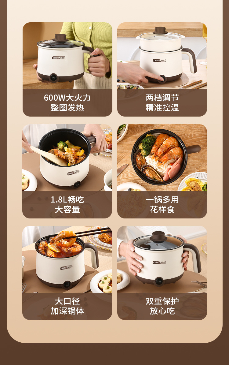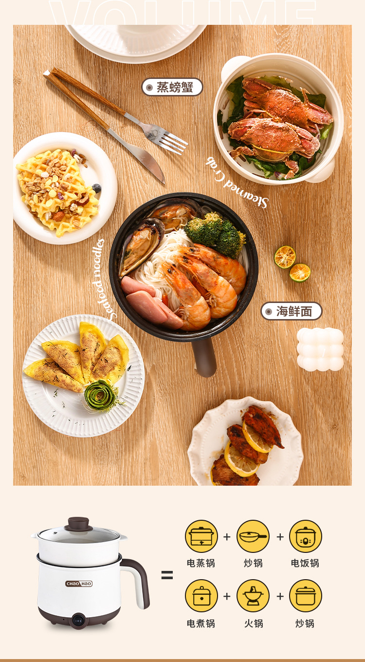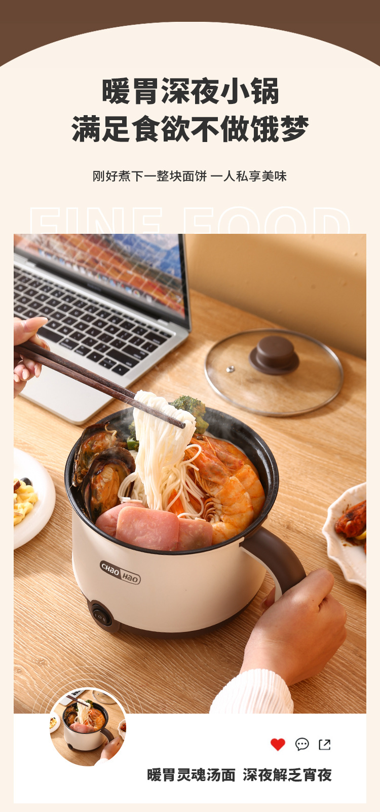 多功能电火锅小电锅不粘锅学生锅宿舍神器迷你电饭煲一体锅电热锅