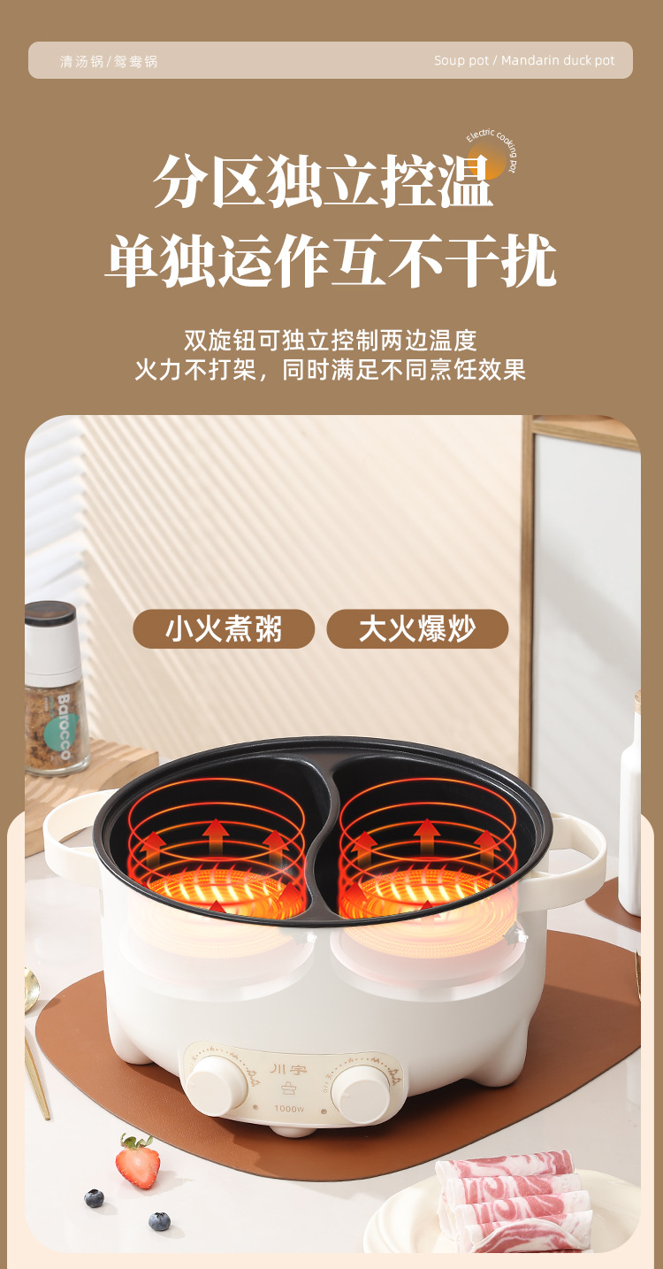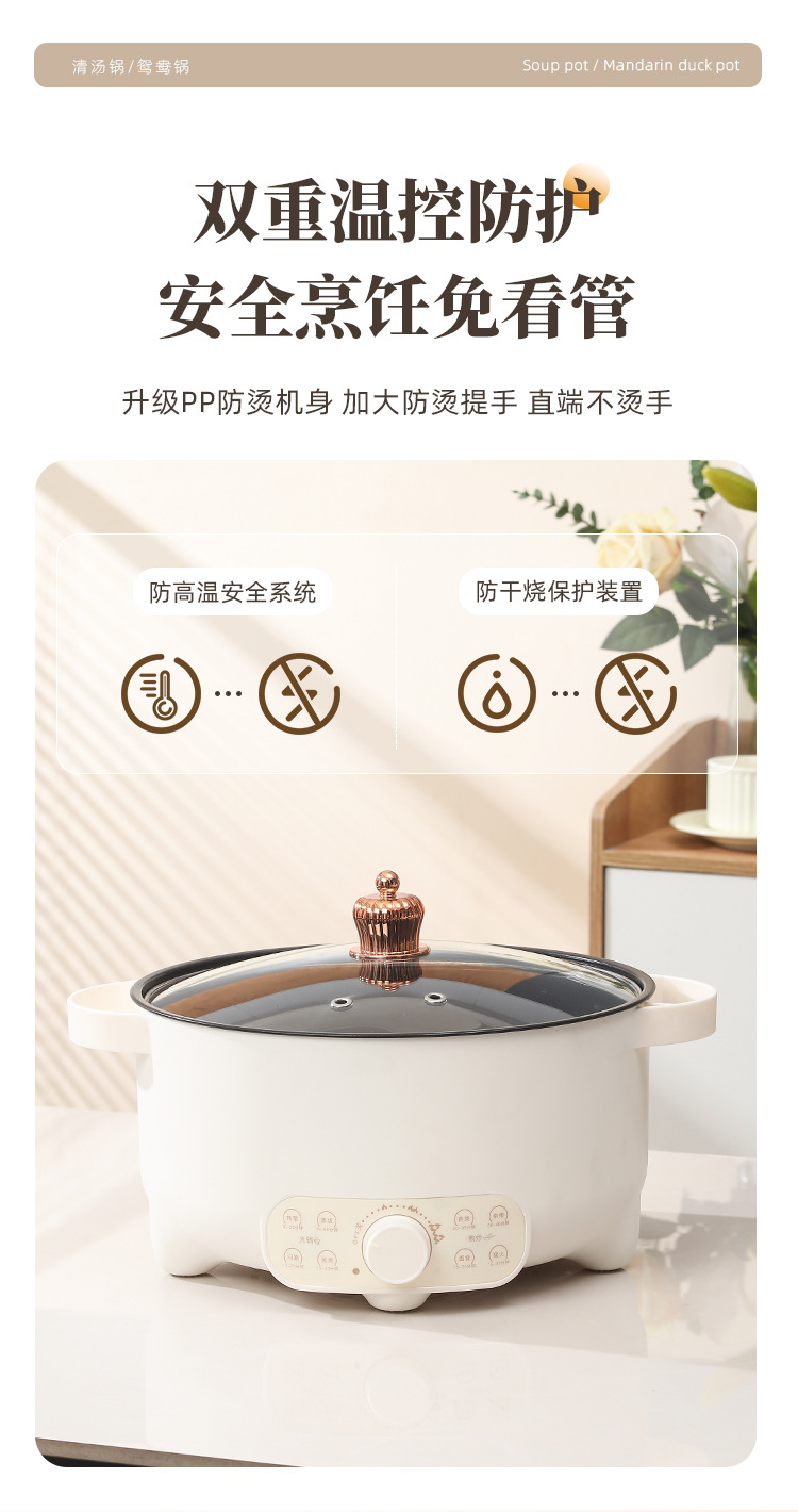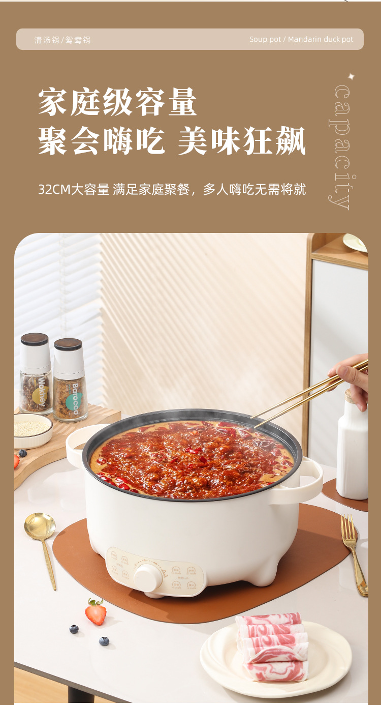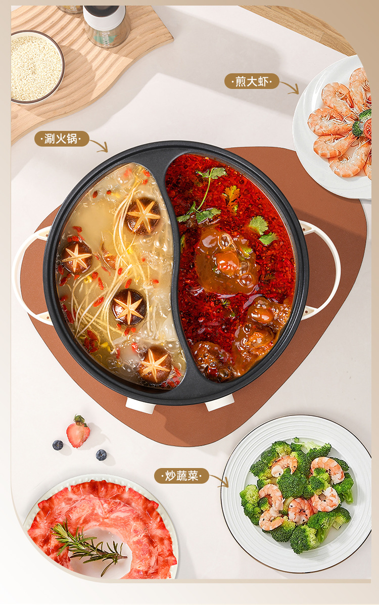 鸳鸯锅电煮锅家用多功能一体电火锅大容量宿舍电锅电热火锅专用锅