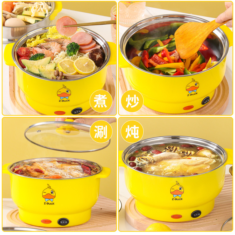 小黄鸭双耳电煮锅电火锅 家用宿舍一体式电热锅礼品批发外卖火锅