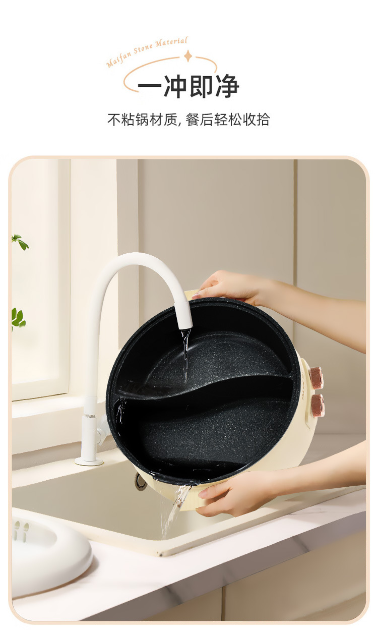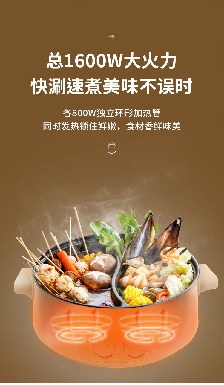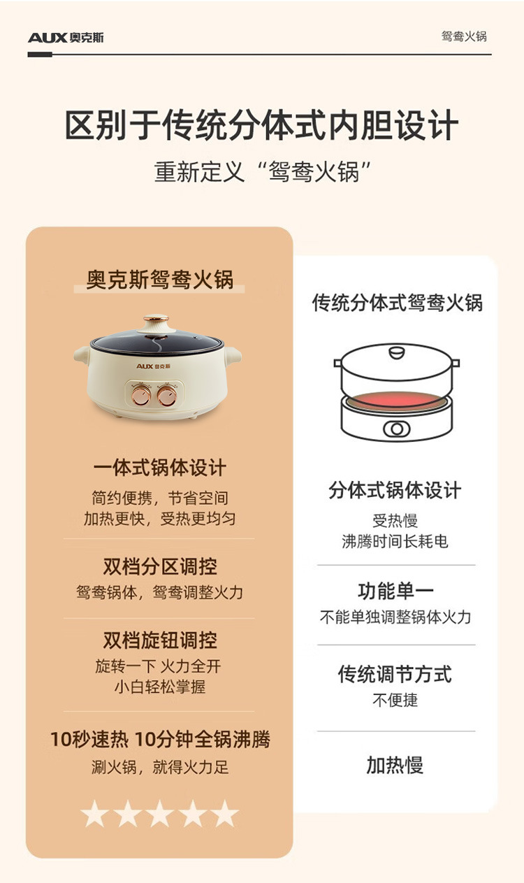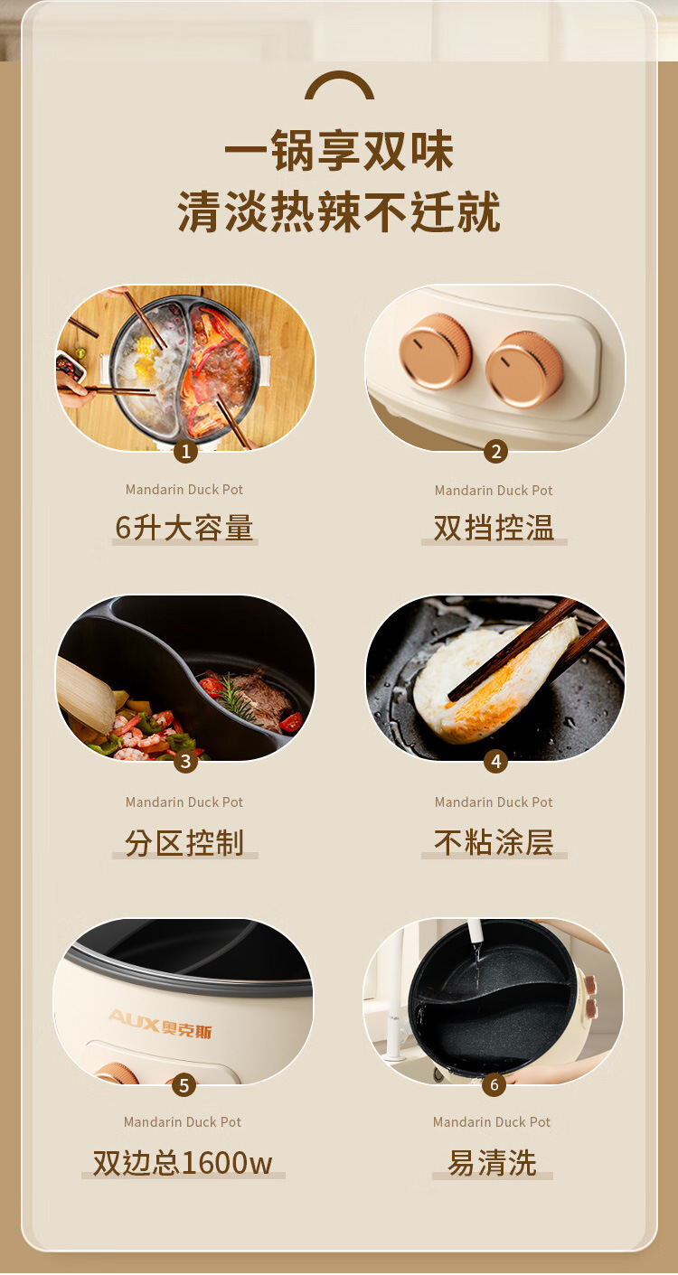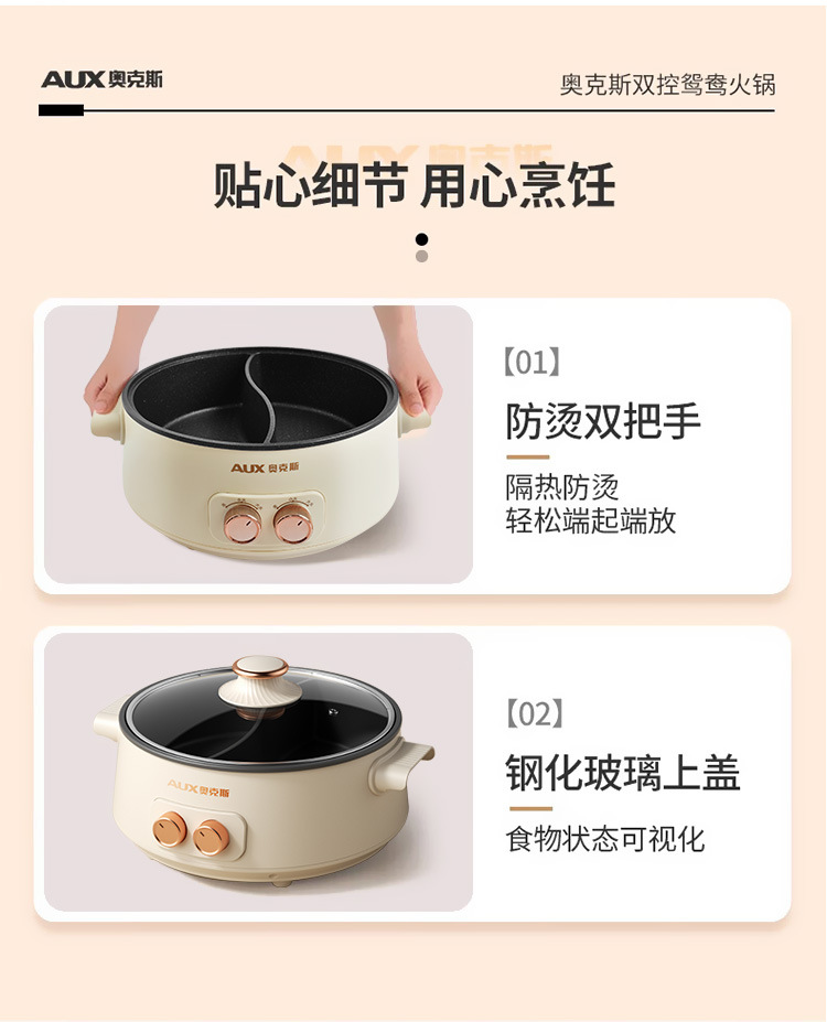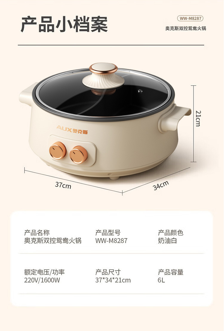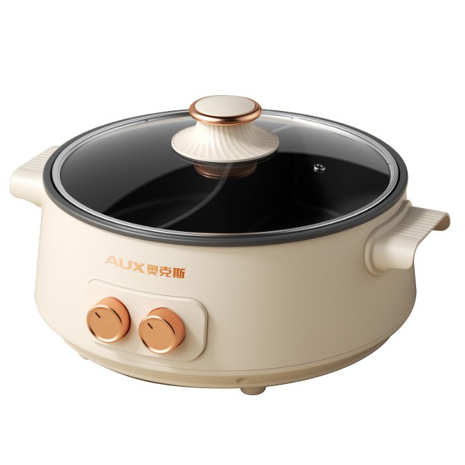 奥克斯鸳鸯锅电火锅家用大容量6L双控多功能一体电煮锅礼品批发