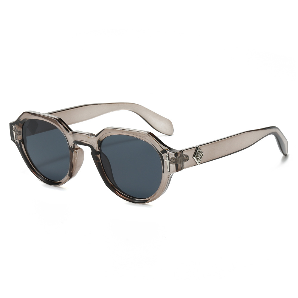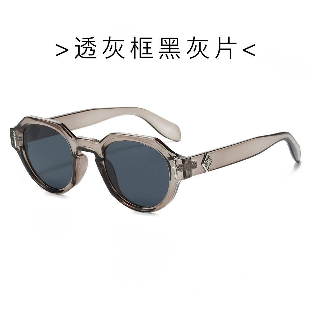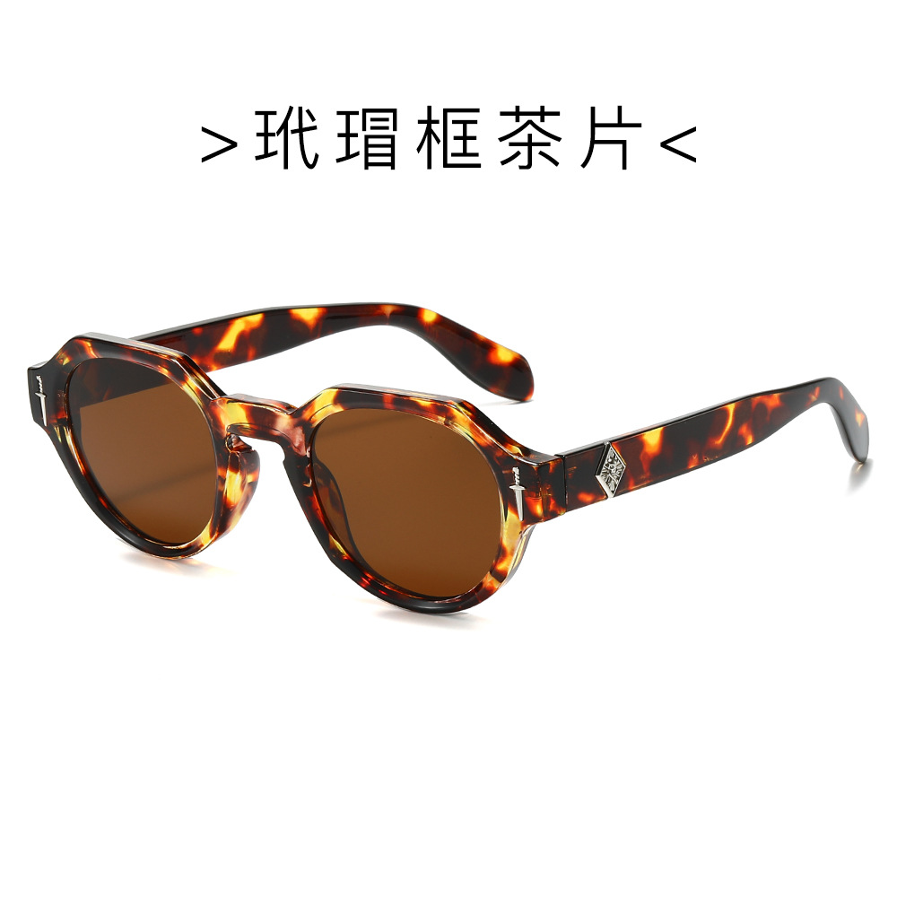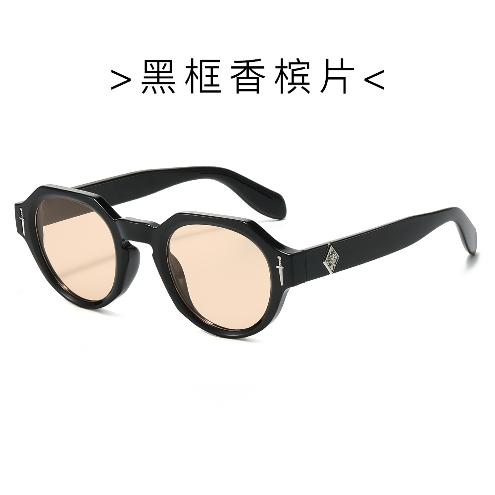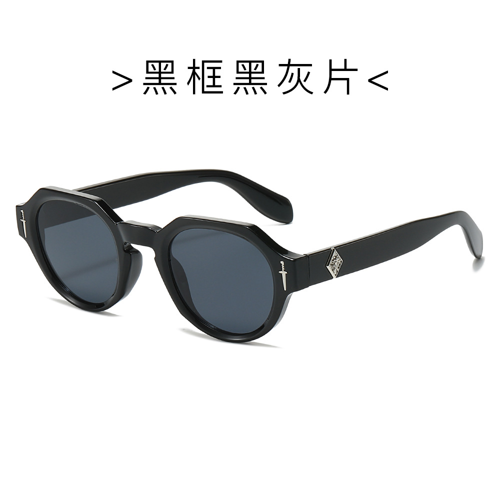 欧美多边形圆形太阳镜男女高级感时尚街拍眼镜轻奢风金属标镜腿墨