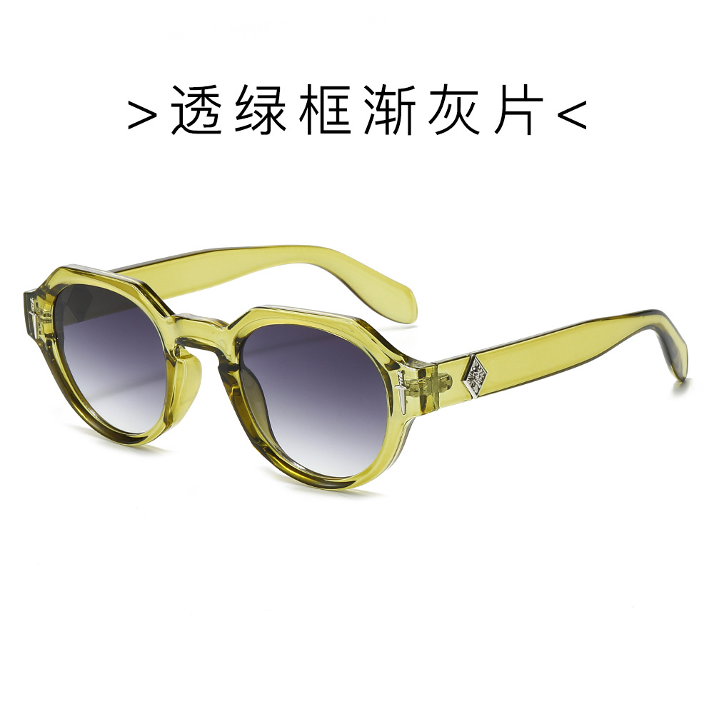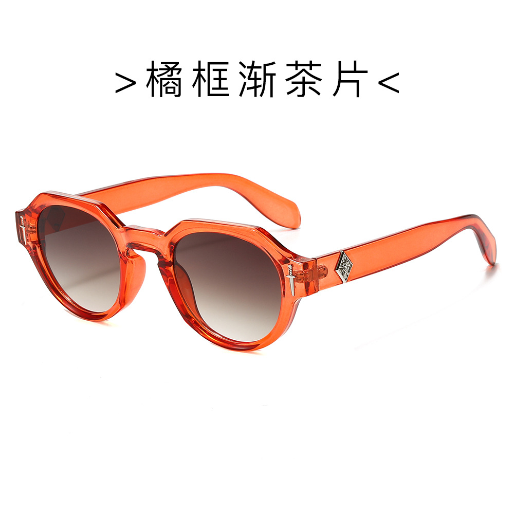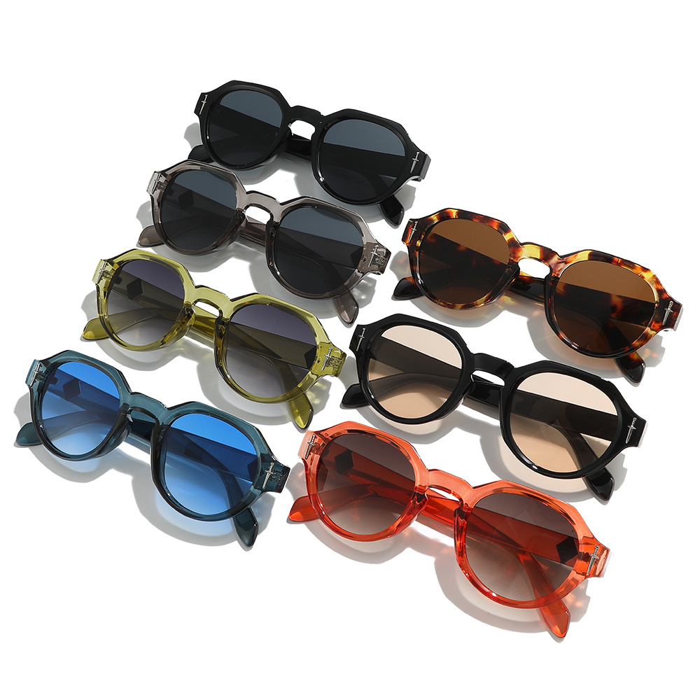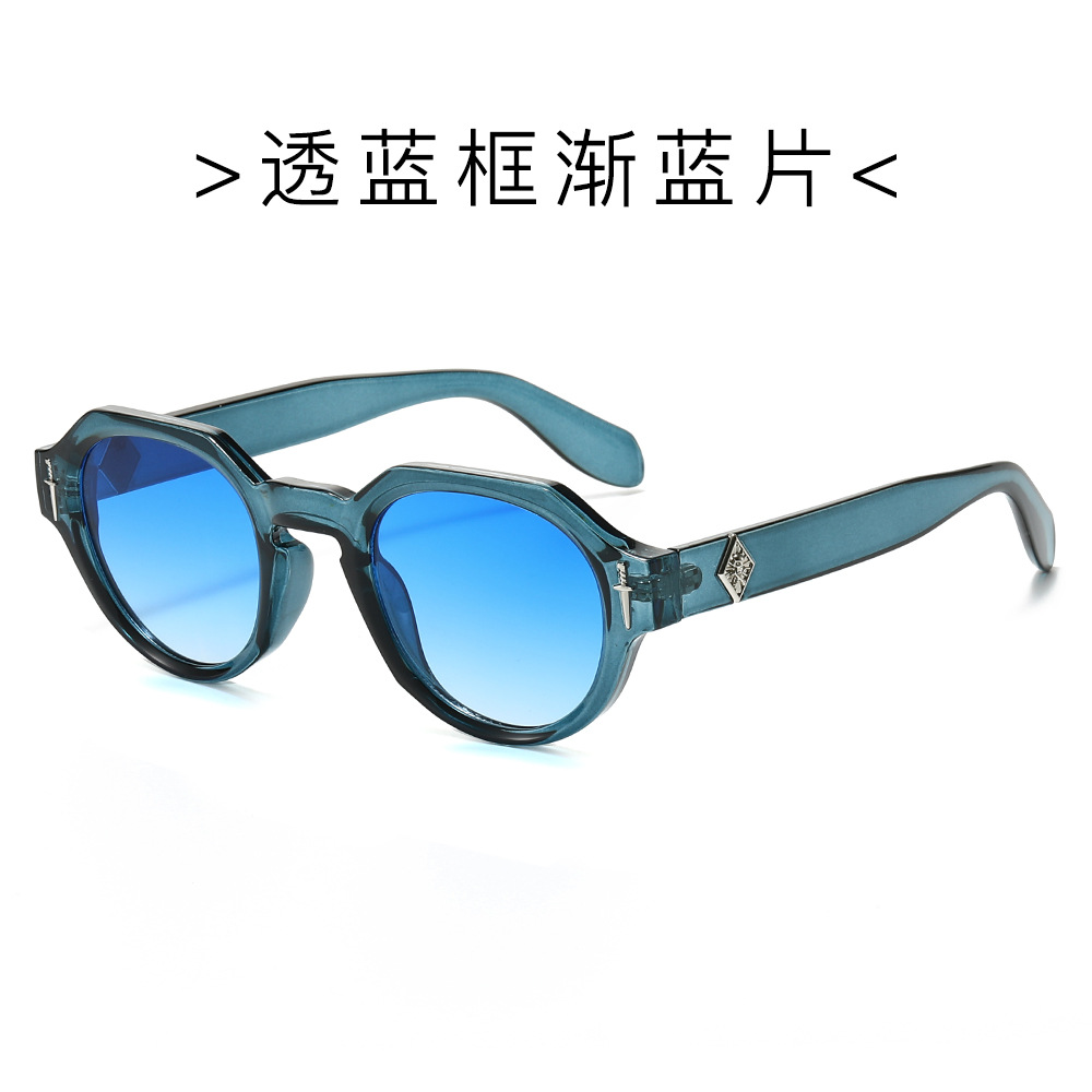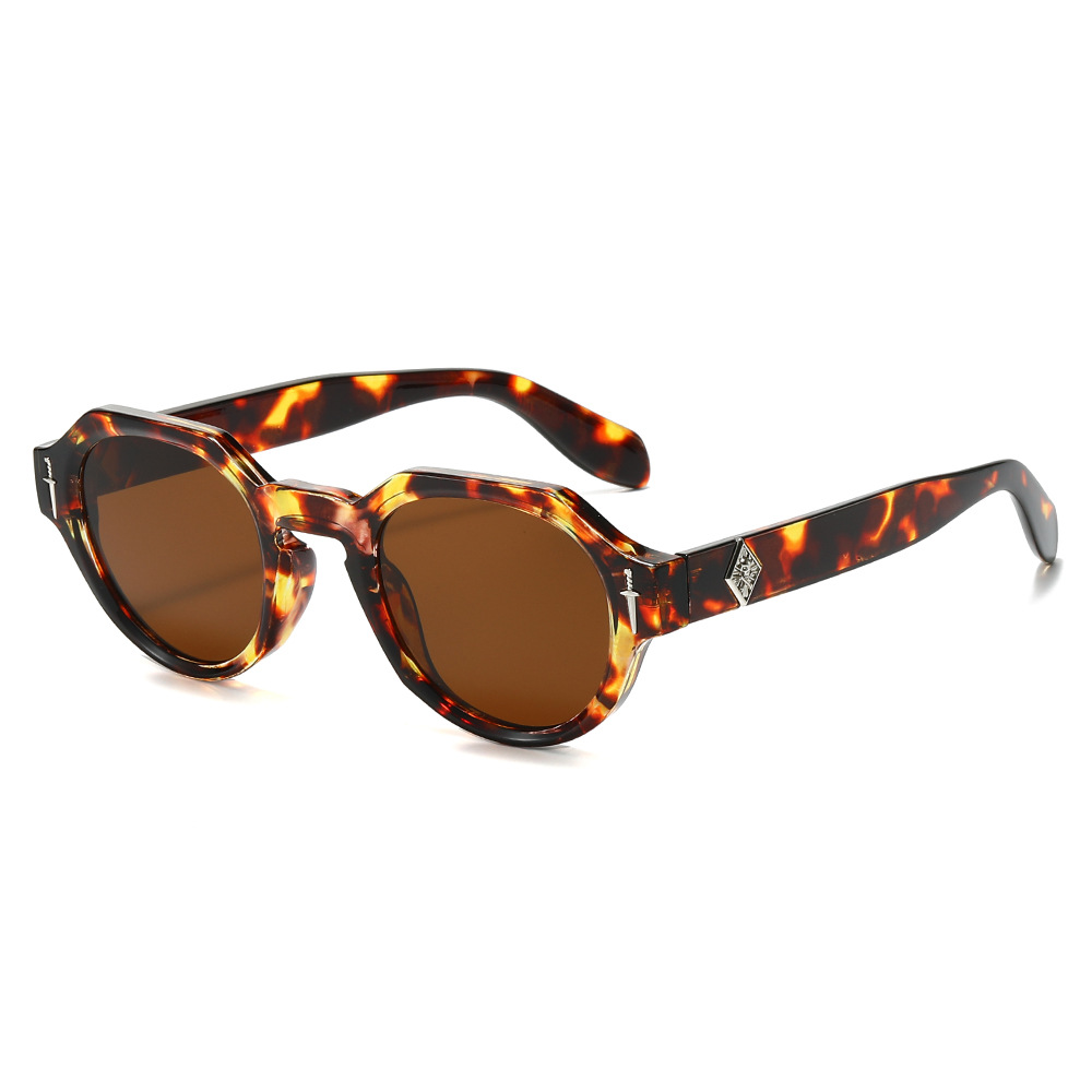 欧美多边形圆形太阳镜男女高级感时尚街拍眼镜轻奢风金属标镜腿墨