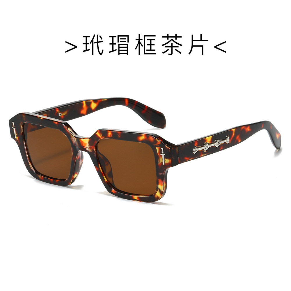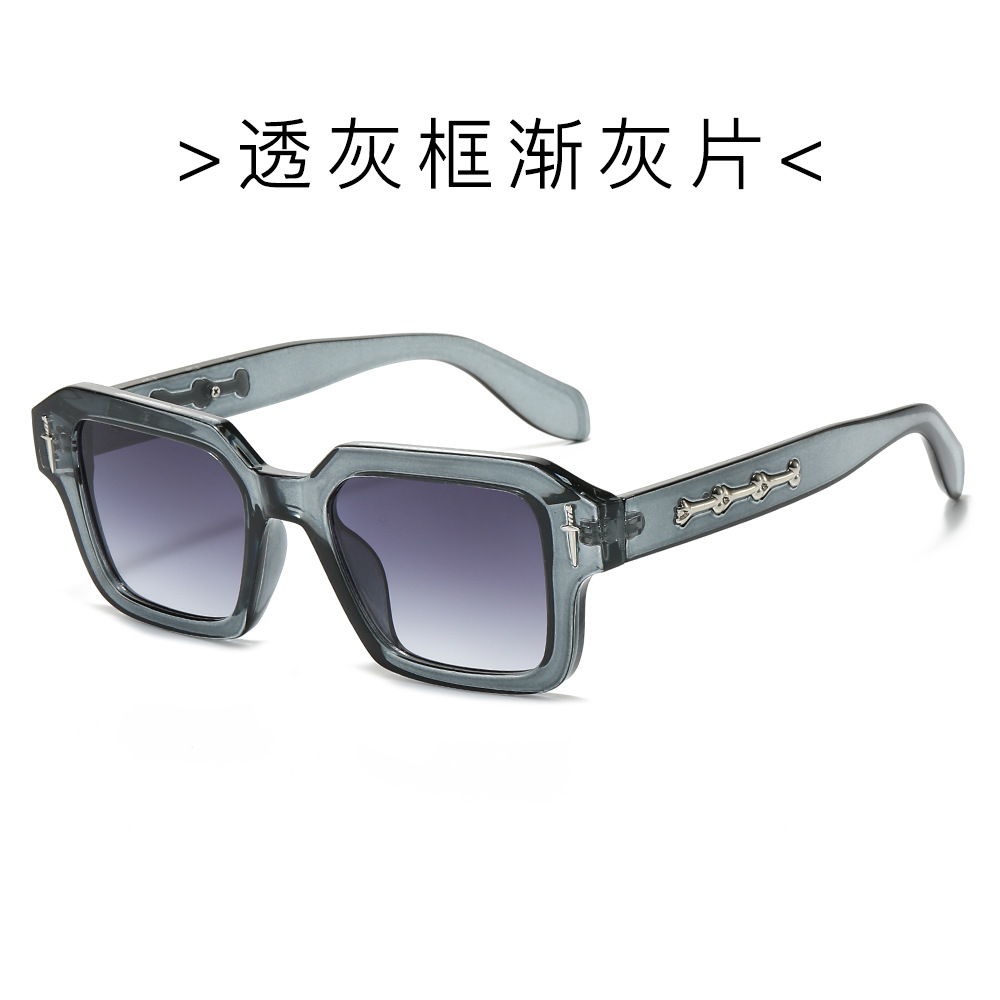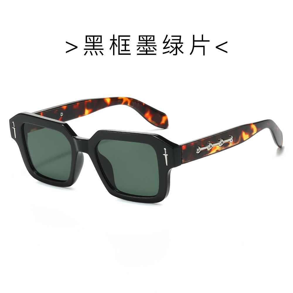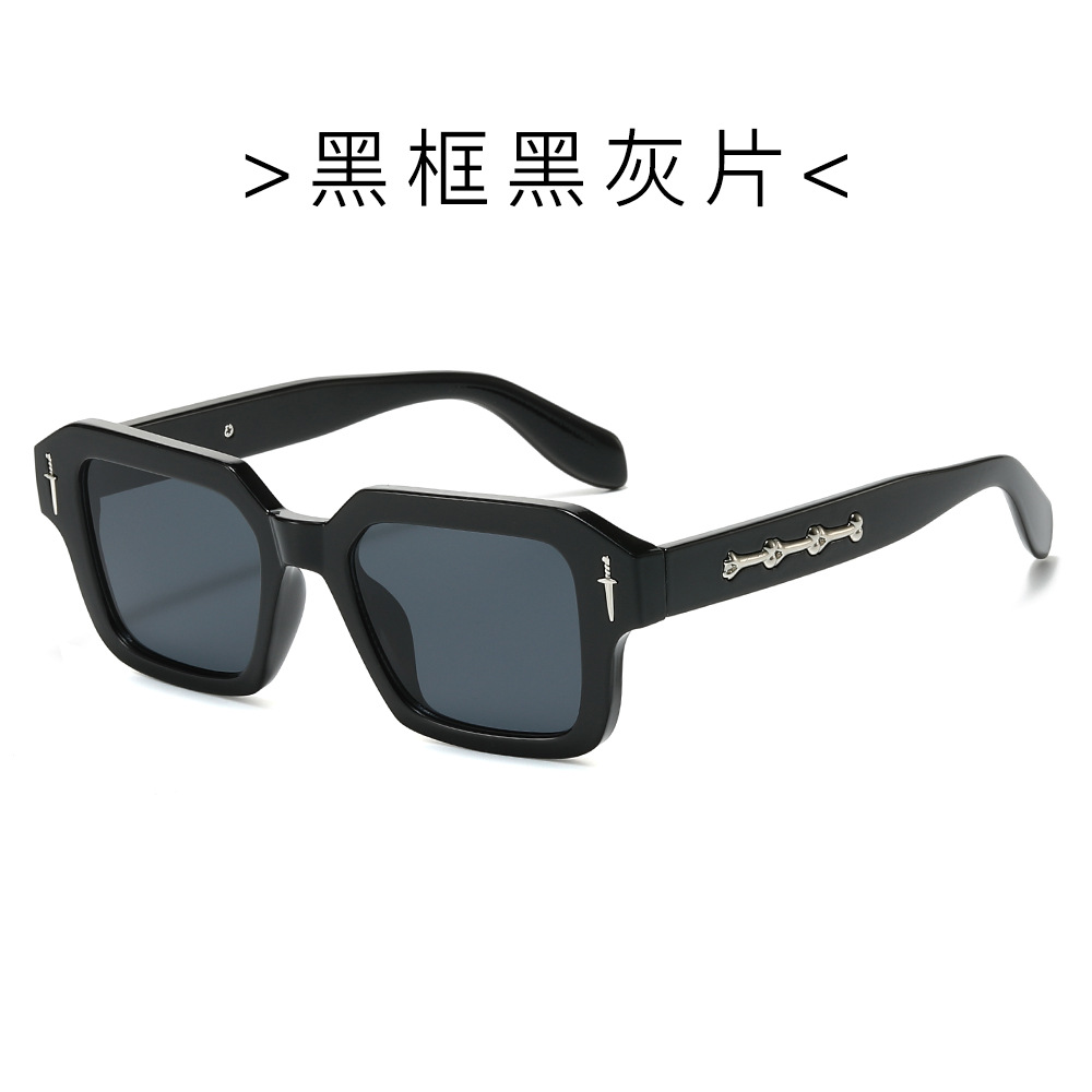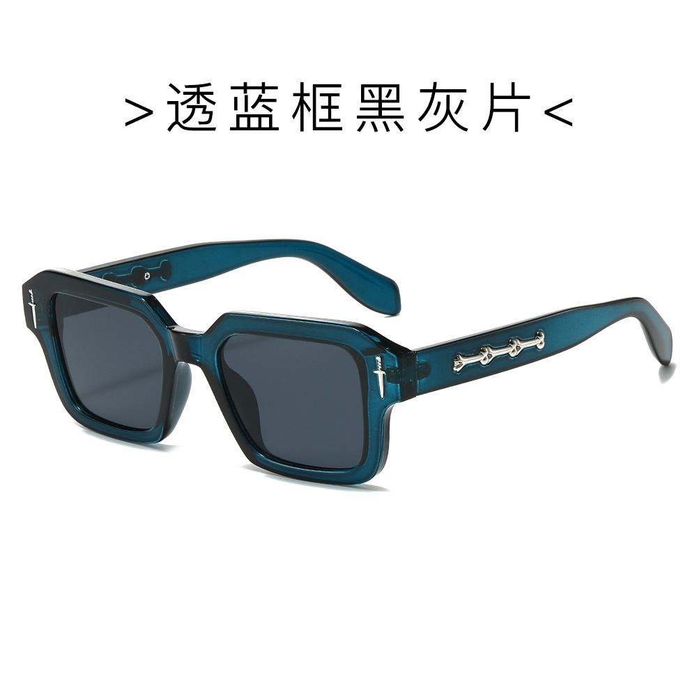 2024跨境新款方框时尚太阳镜欧美方形简约墨镜金属标精致太阳镜