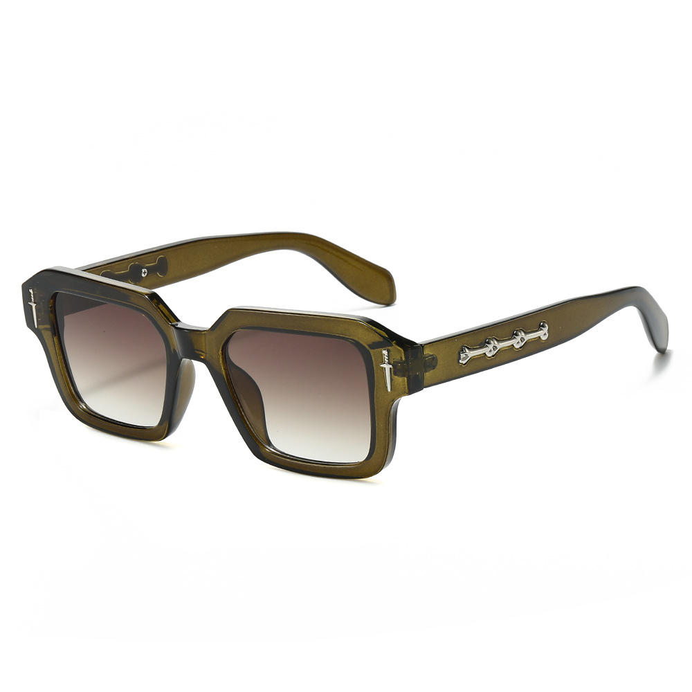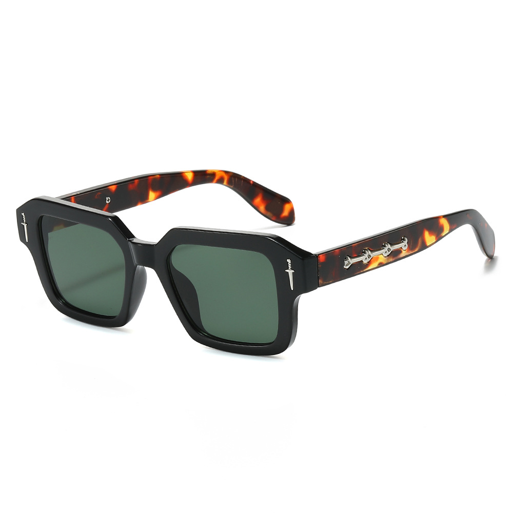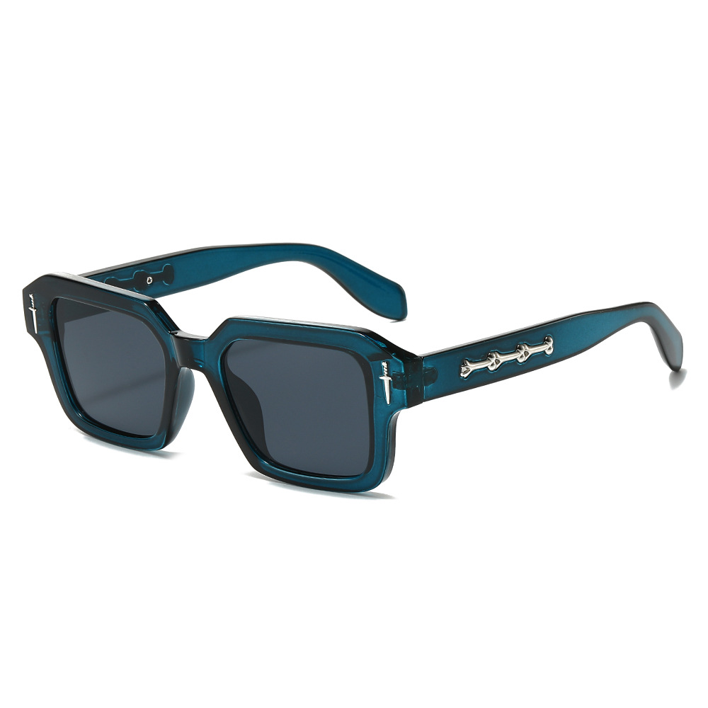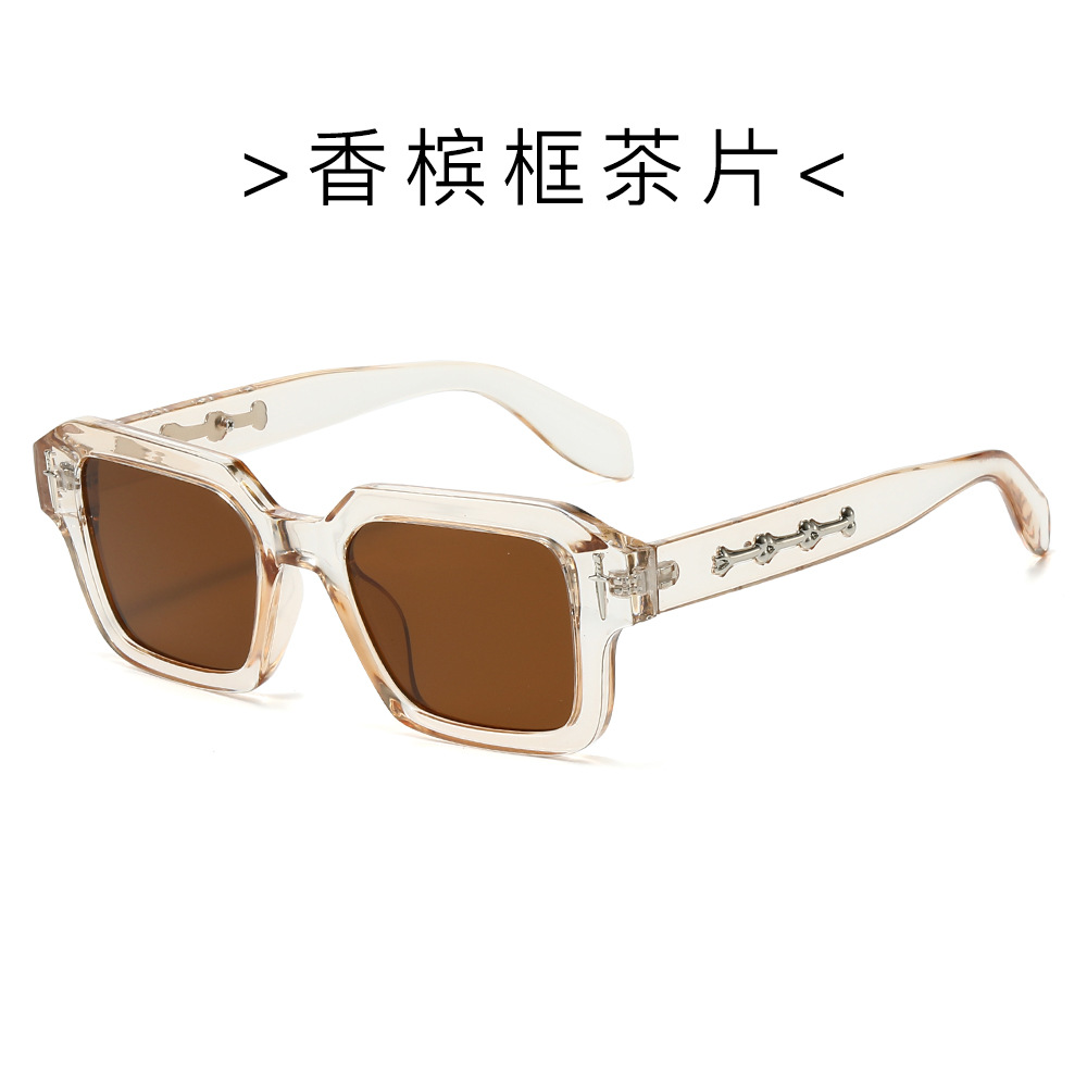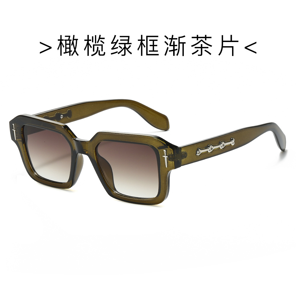 2024跨境新款方框时尚太阳镜欧美方形简约墨镜金属标精致太阳镜