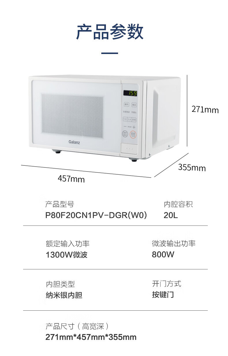 格兰仕Galanz微波炉变频800W蒸煮多功能一体20升DGR烤箱