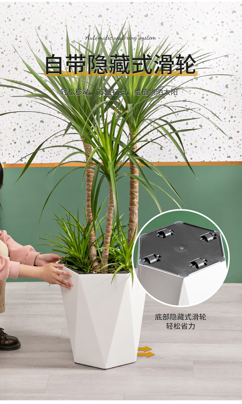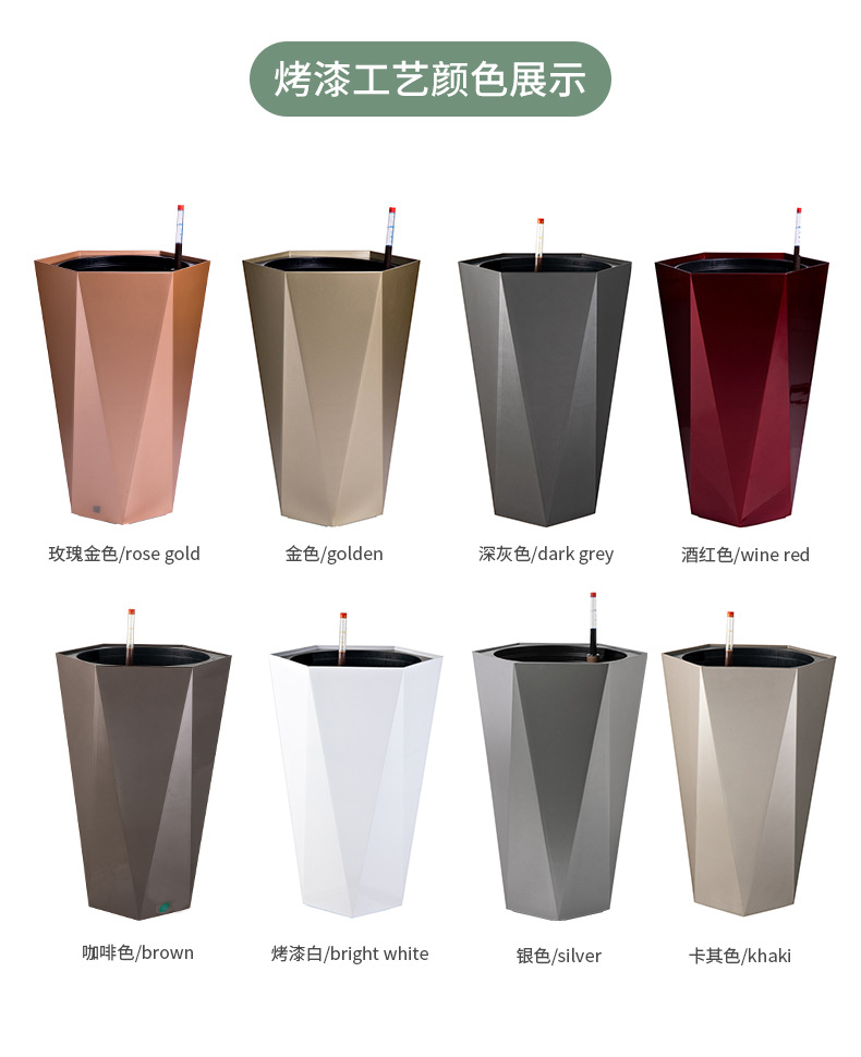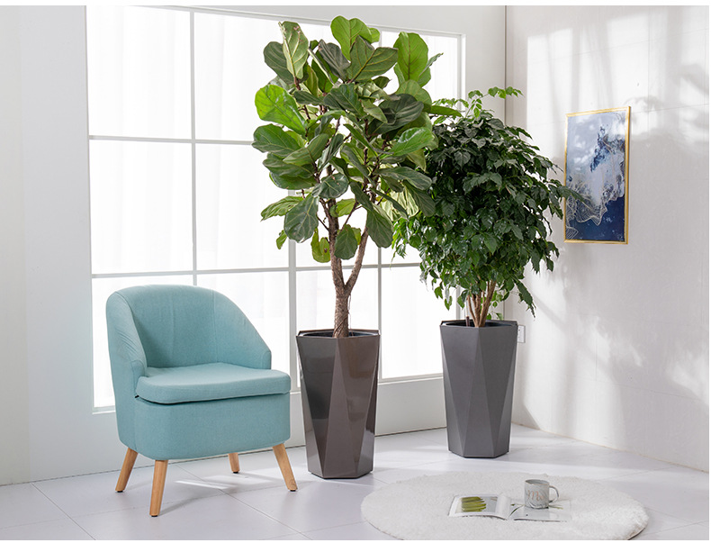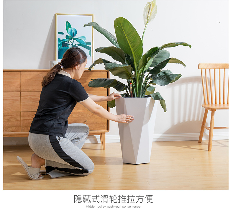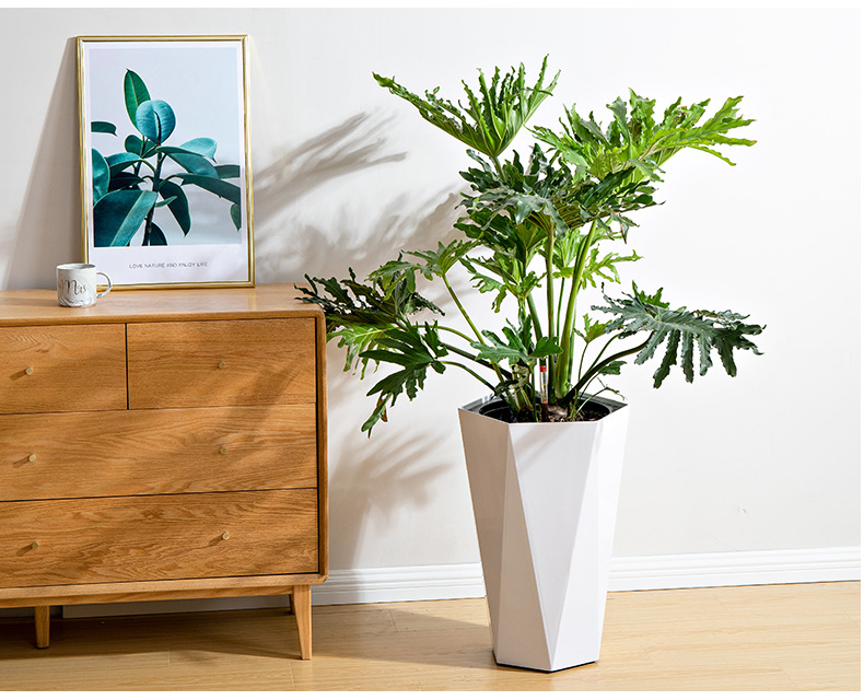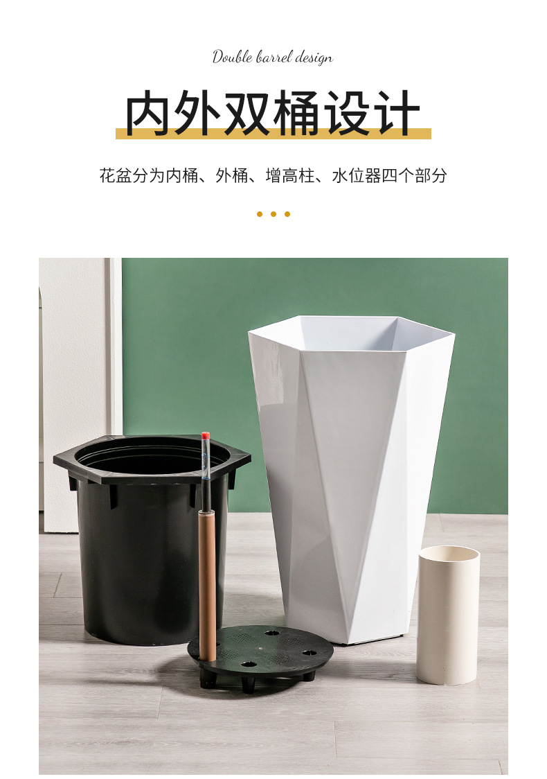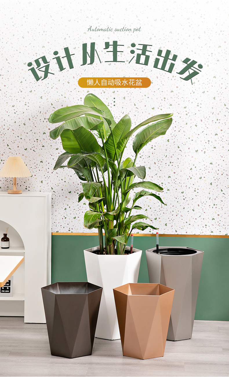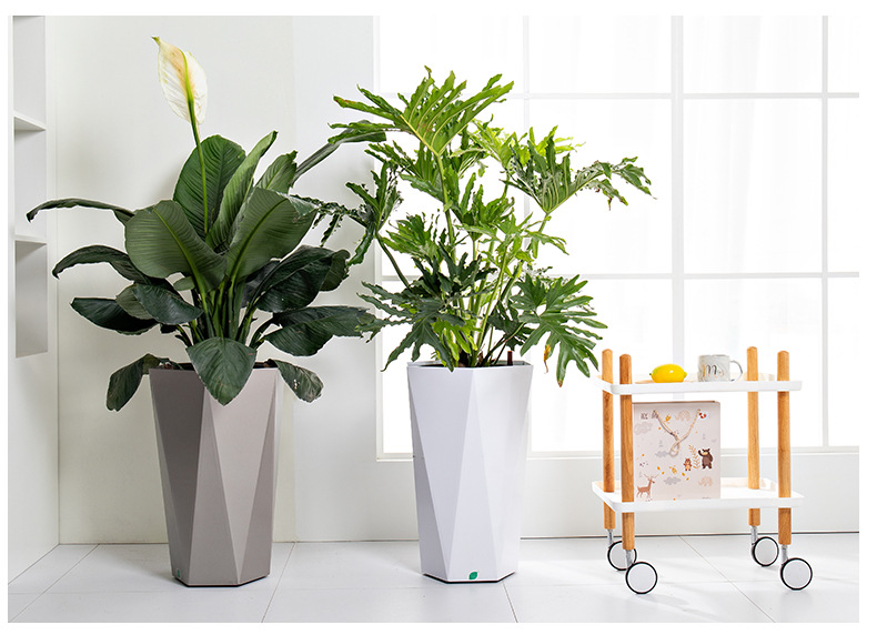 室内落地客厅直塑菱形自吸水花盆欧式设计简约时尚绿植种植盆