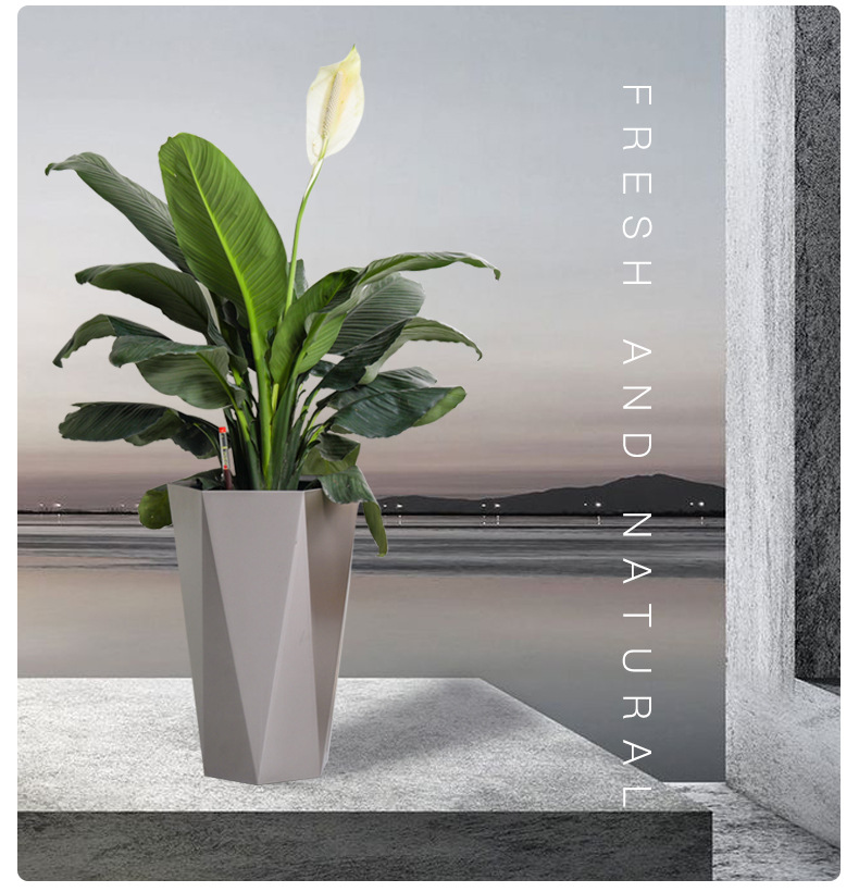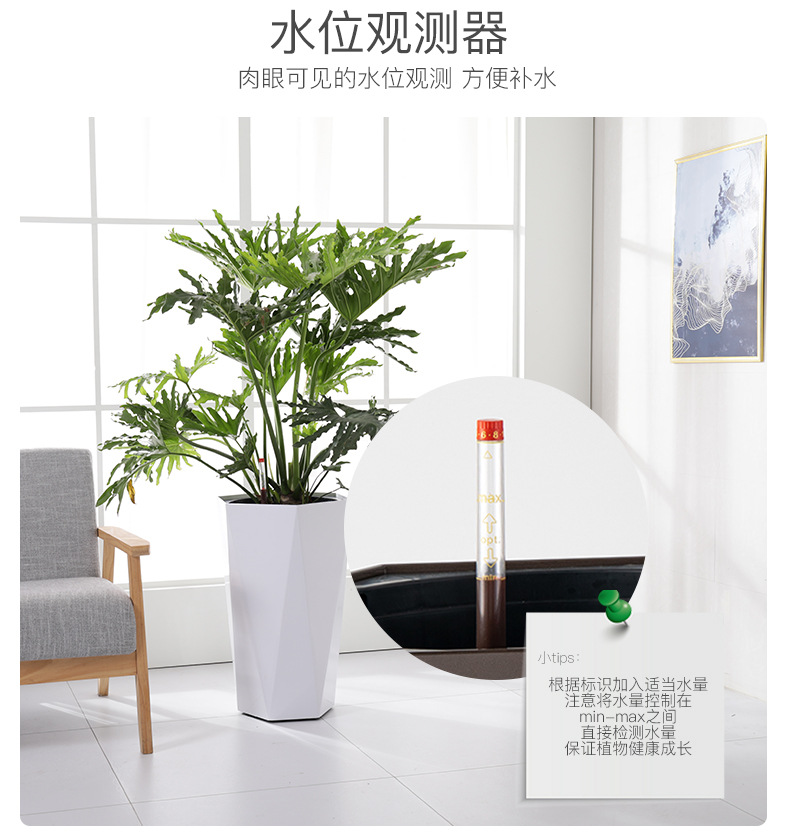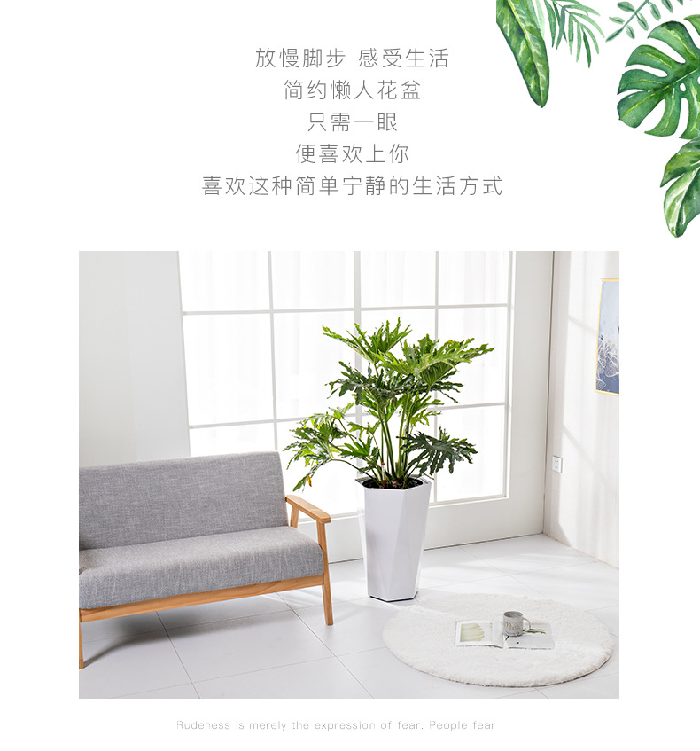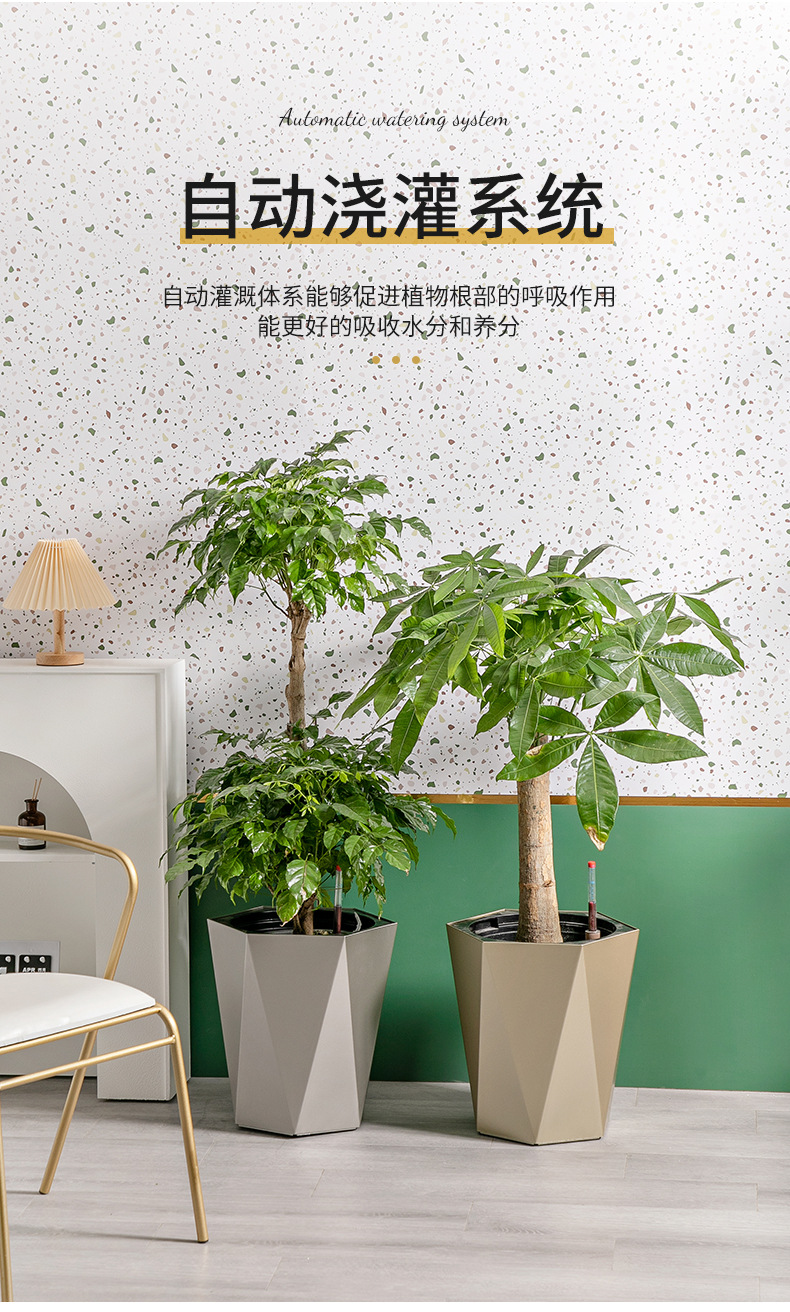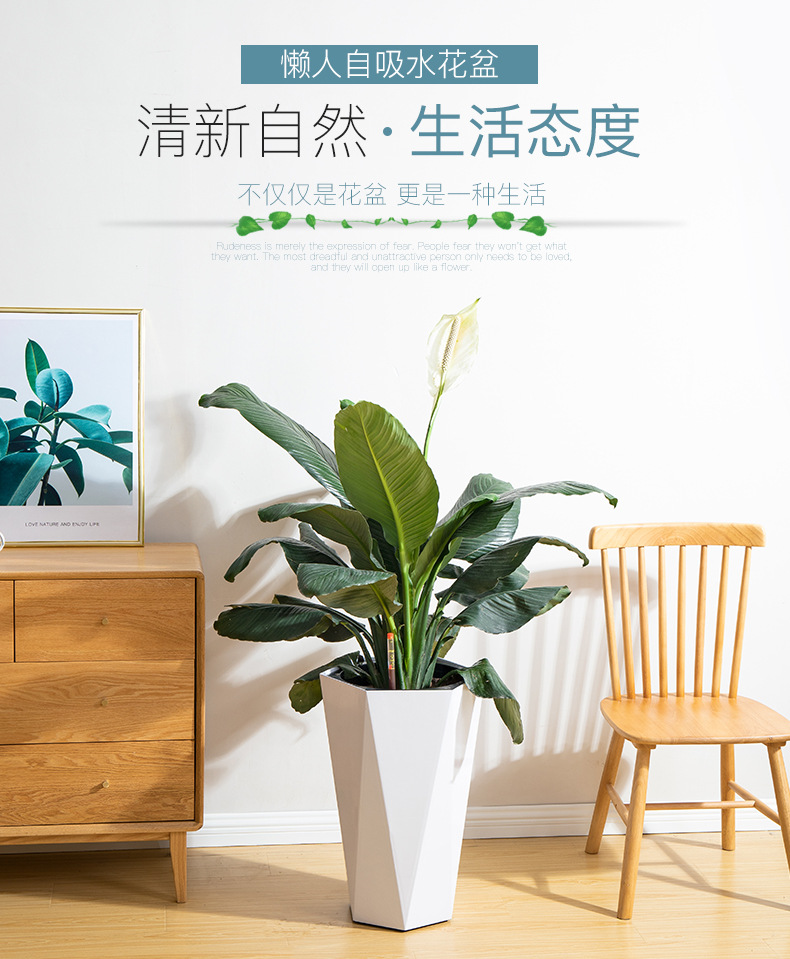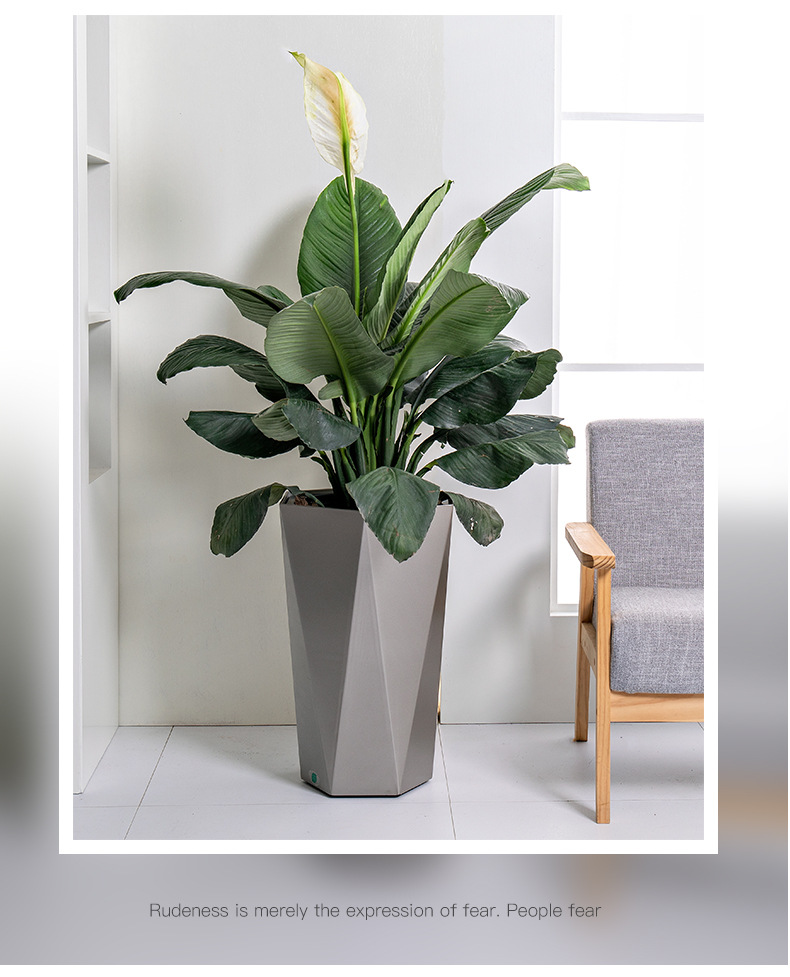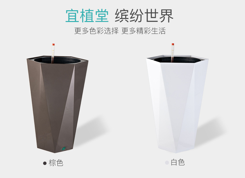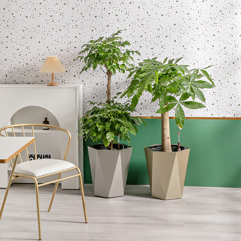 室内落地客厅直塑菱形自吸水花盆欧式设计简约时尚绿植种植盆