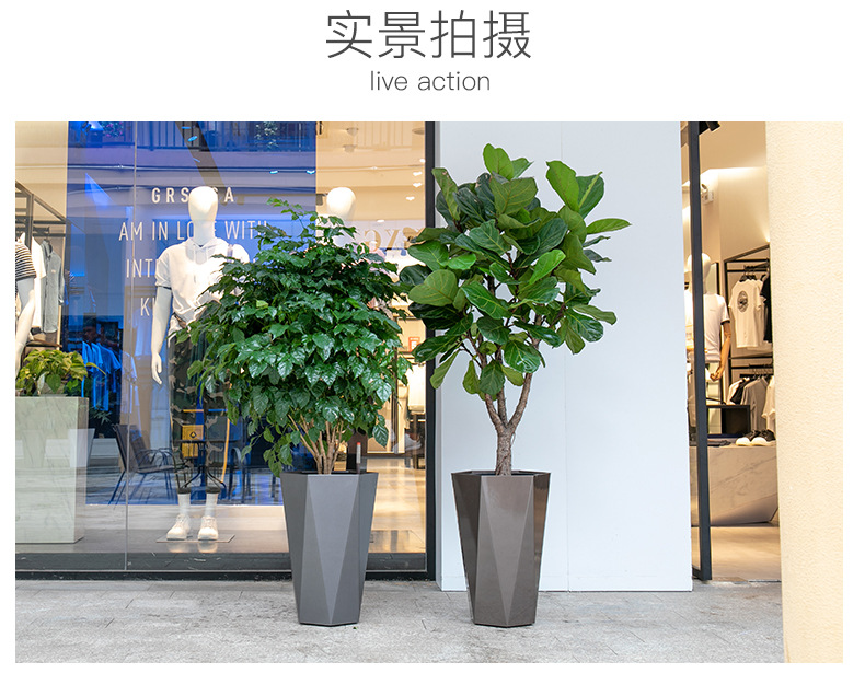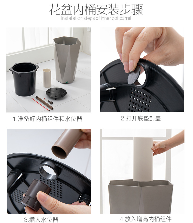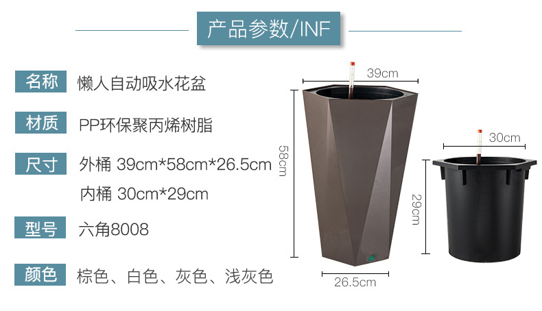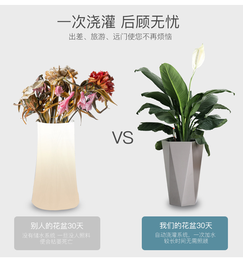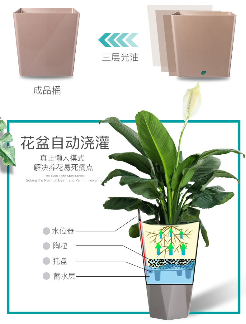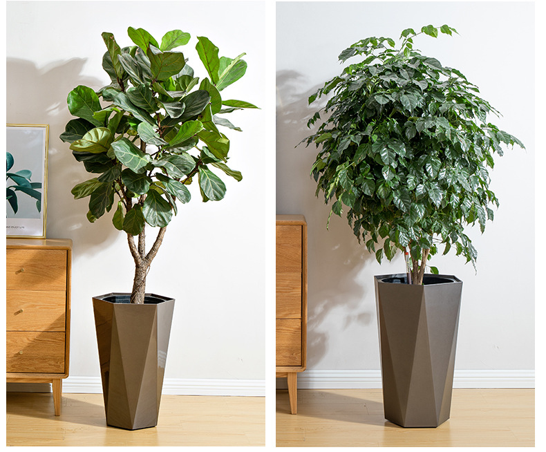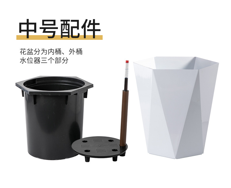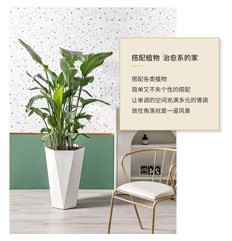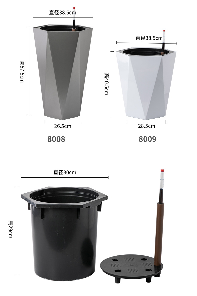 室内落地客厅直塑菱形自吸水花盆欧式设计简约时尚绿植种植盆