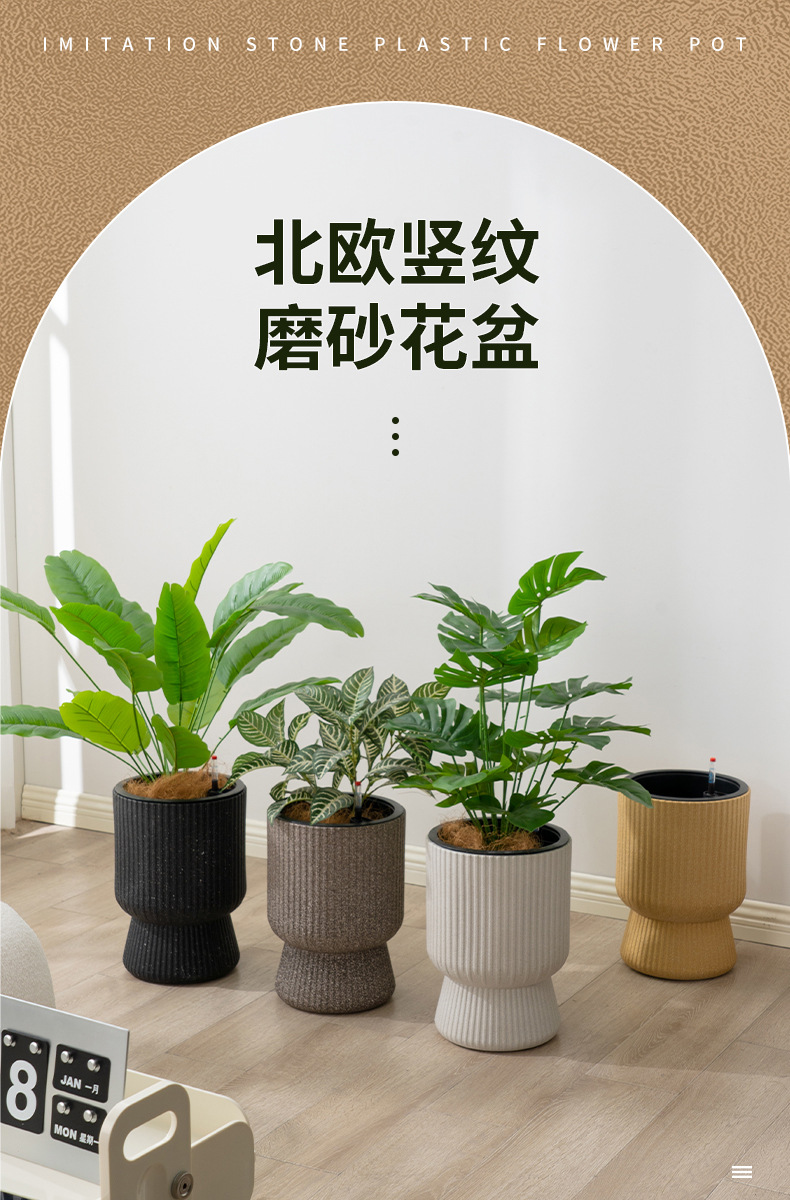 厂家批发塑料花盆客厅绿植阳台客厅摆放花盆北欧落地喷砂酒杯花盆