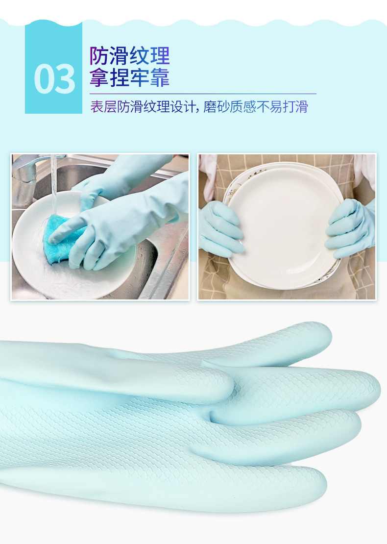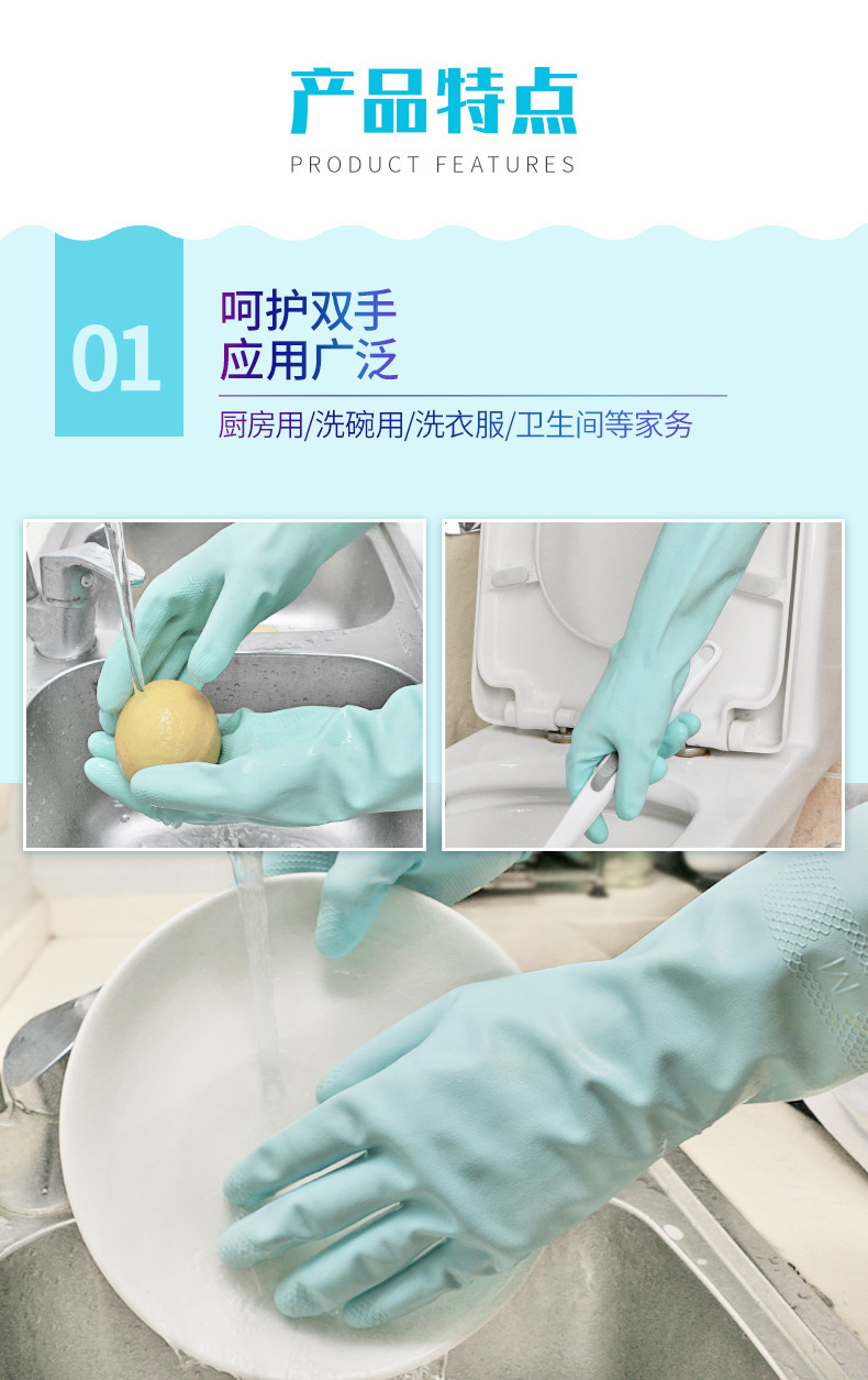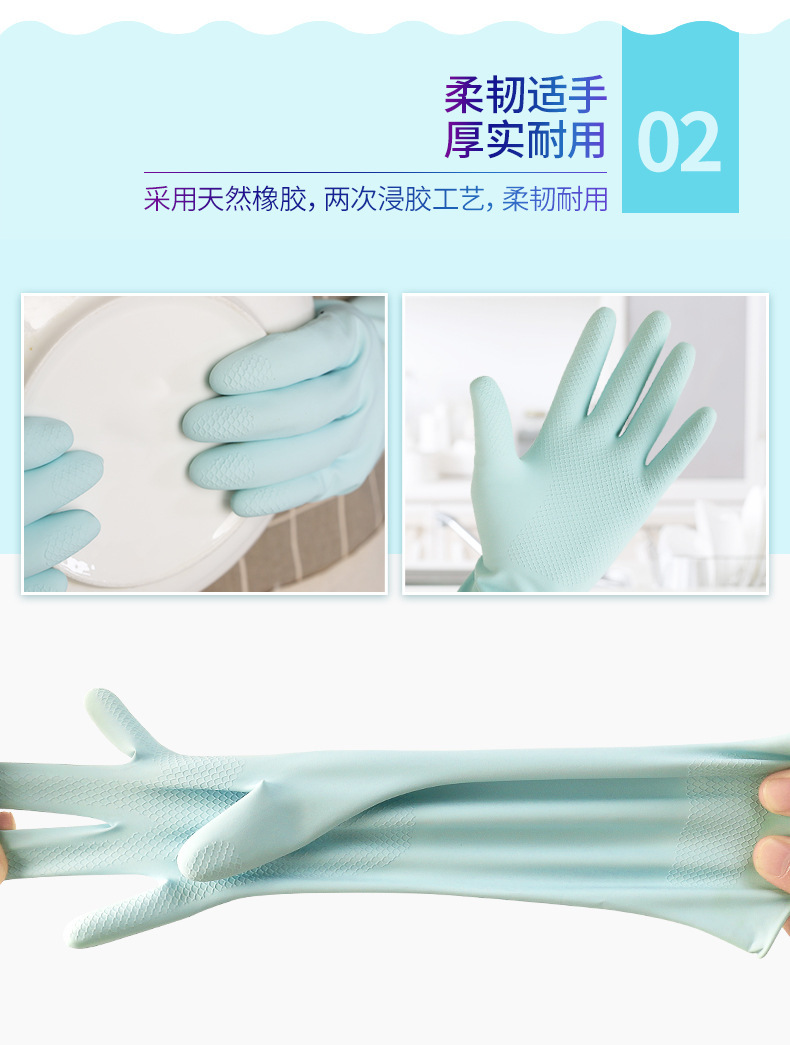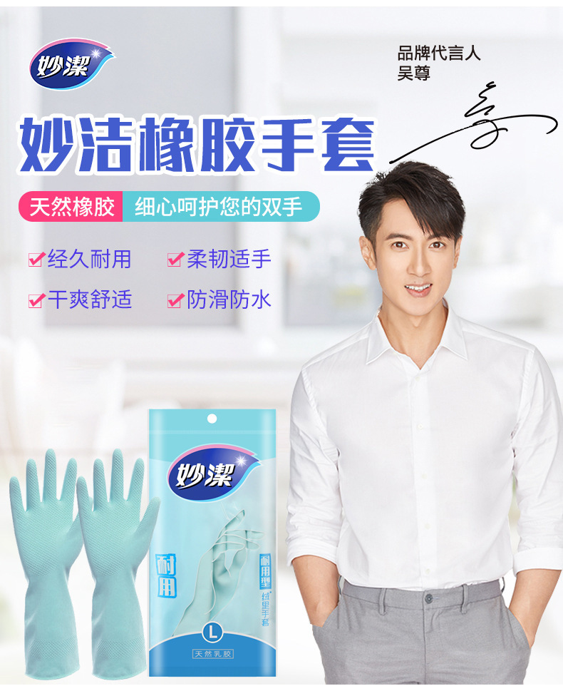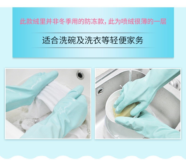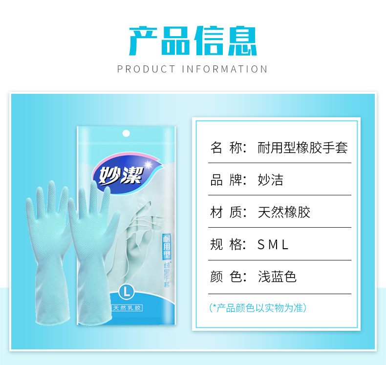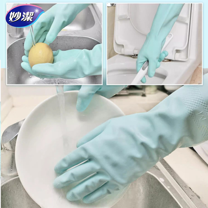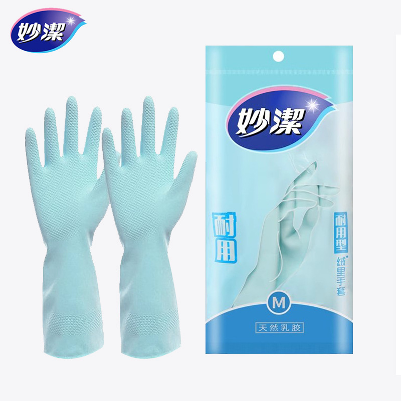 妙洁耐用型绒里手套家用洗衣清洁家务手套洗碗刷锅防水乳胶手套