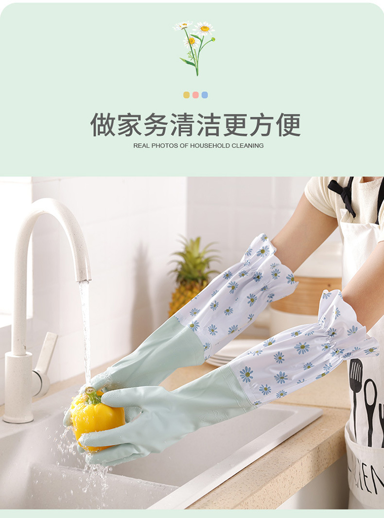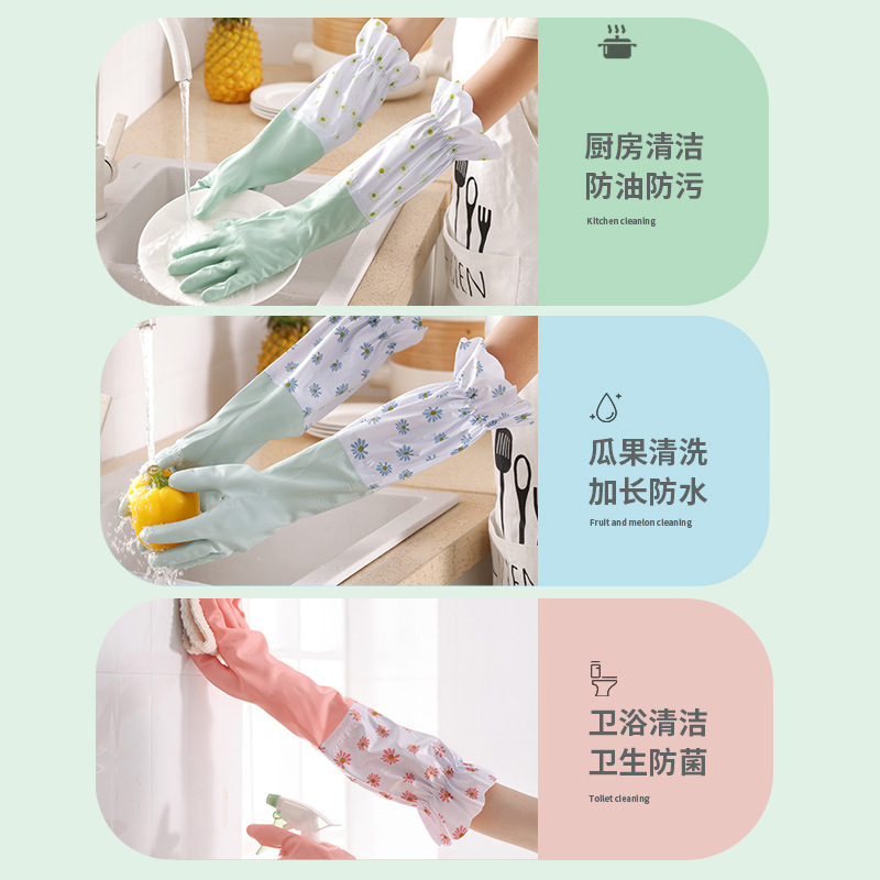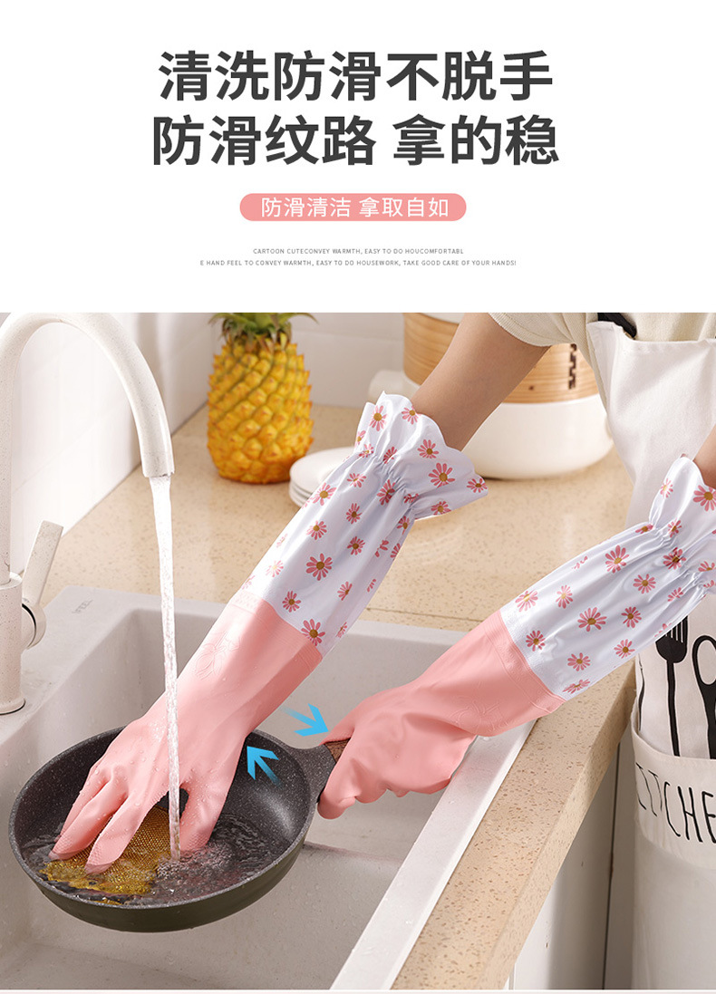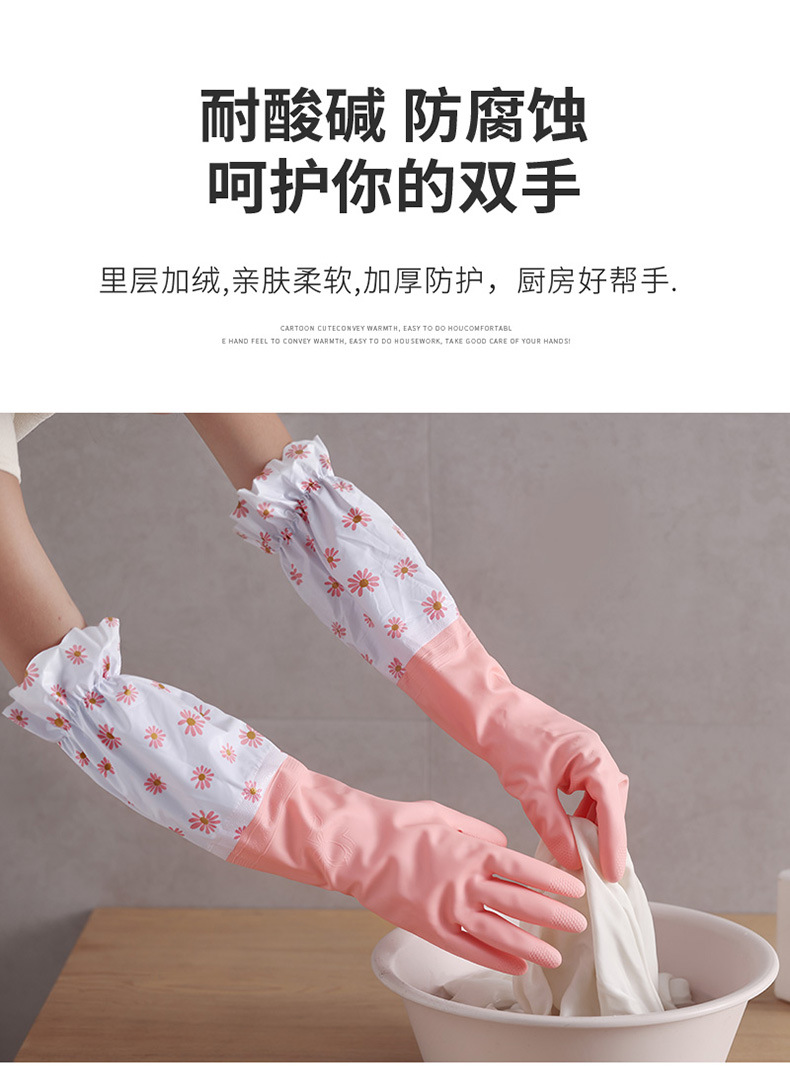 洗碗手套女厨房家用加厚橡胶洗衣服防水家务耐用冬季加绒保暖神器