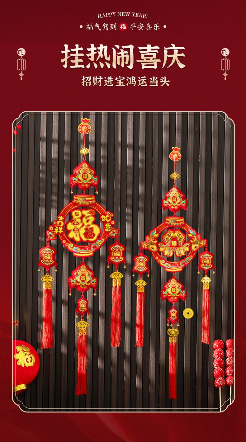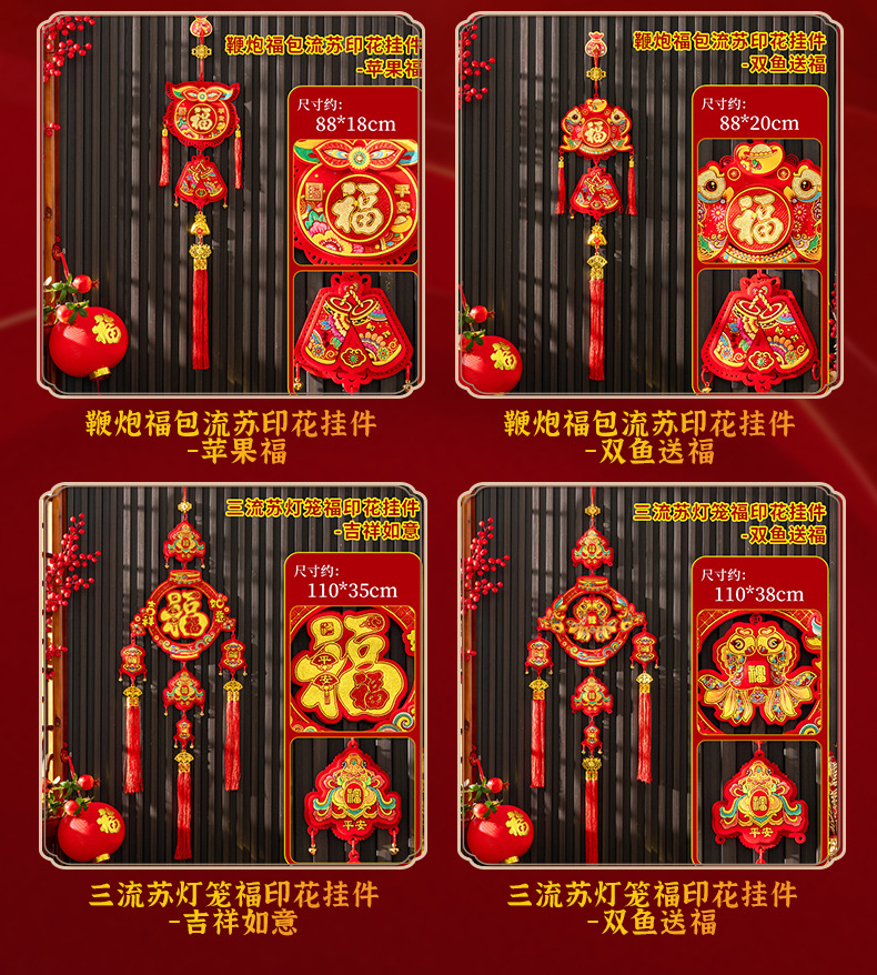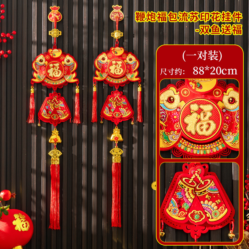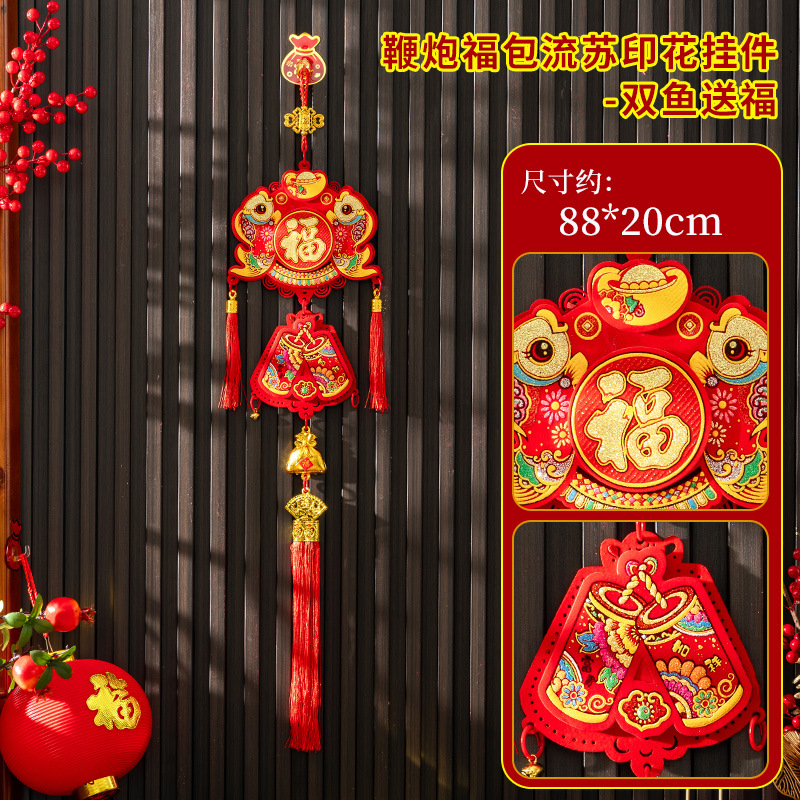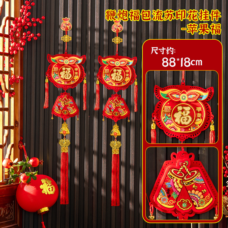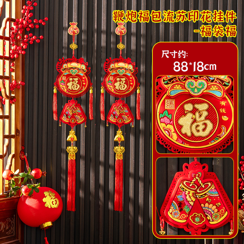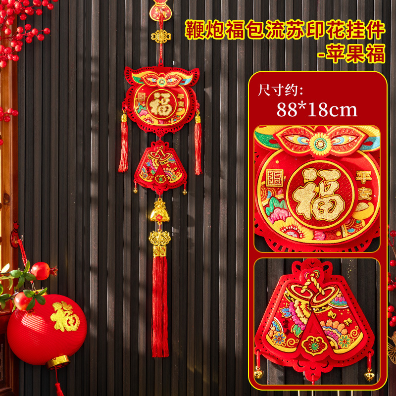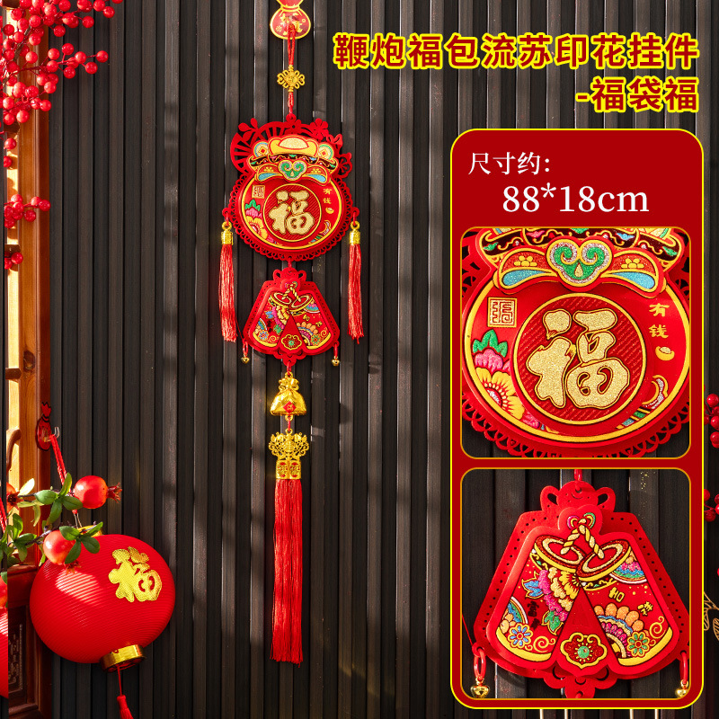 2025新款挂饰烫金印花福字挂件福袋鞭炮挂串春节客厅背景墙装饰