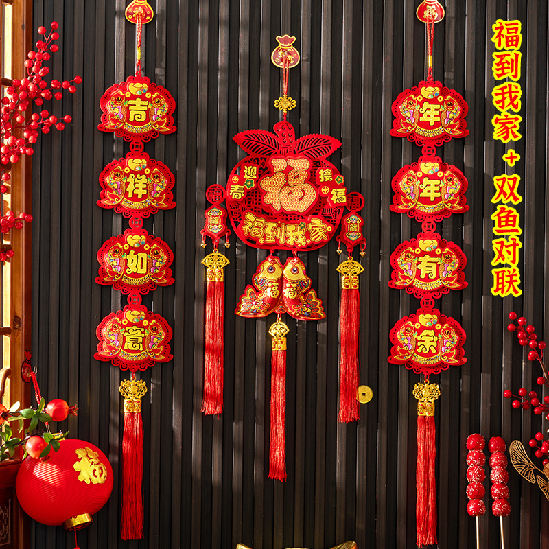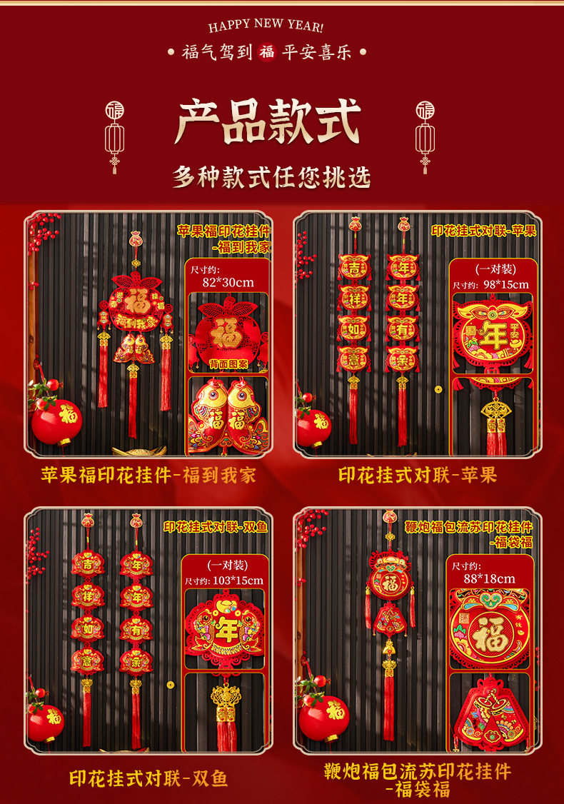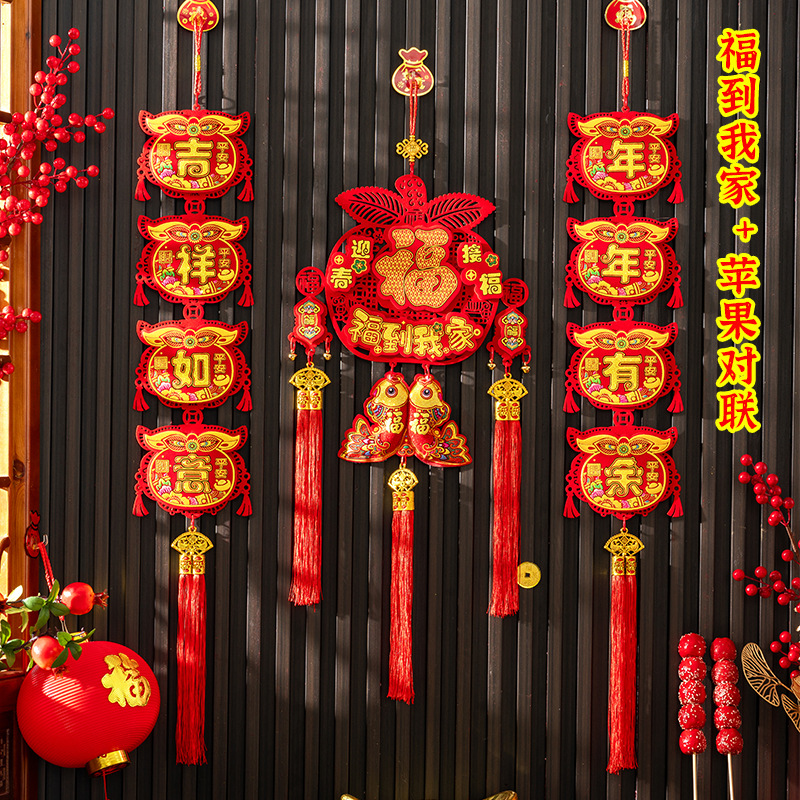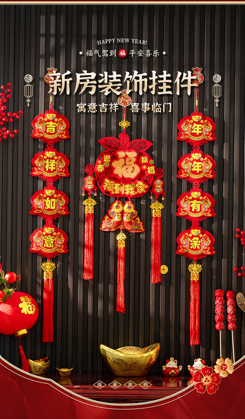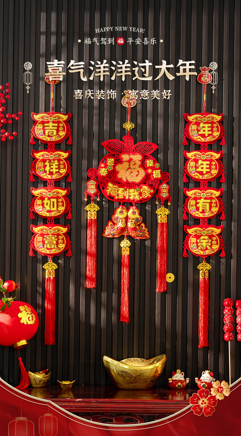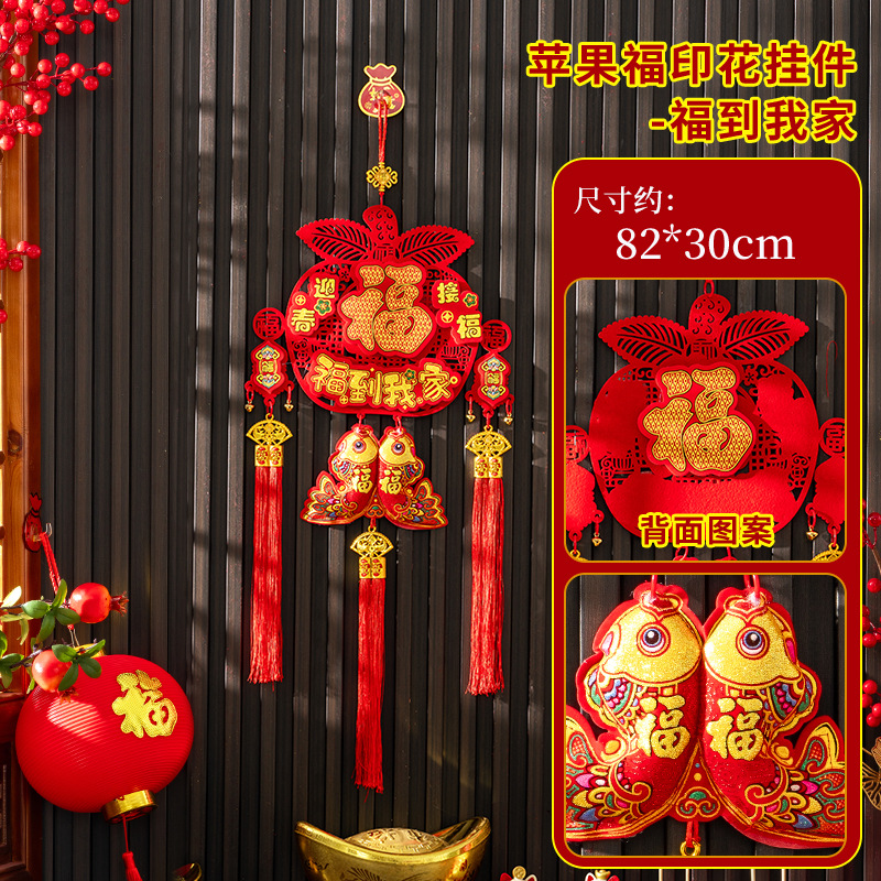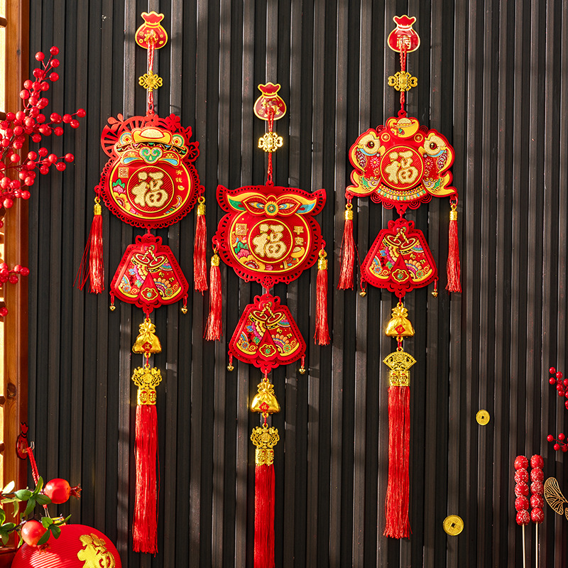 2025新款挂饰烫金印花福字挂件福袋鞭炮挂串春节客厅背景墙装饰