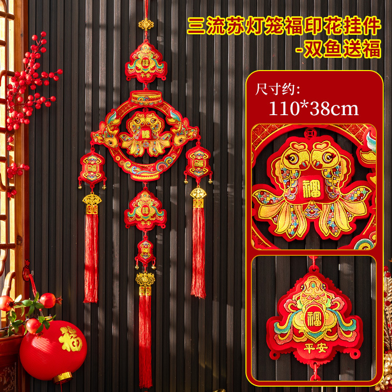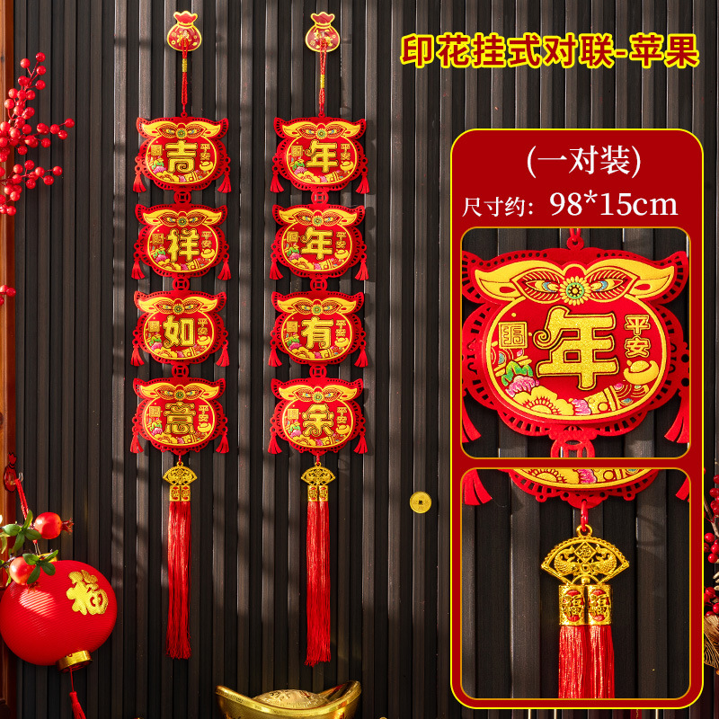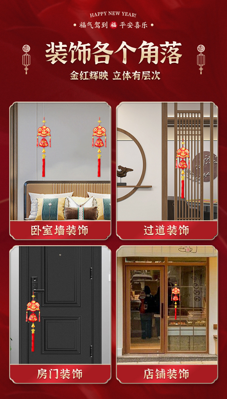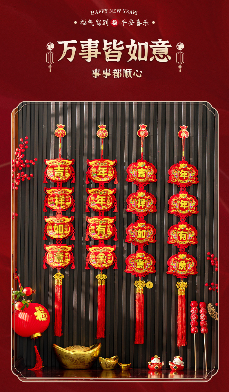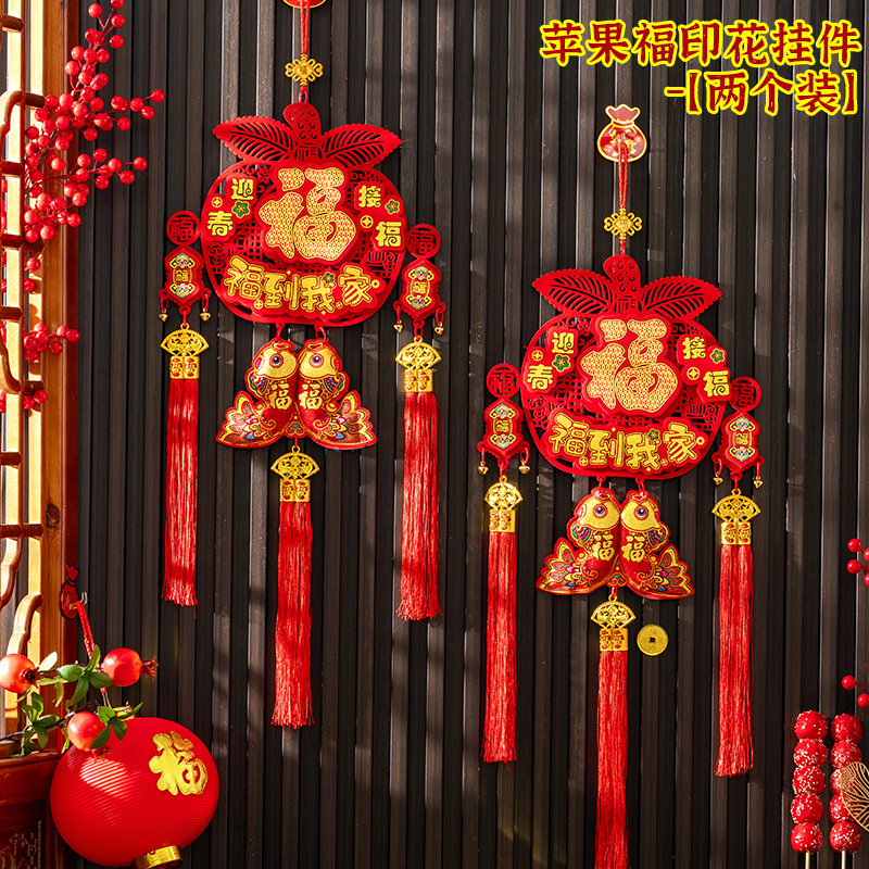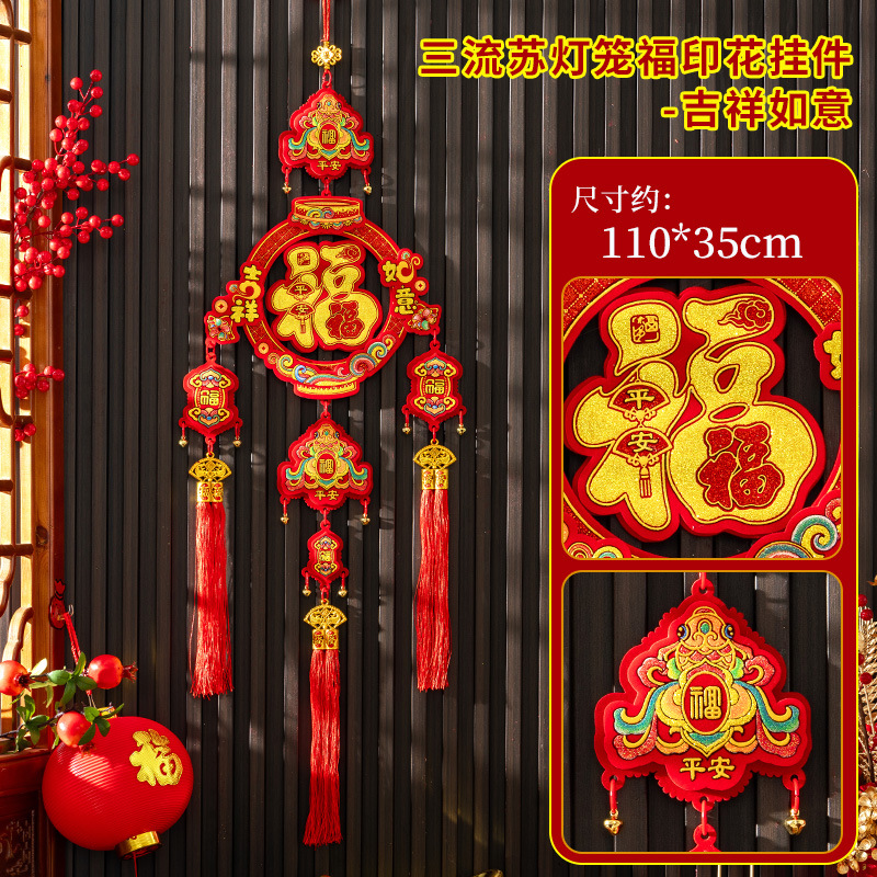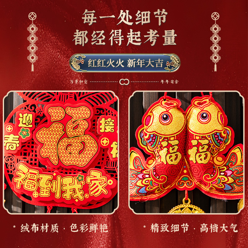 2025新款挂饰烫金印花福字挂件福袋鞭炮挂串春节客厅背景墙装饰