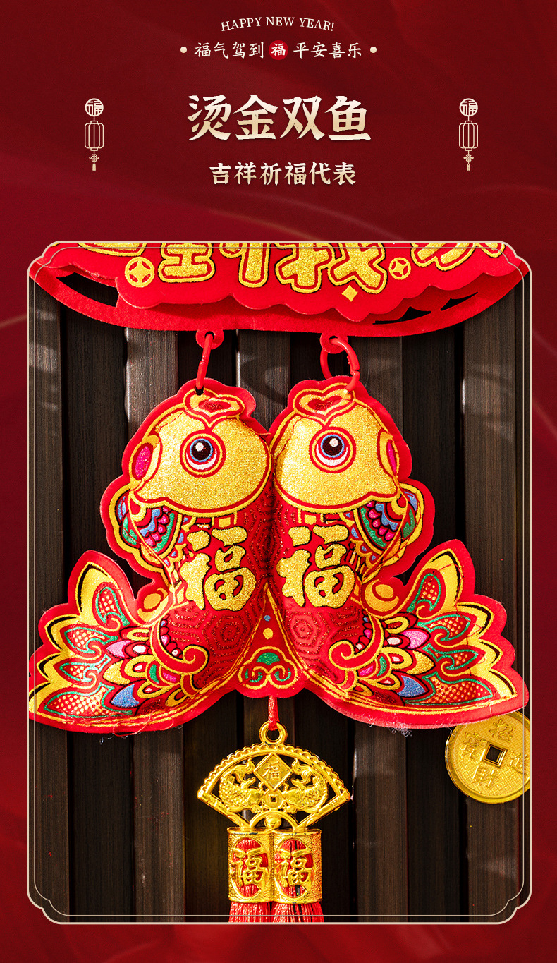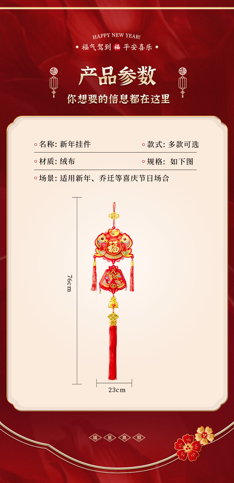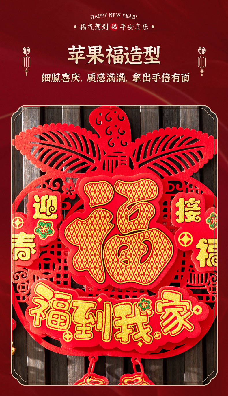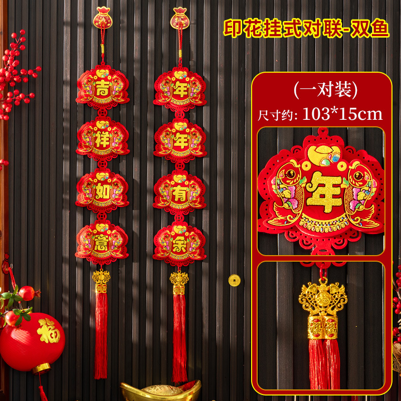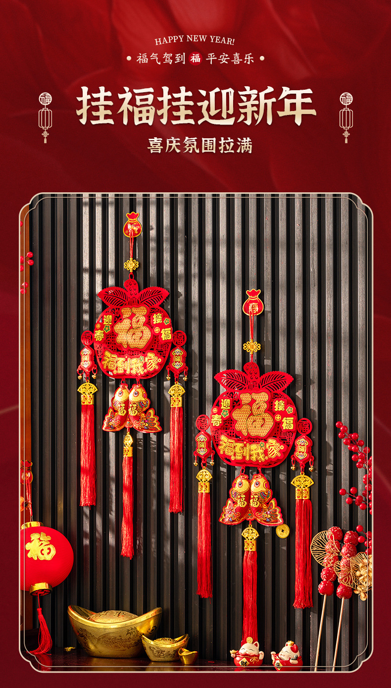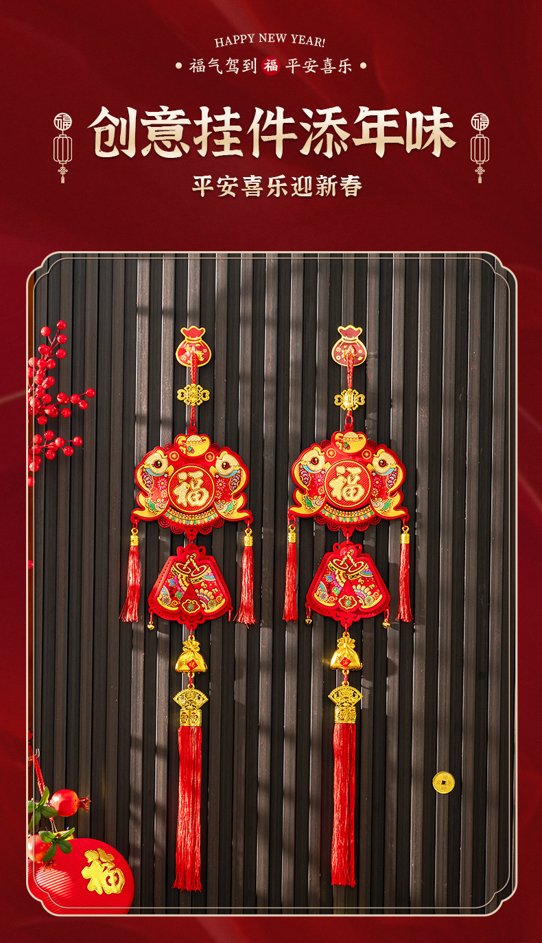 2025新款挂饰烫金印花福字挂件福袋鞭炮挂串春节客厅背景墙装饰