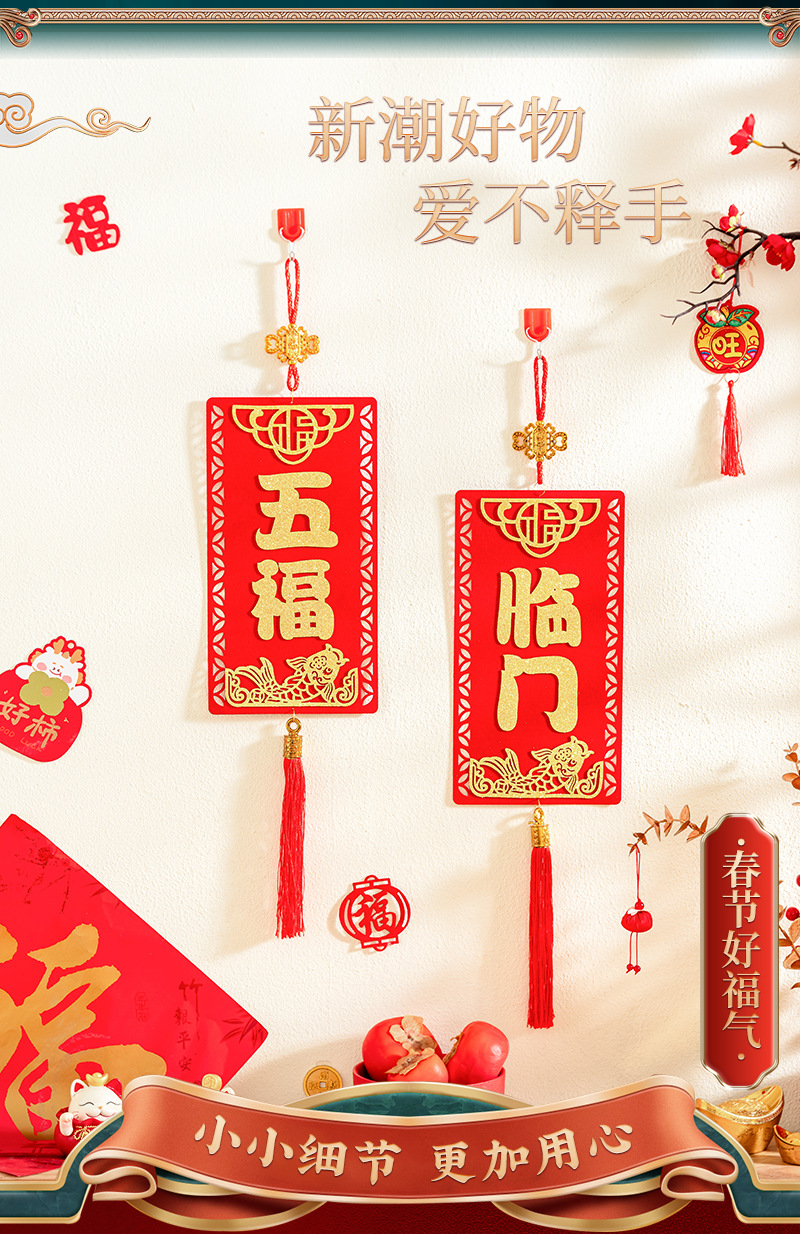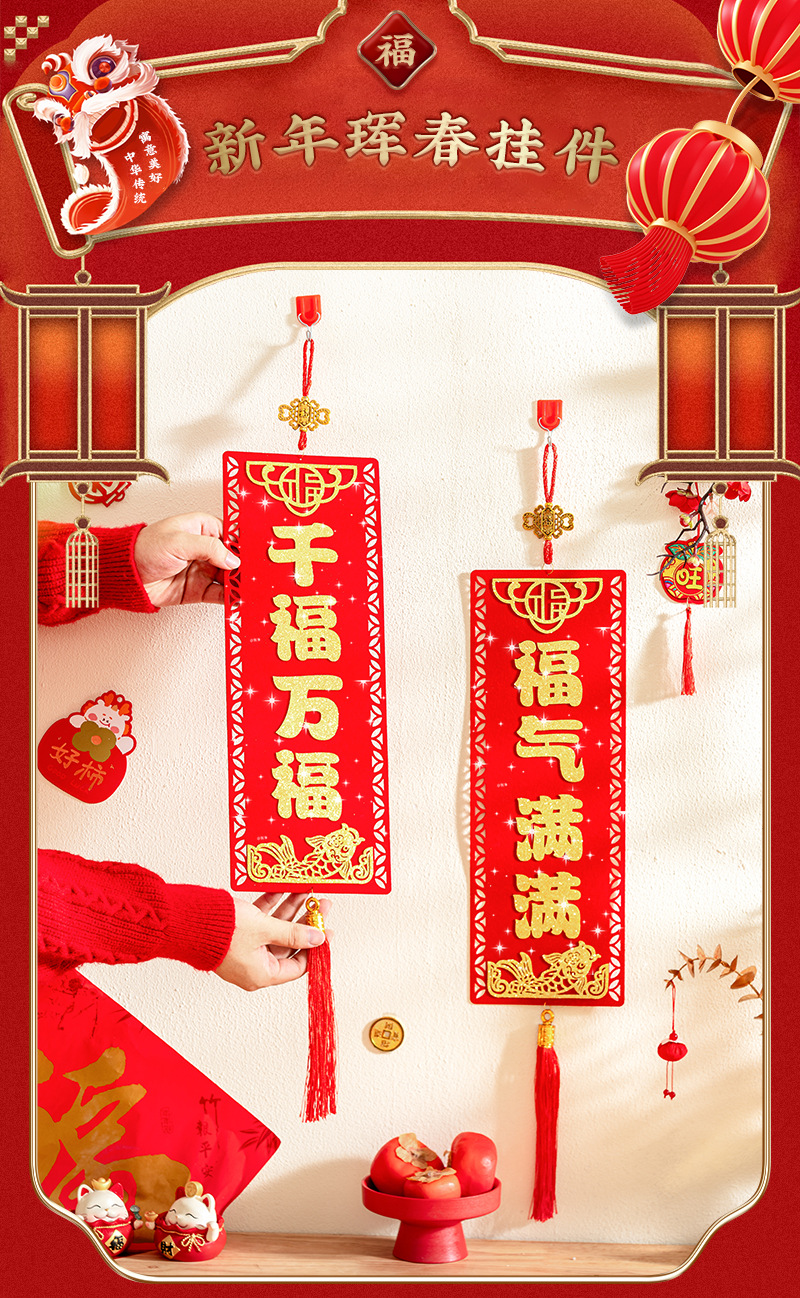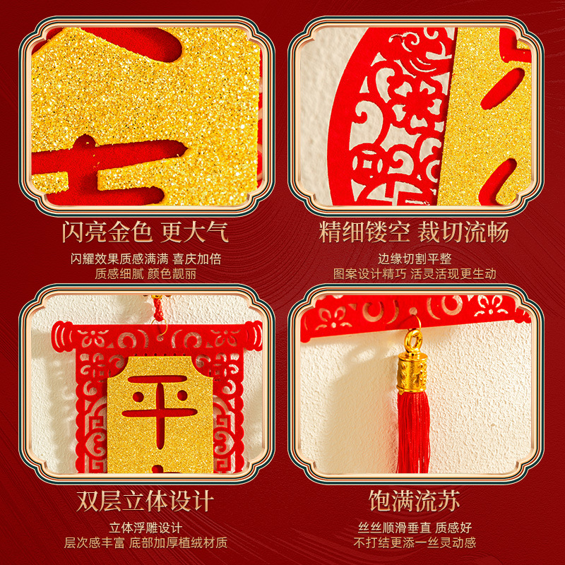 2025新春装饰小对联绒布福字挂件客厅房门过年场景布置品珲春合集