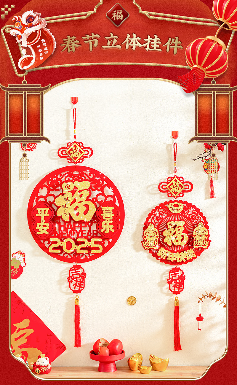 2025新款立体福挂件植绒福字门挂入户门玄关氛围装饰喜庆年货合集